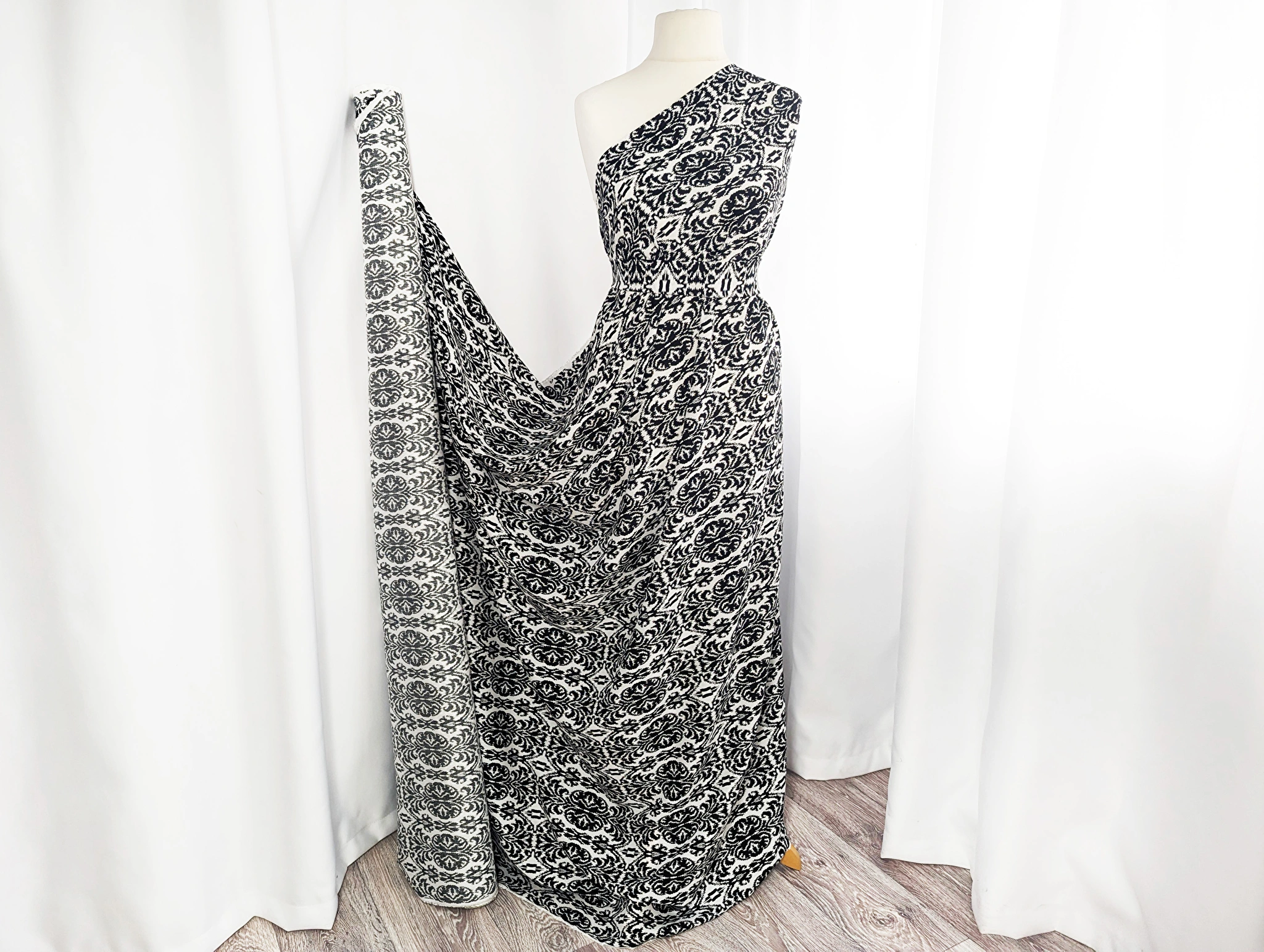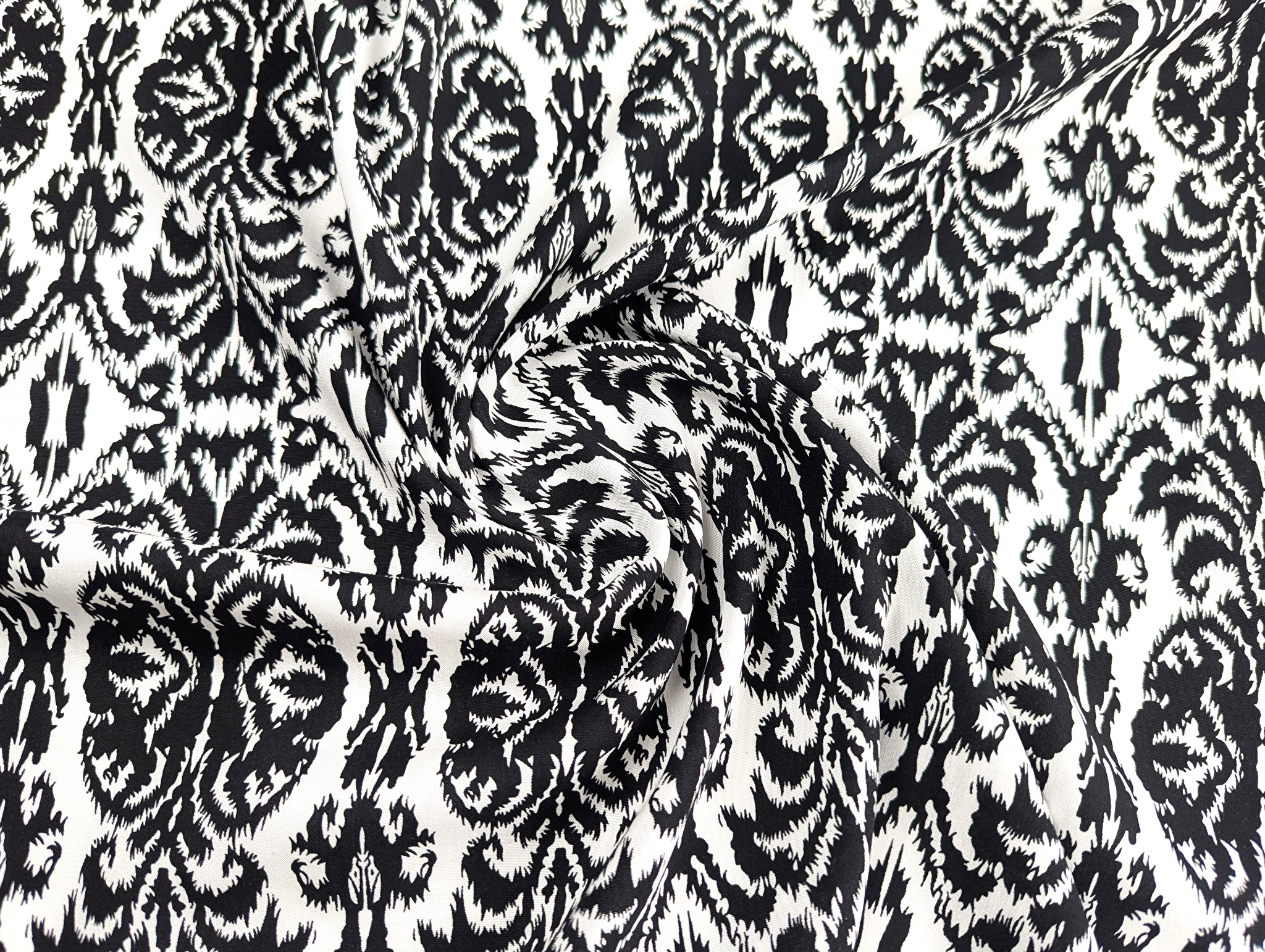 Штапель шовковистий орнамент, чорний на білому