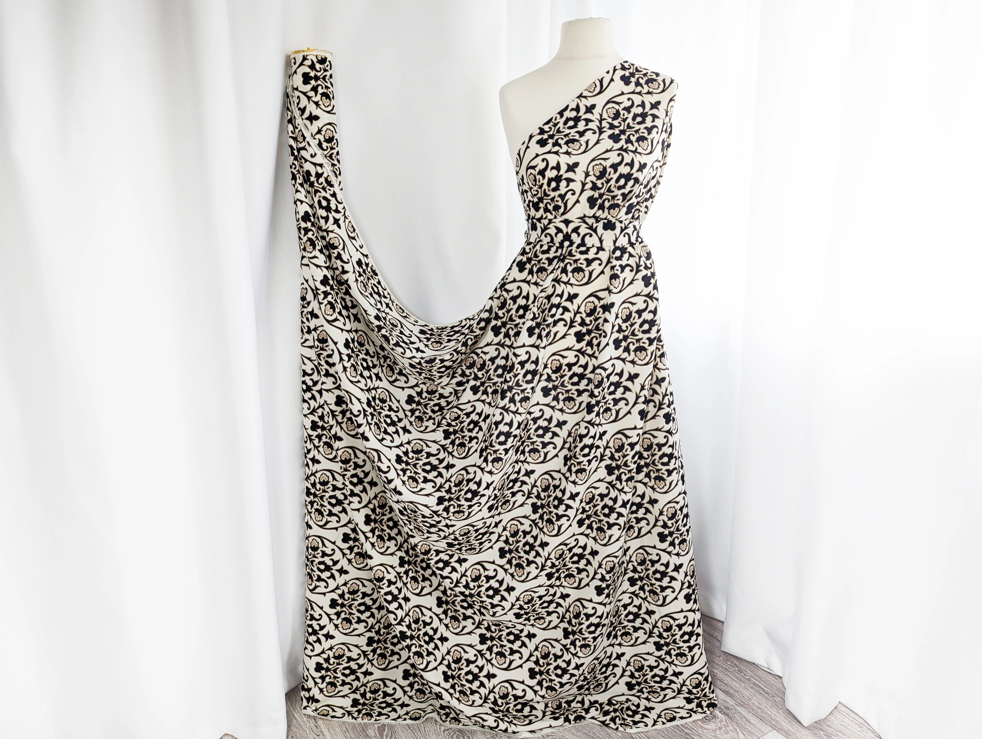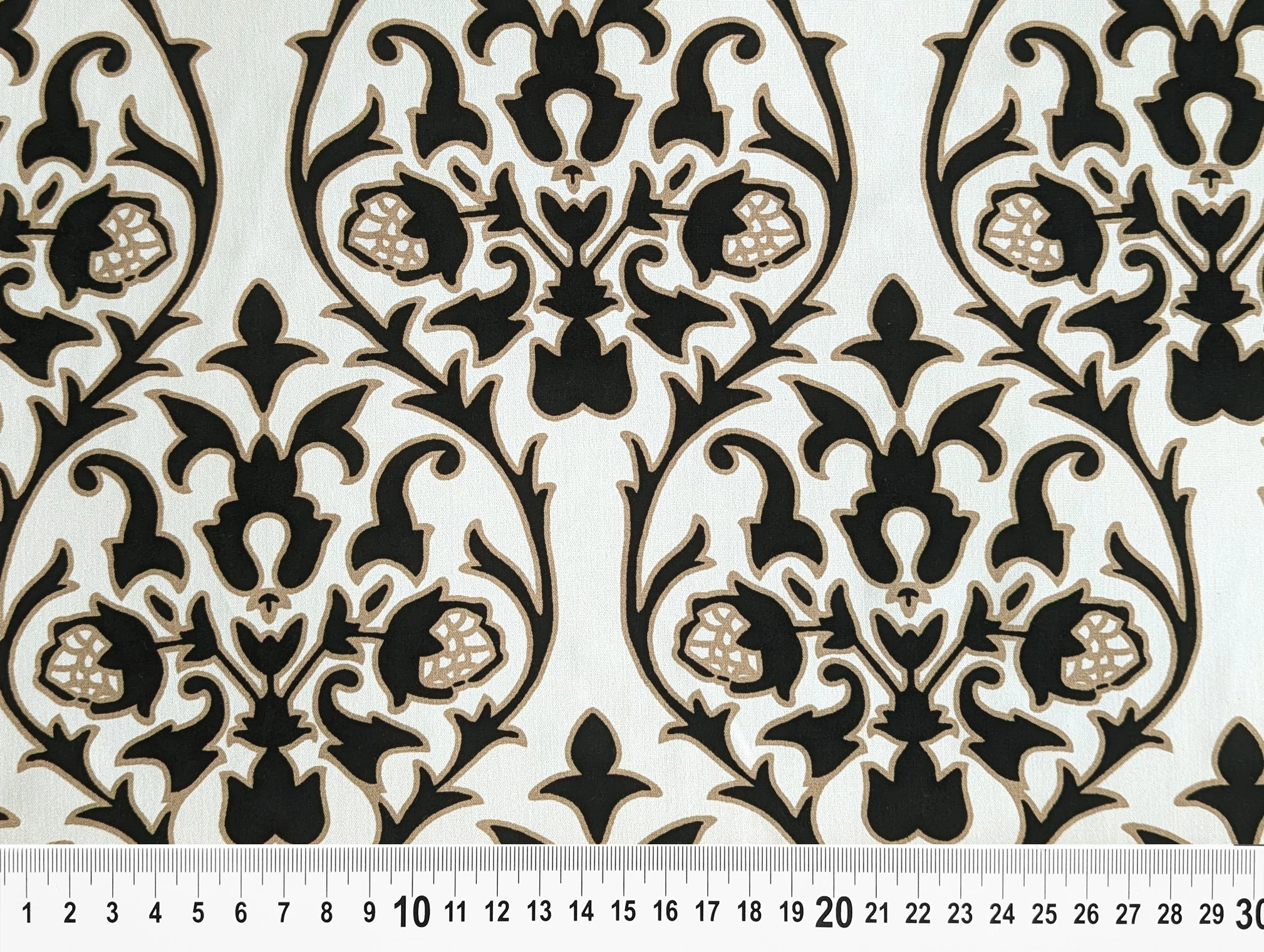 Штапель шовковистий орнамент, кремовий з чорним