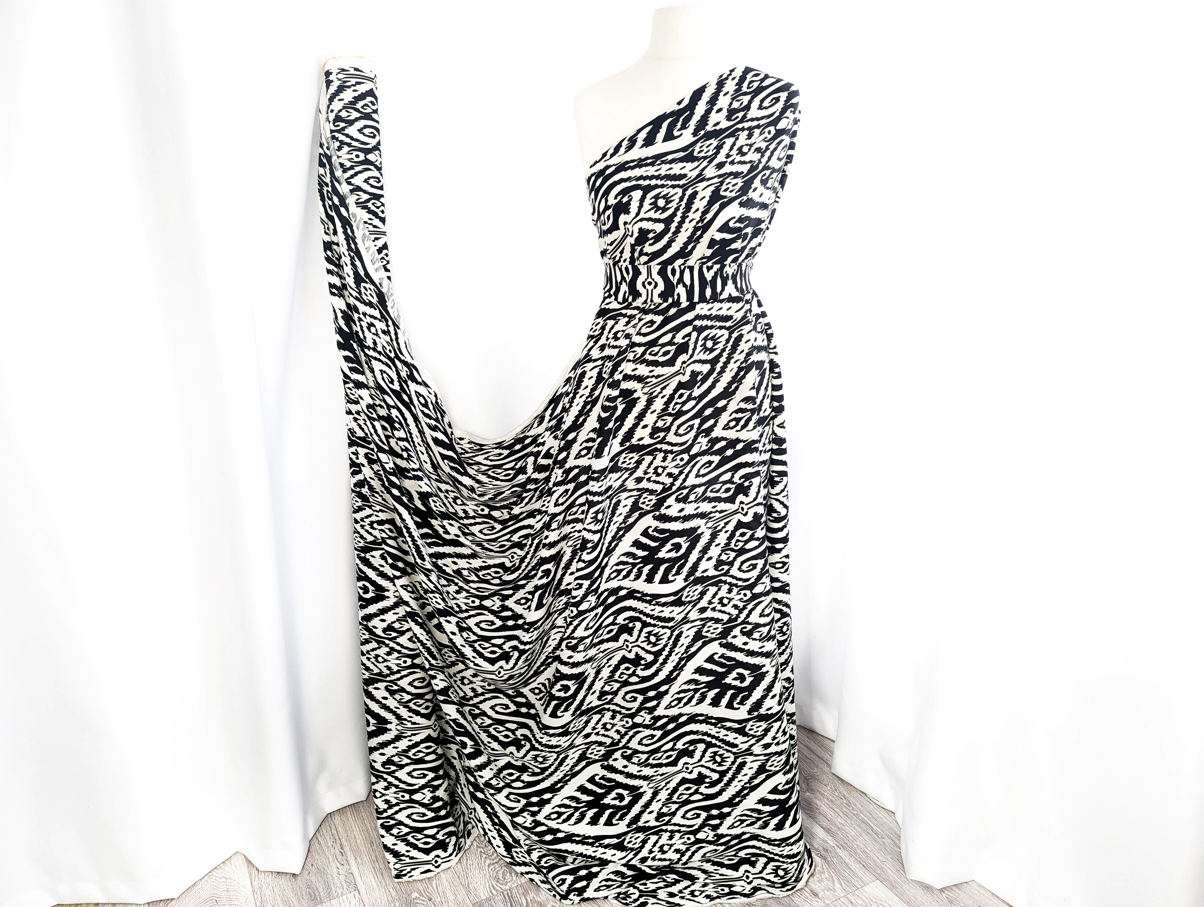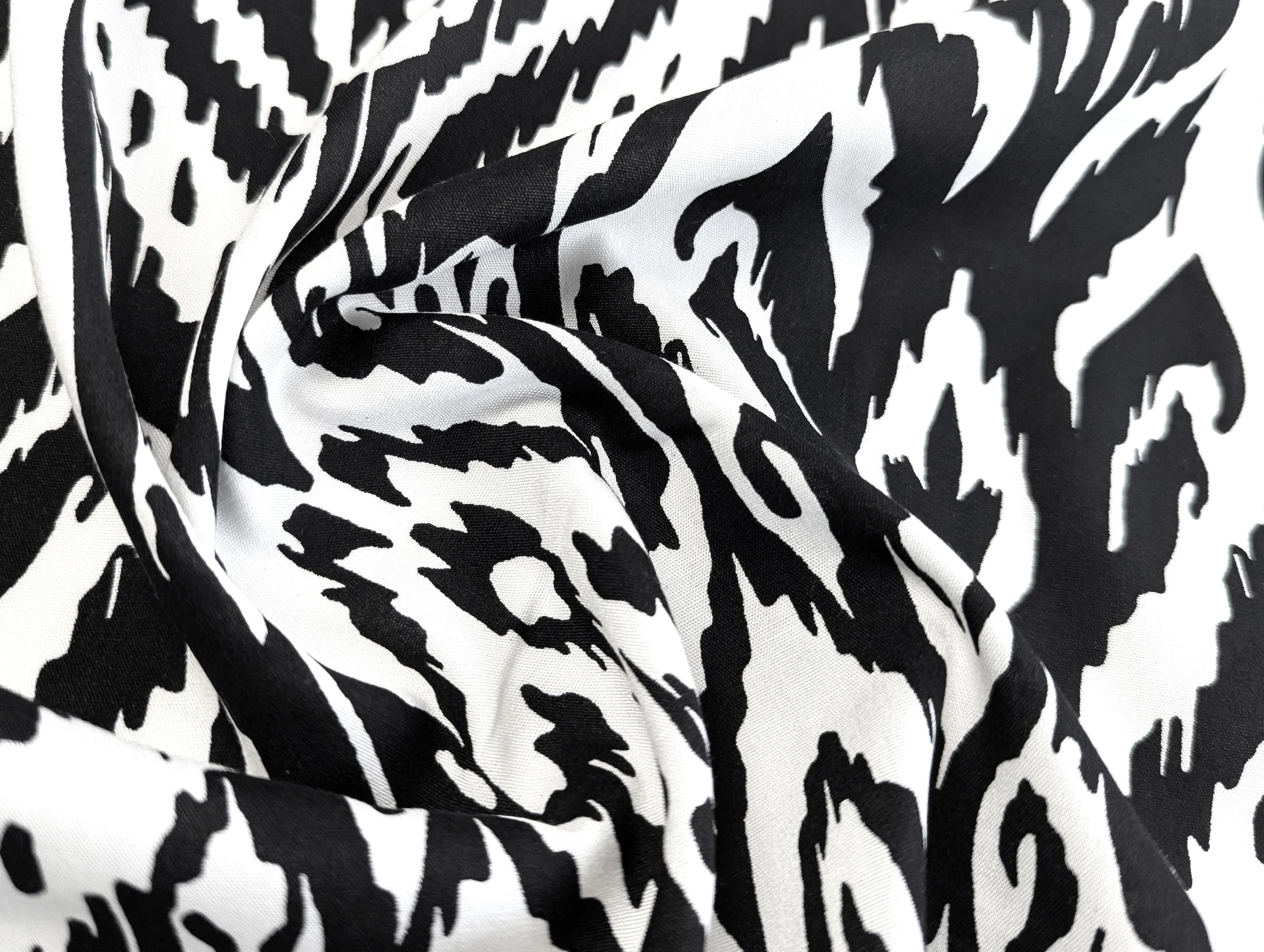 Віскозне полотно дуже легке, приємне до тіла, пропускає повітря і красиво драпірується. Добре підходить для пошиття літнього одягу. Тканина має вологопоглинаючі властивості. З штапелю можна зшити блузу, плаття, сарафан або легкий костюм на літо.