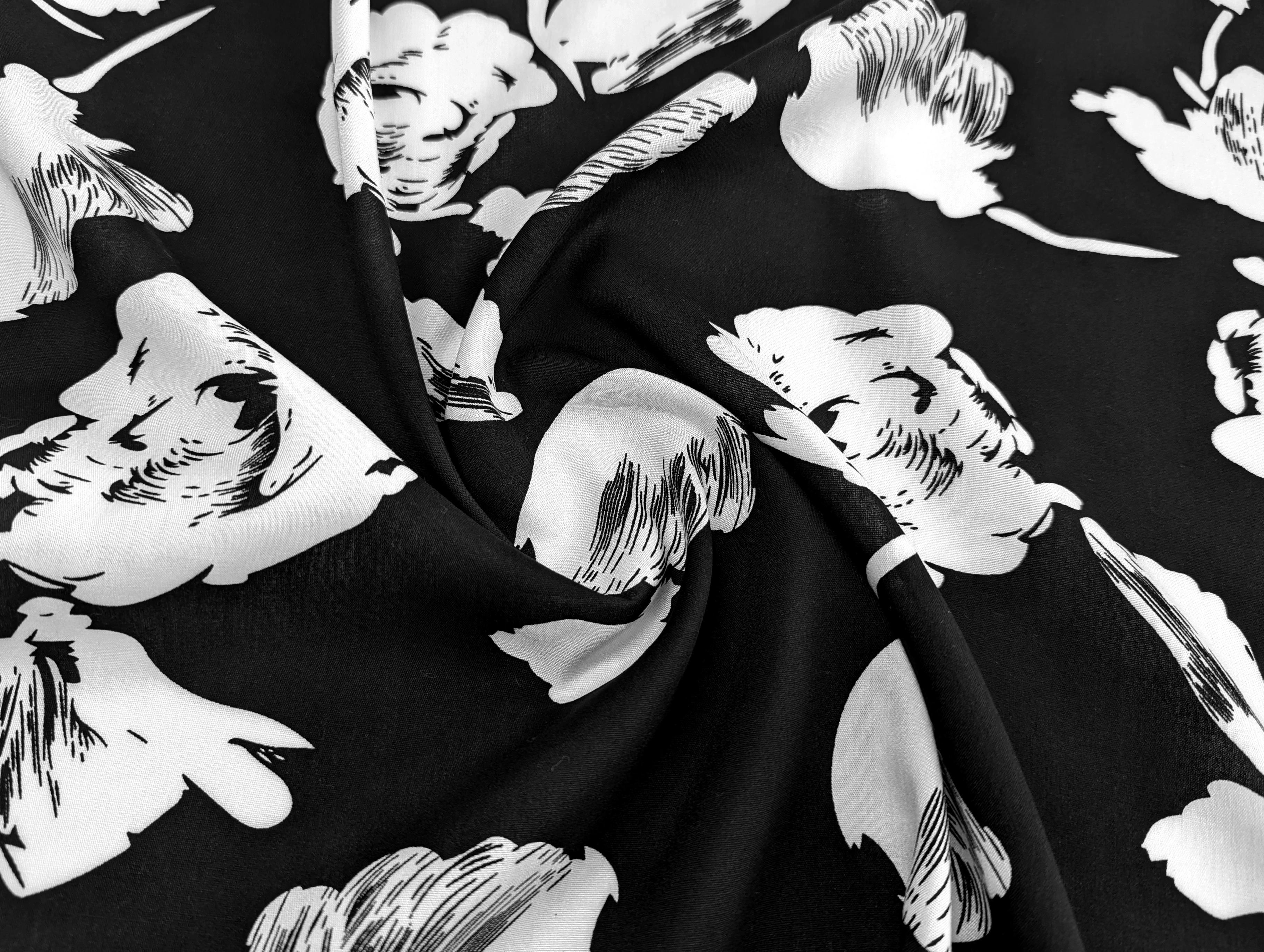 Штапель шовковистий півонії, чорний з молочним