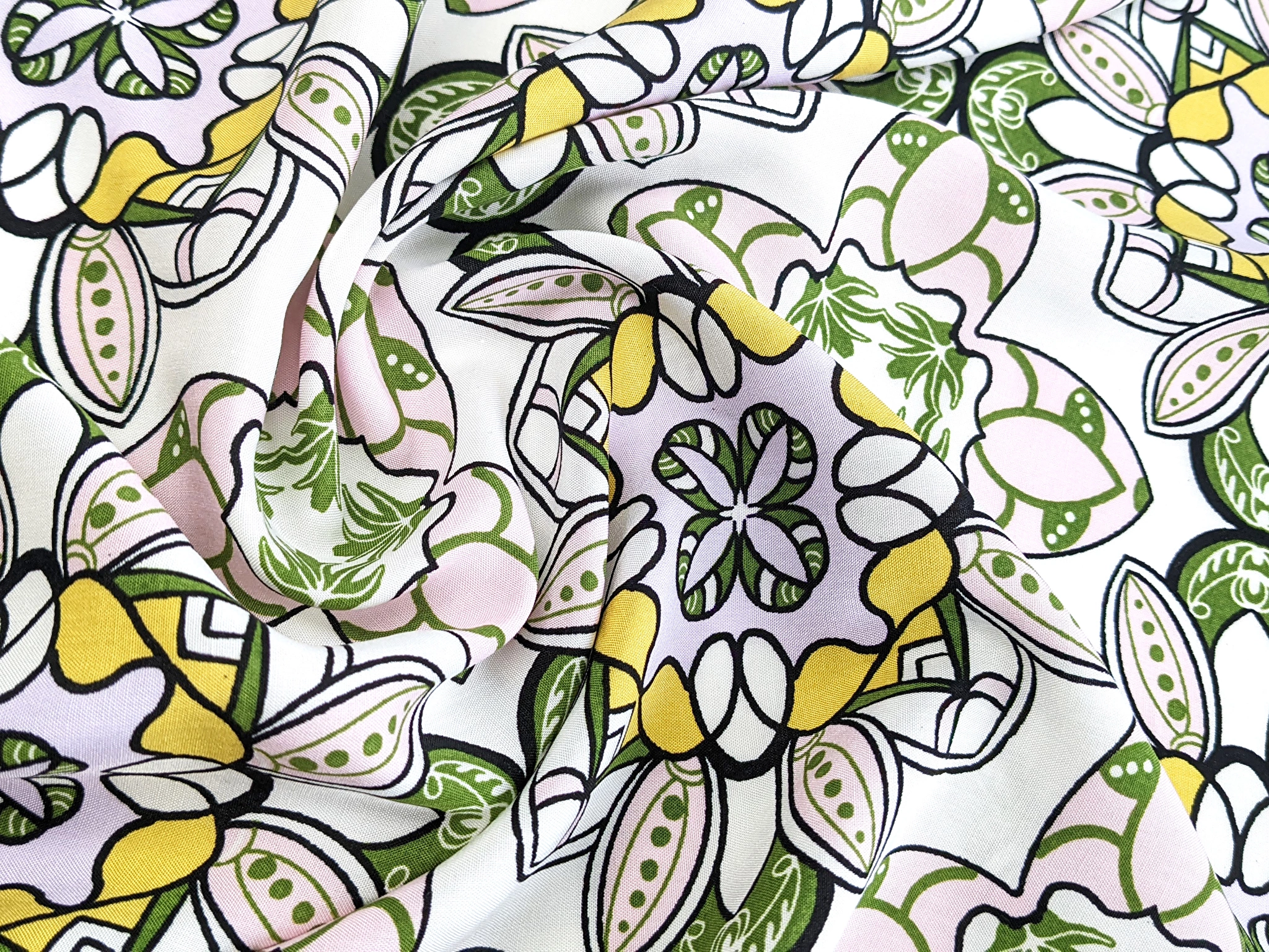 Віскозне полотно дуже легке, приємне до тіла, пропускає повітря і красиво драпірується. Добре підходить для пошиття літнього одягу. Тканина має вологопоглинаючі властивості. З штапелю можна зшити блузу, плаття, сарафан або легкий костюм на літо.