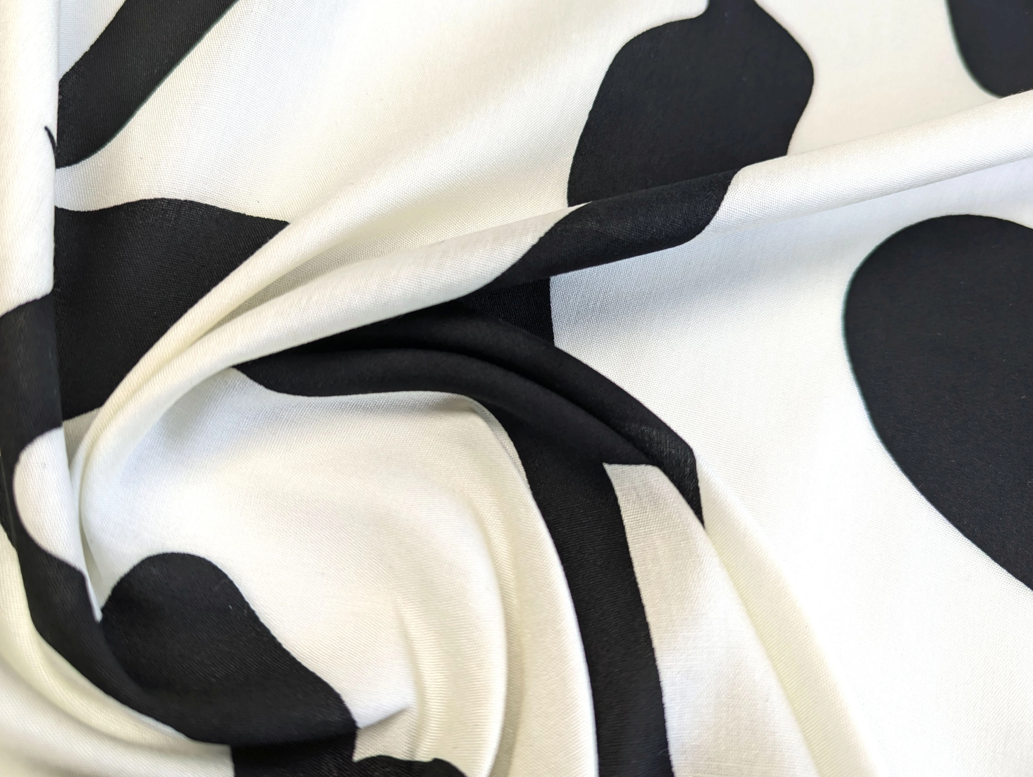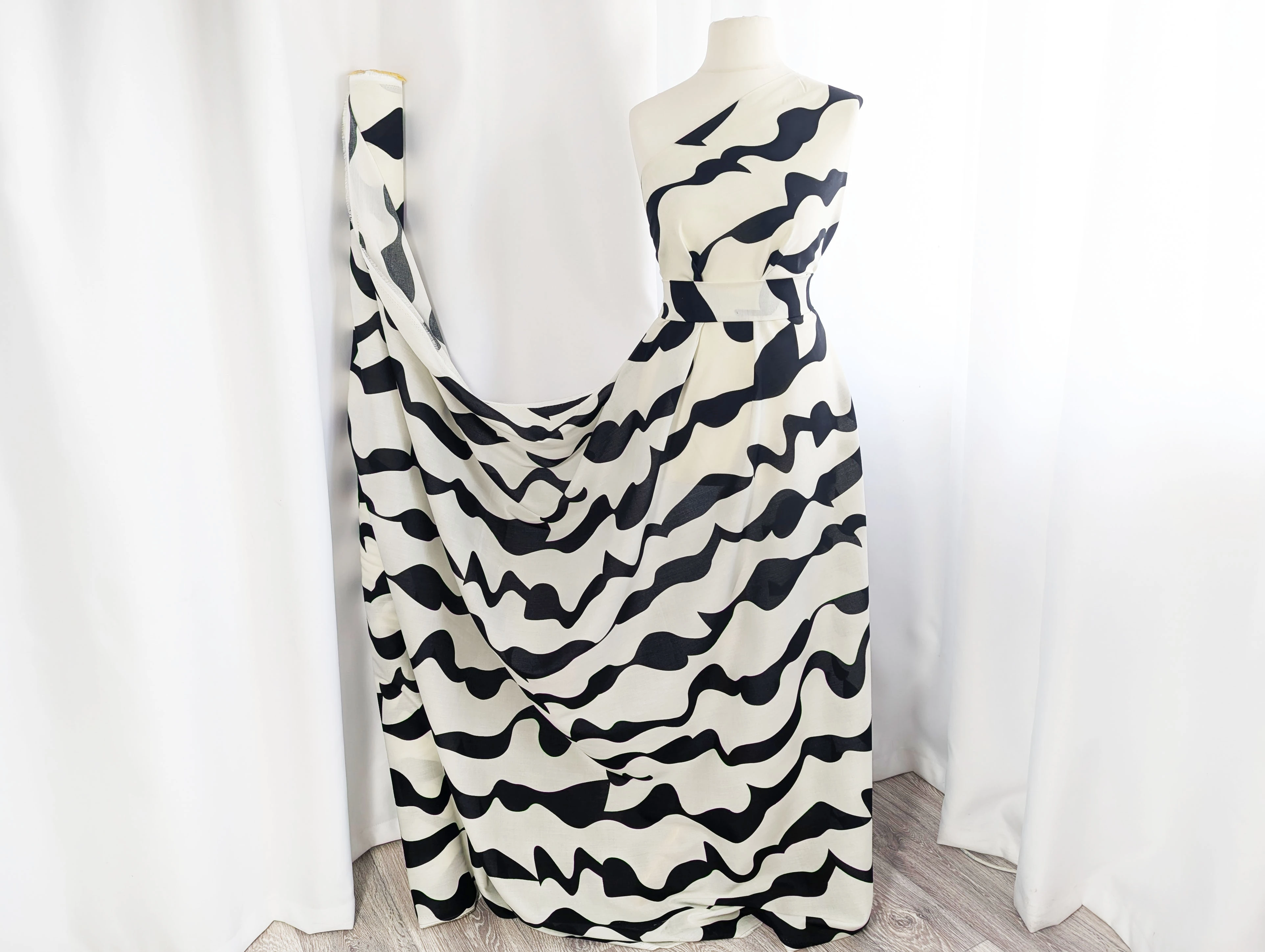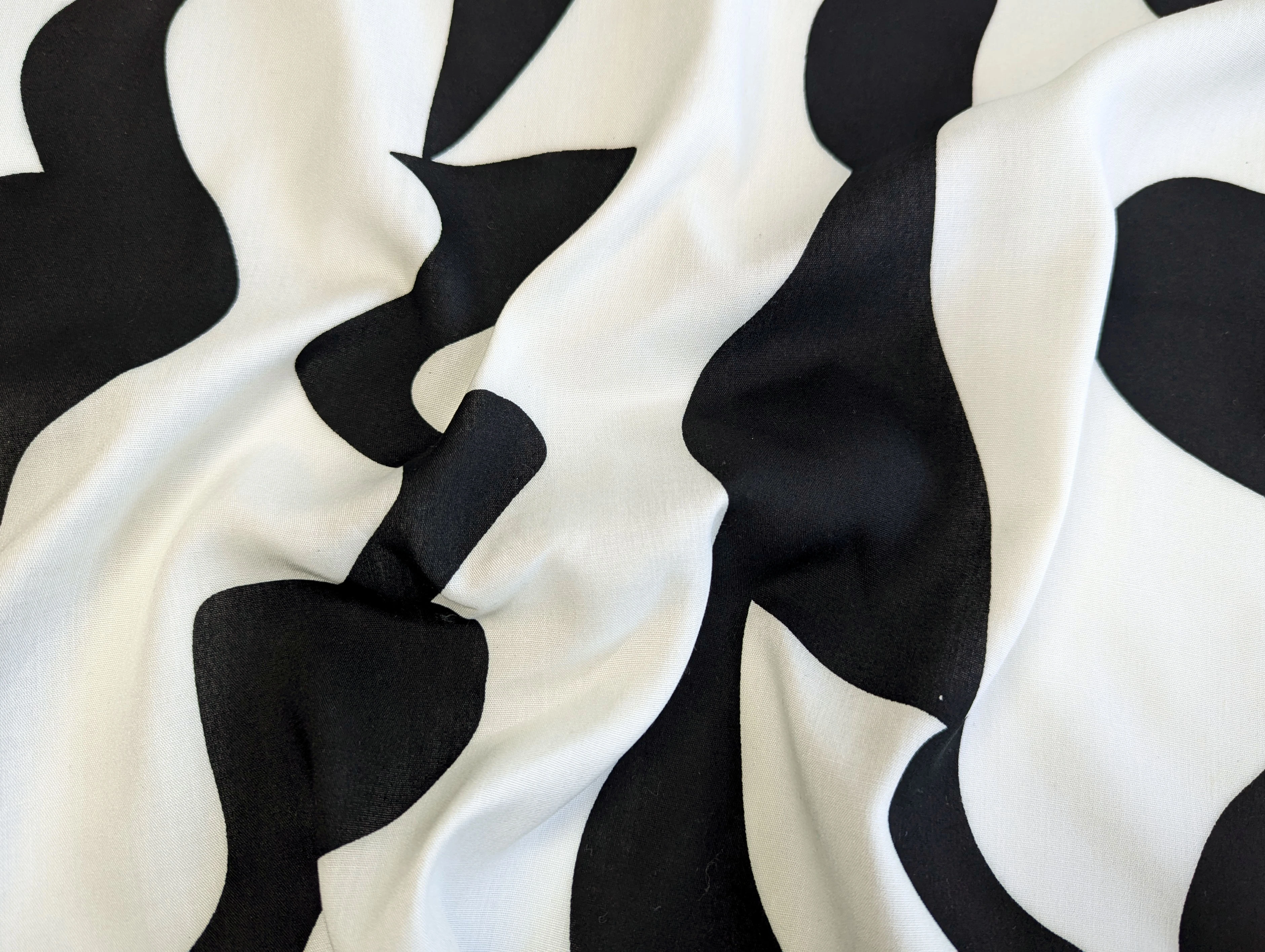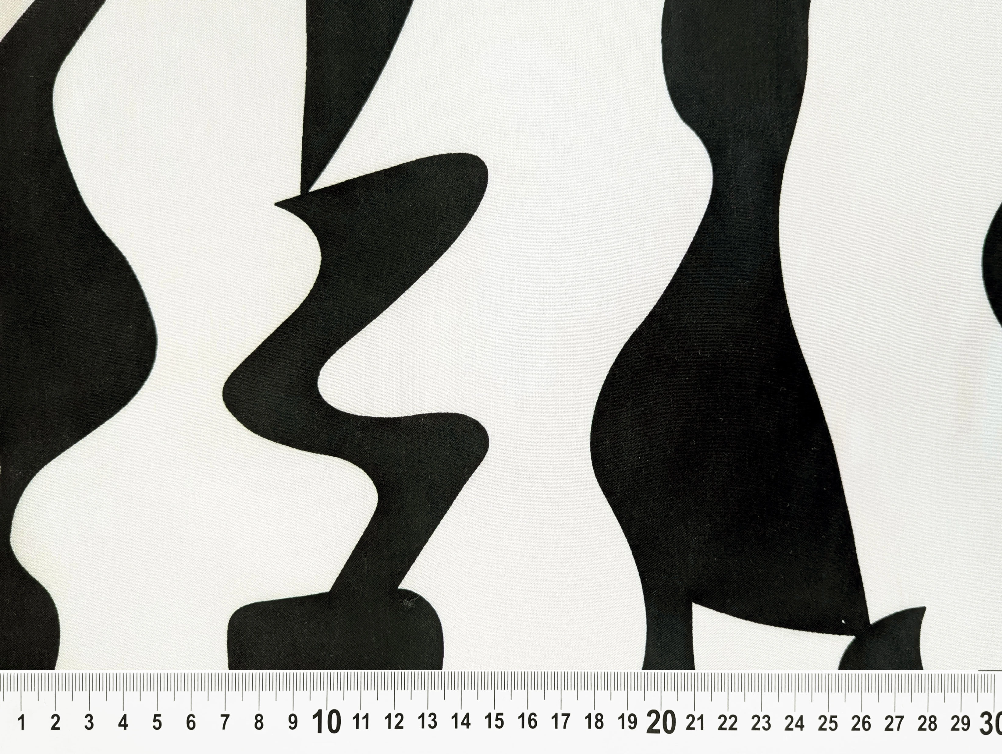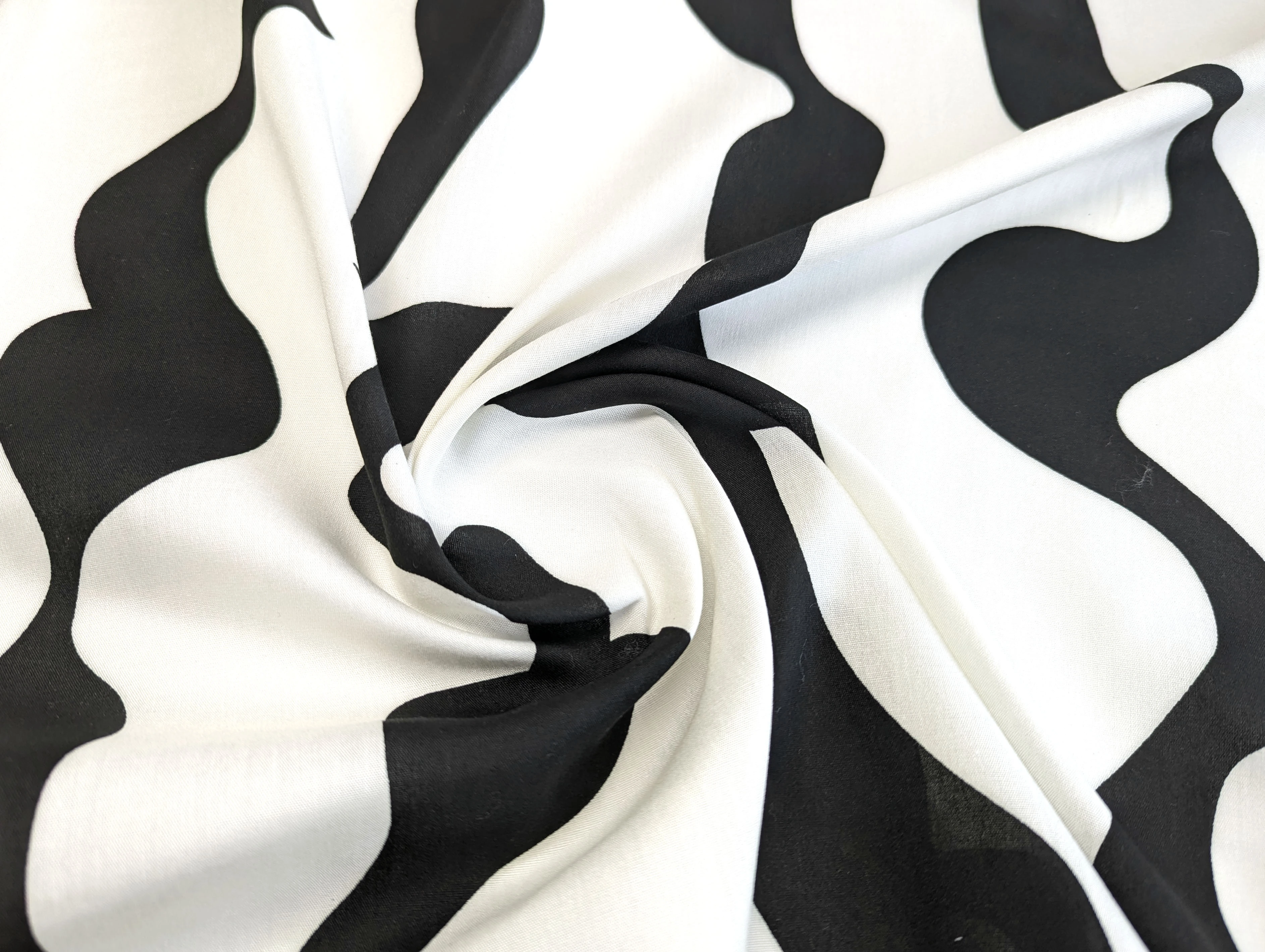 Штапель шовковистий смугаста абстракція, молочний з чорним
