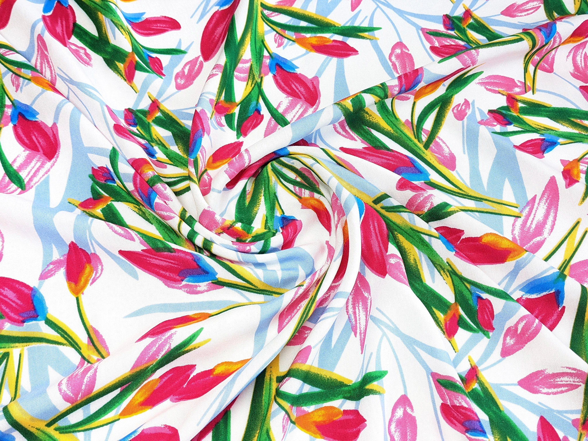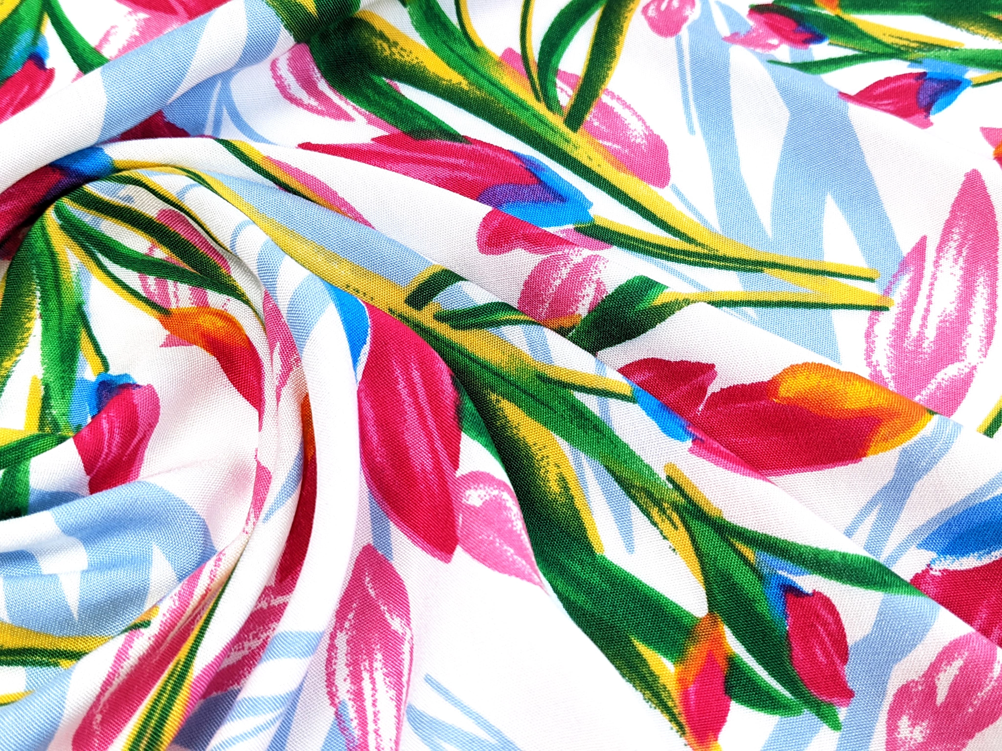 Штапель шовковистий тюльпани, білий (відріз 1,9 м) (ш14, 2211080, д13 цв2)