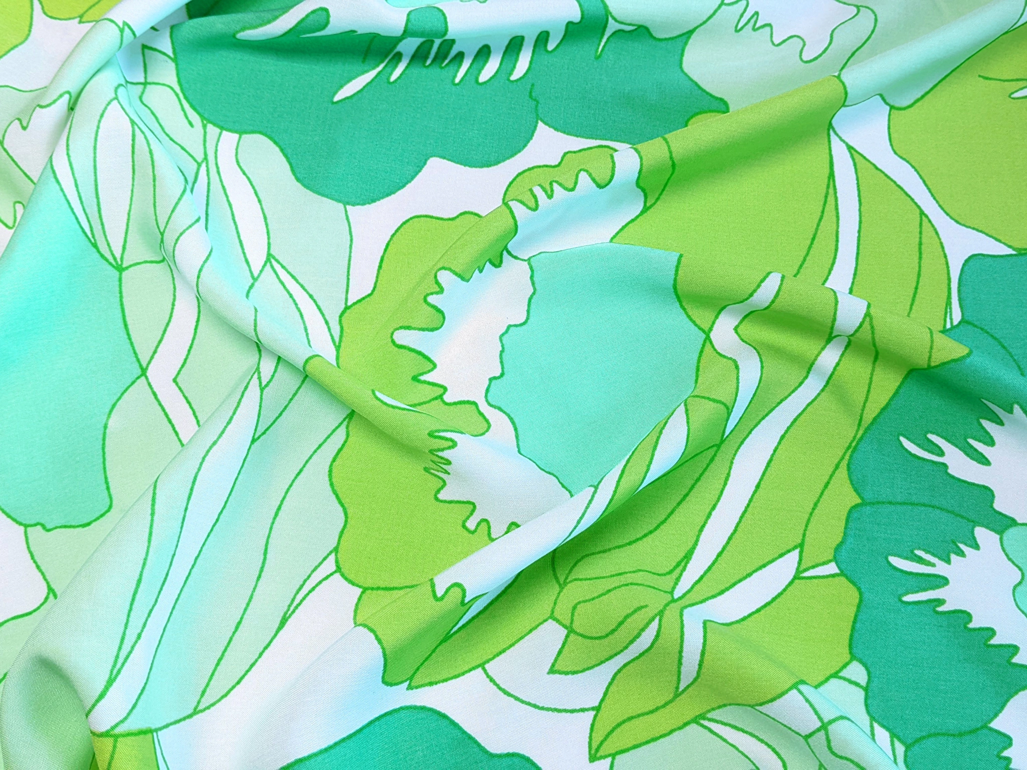 Штапель шовковистий великі квіти, бірюзовий