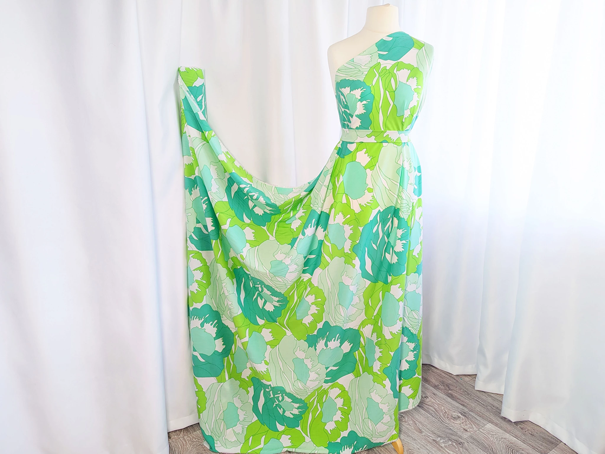 Віскозне полотно дуже легке, приємне до тіла, пропускає повітря і красиво драпірується. Добре підходить для пошиття літнього одягу. Тканина має вологопоглинаючі властивості. З штапелю можна зшити блузу, плаття, сарафан або легкий костюм на літо.