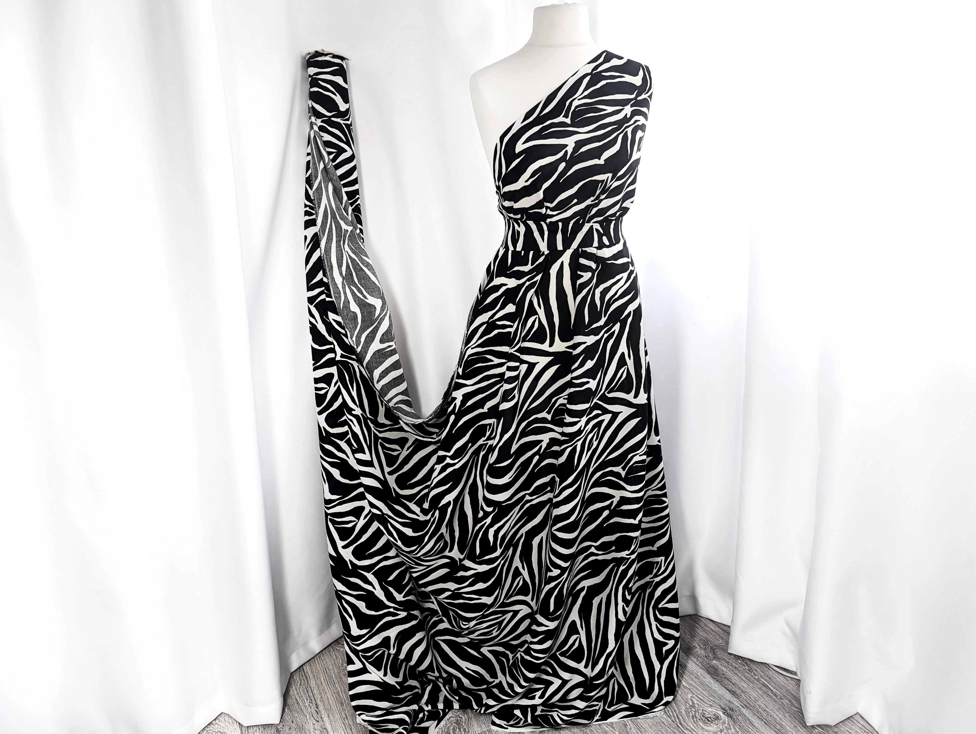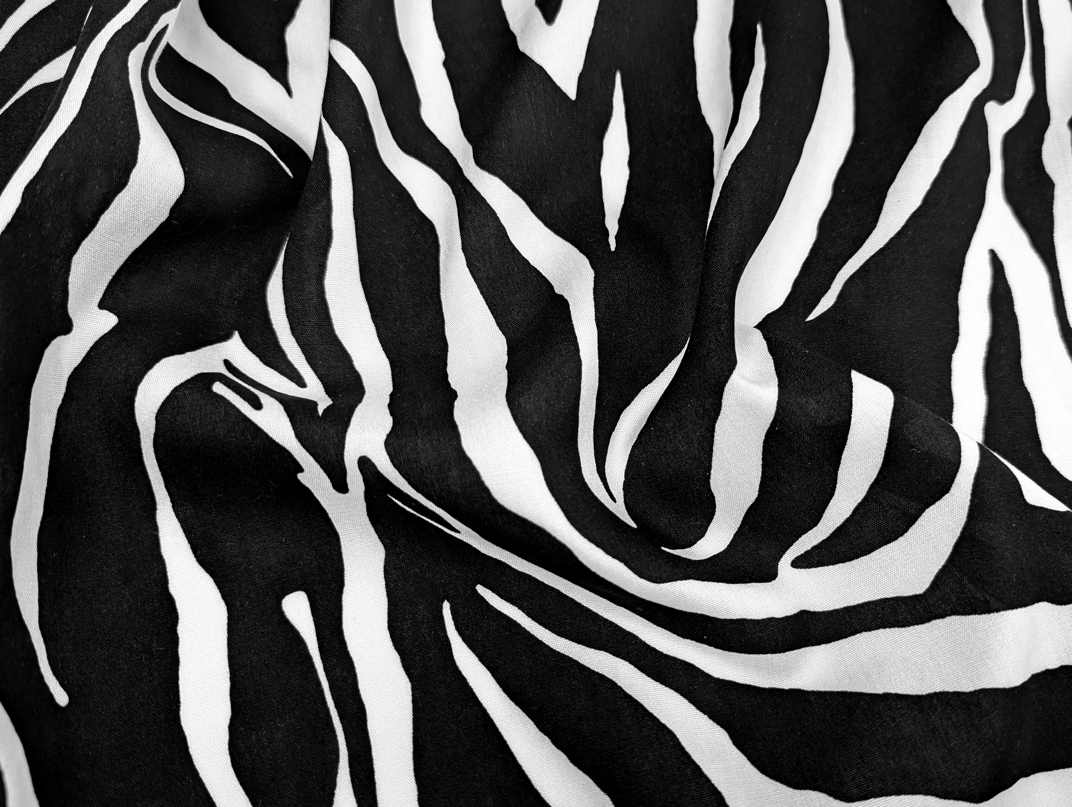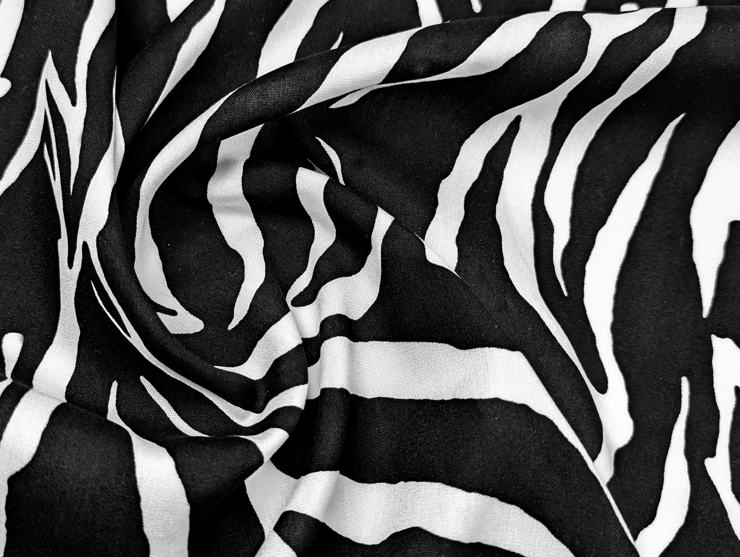 Штапель шелковистый зебра, черный на молочном