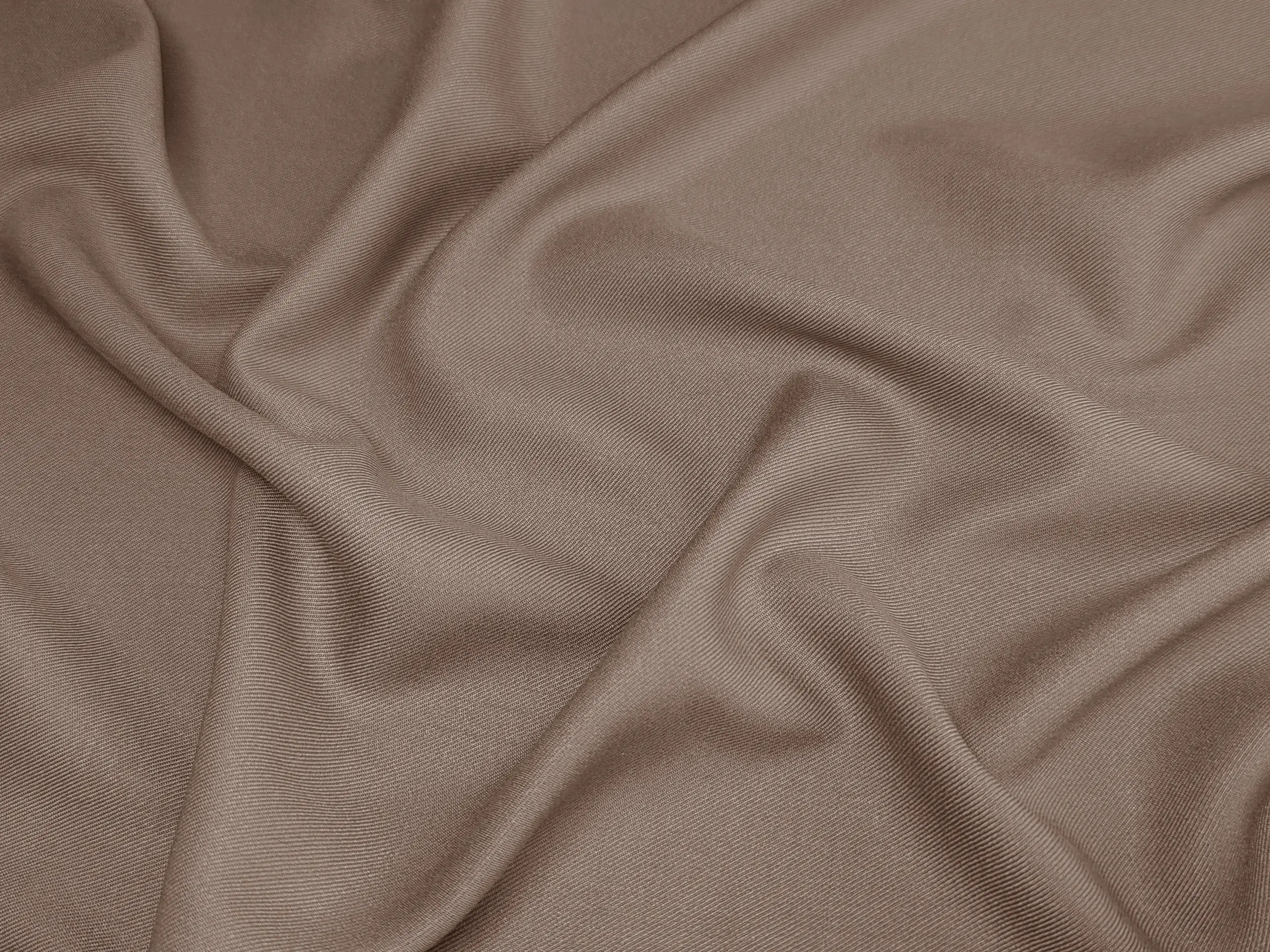 Штапель Стефанія - легка, дихаюча тканина з вираженим твіловим переплетенням ниток з обох боків. Лицьова сторона м’яка, приємна на дотик, з акуратним полірованим блиском, виворіт - гладкий.
