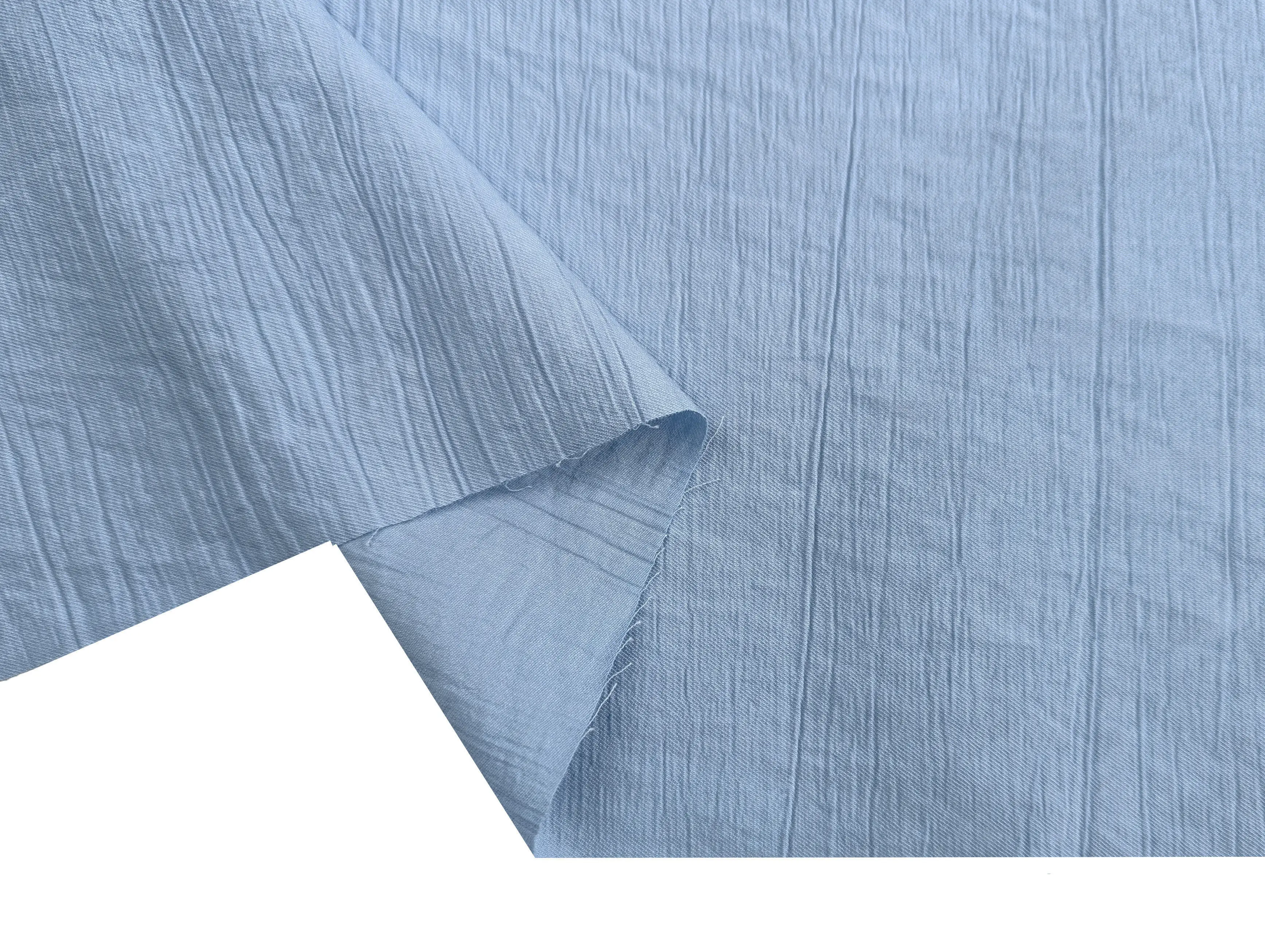 Штапель твіл з нейлоном жатка, блакитний джинсовий (відріз 1,2 м)