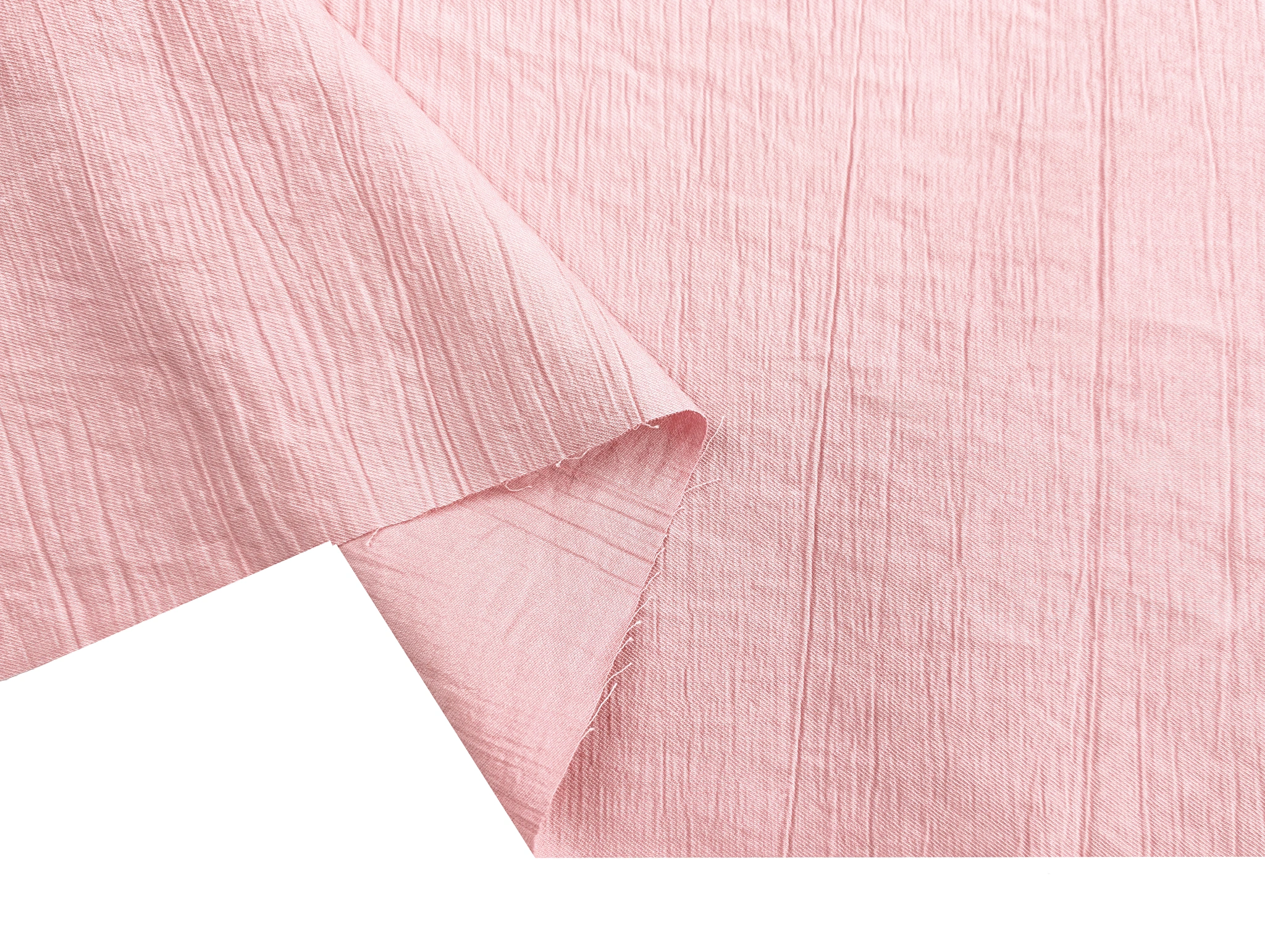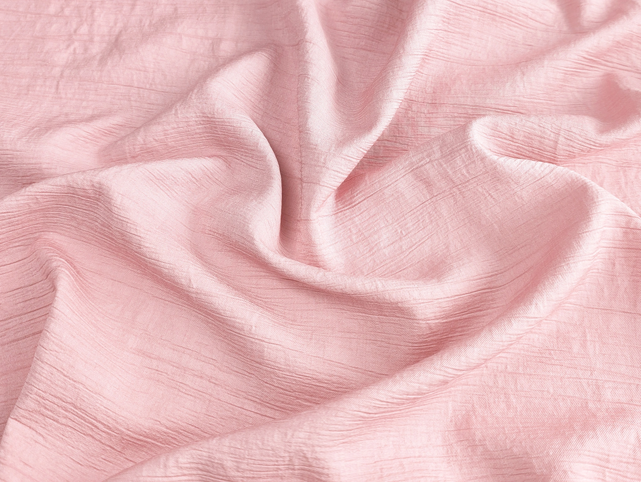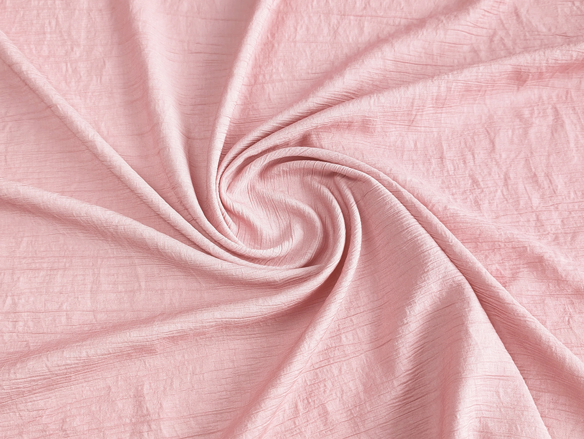 Штапель твіл з нейлоном - легкий, приємний на дотик матеріал з твіловим переплетенням ниток і слабо вираженою діагоналлю на лицьовому боці. Полотно має особливу поверхню з жатим ефектом, сформовані вузькі, хаотичні складки розташовані в поздовжньому напрямку. Штапель має силуетний просвіт, під час драпірування лягає в м'які складки, завдяки вмісту натуральних волокон - мнеться, присутня легка еластичність уздовж полотна. Тканина гігроскопічна і гіпоалергенна.