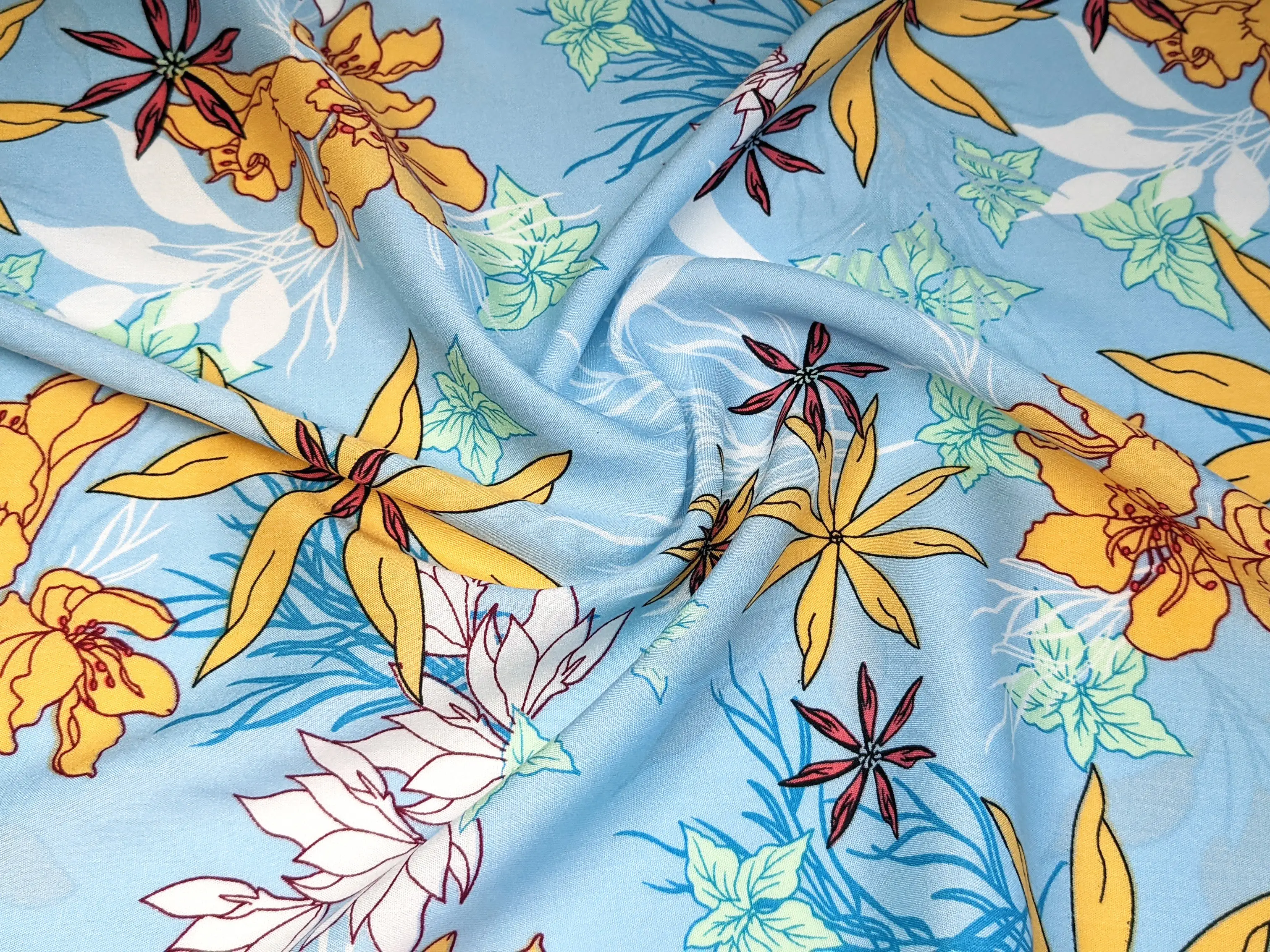 Штапель великі квіти, блакитний (відріз 2,9 м)