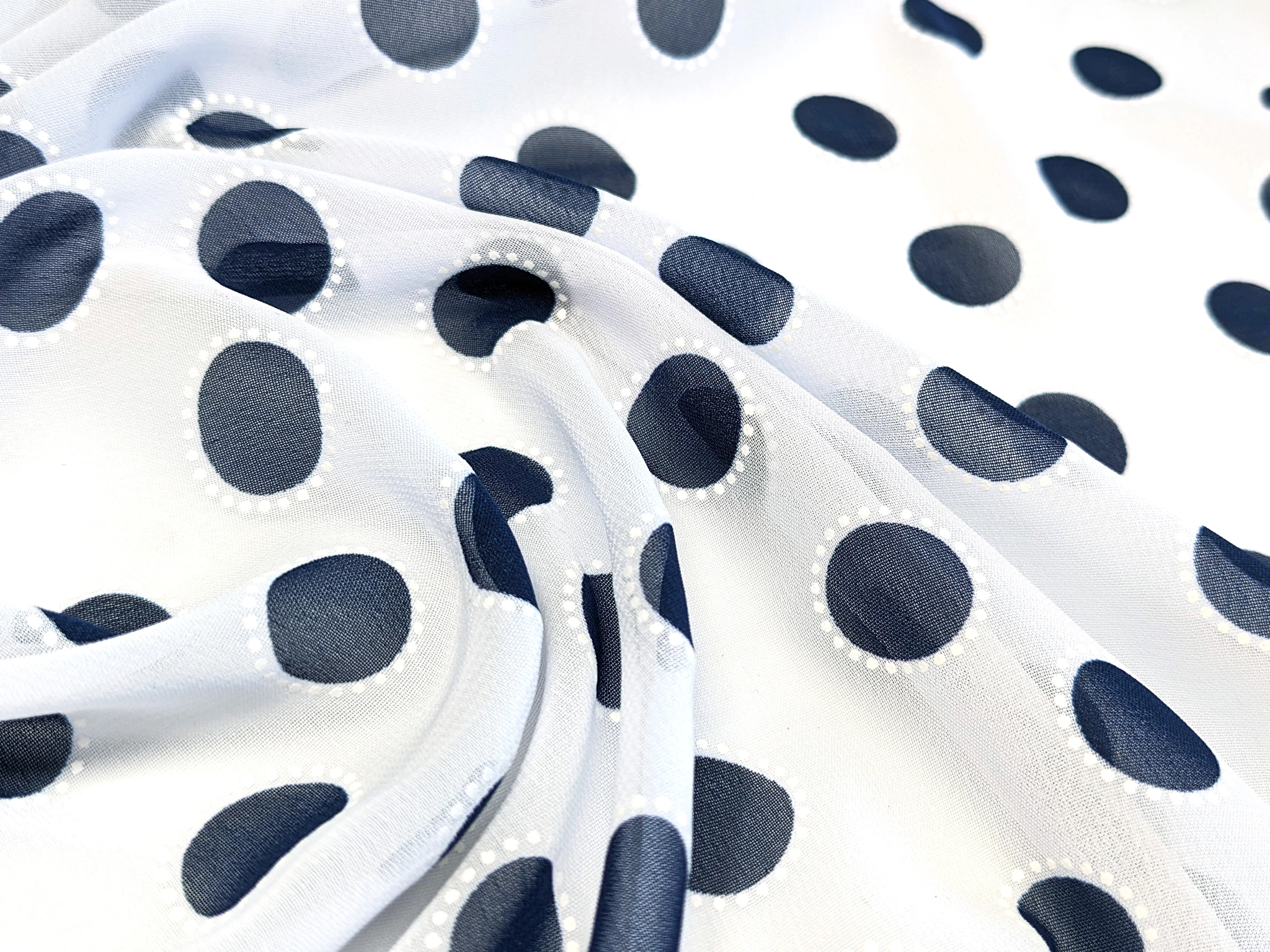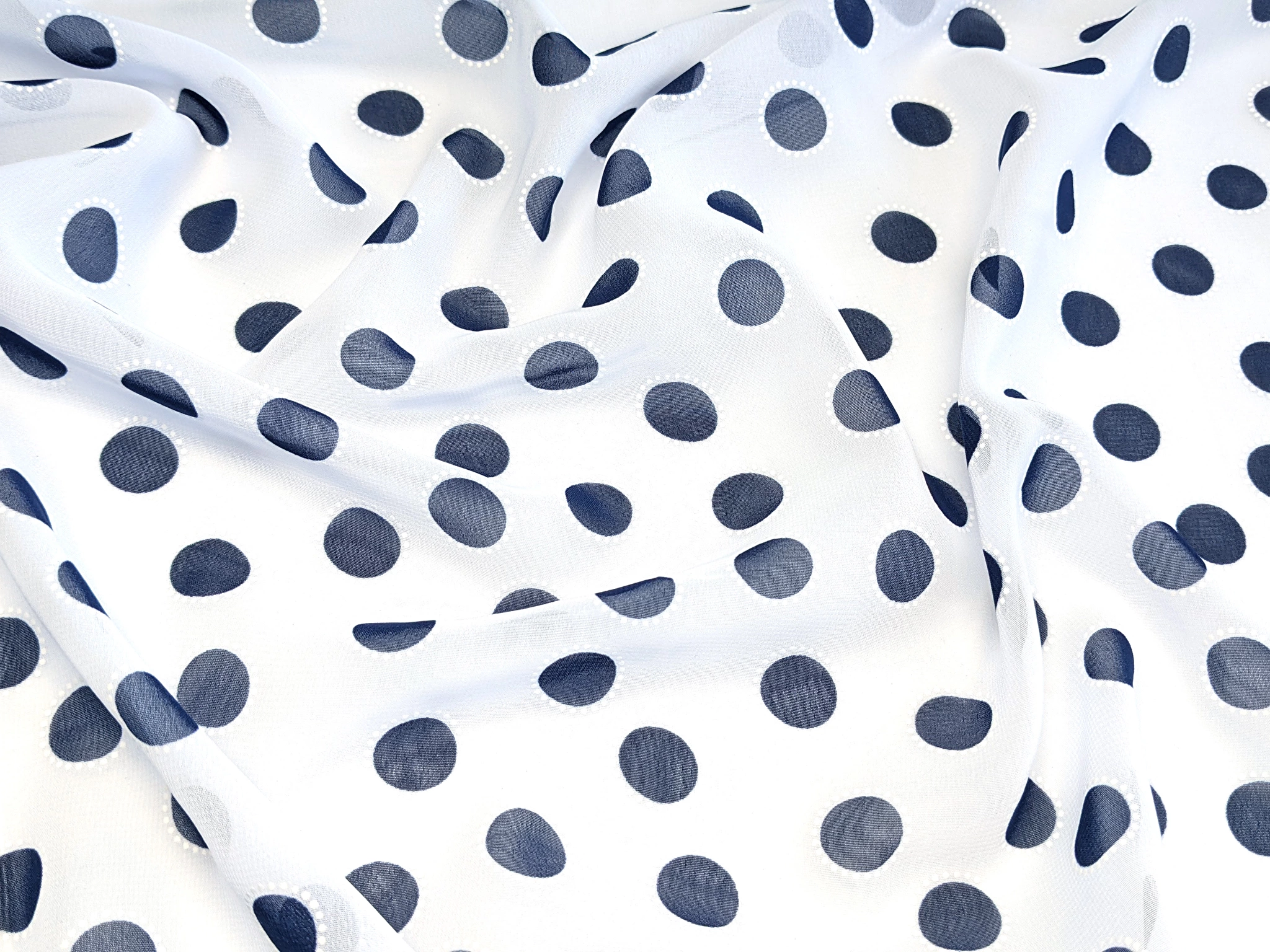 Шифон Бальпо горох 15 мм, темно-синій на білому