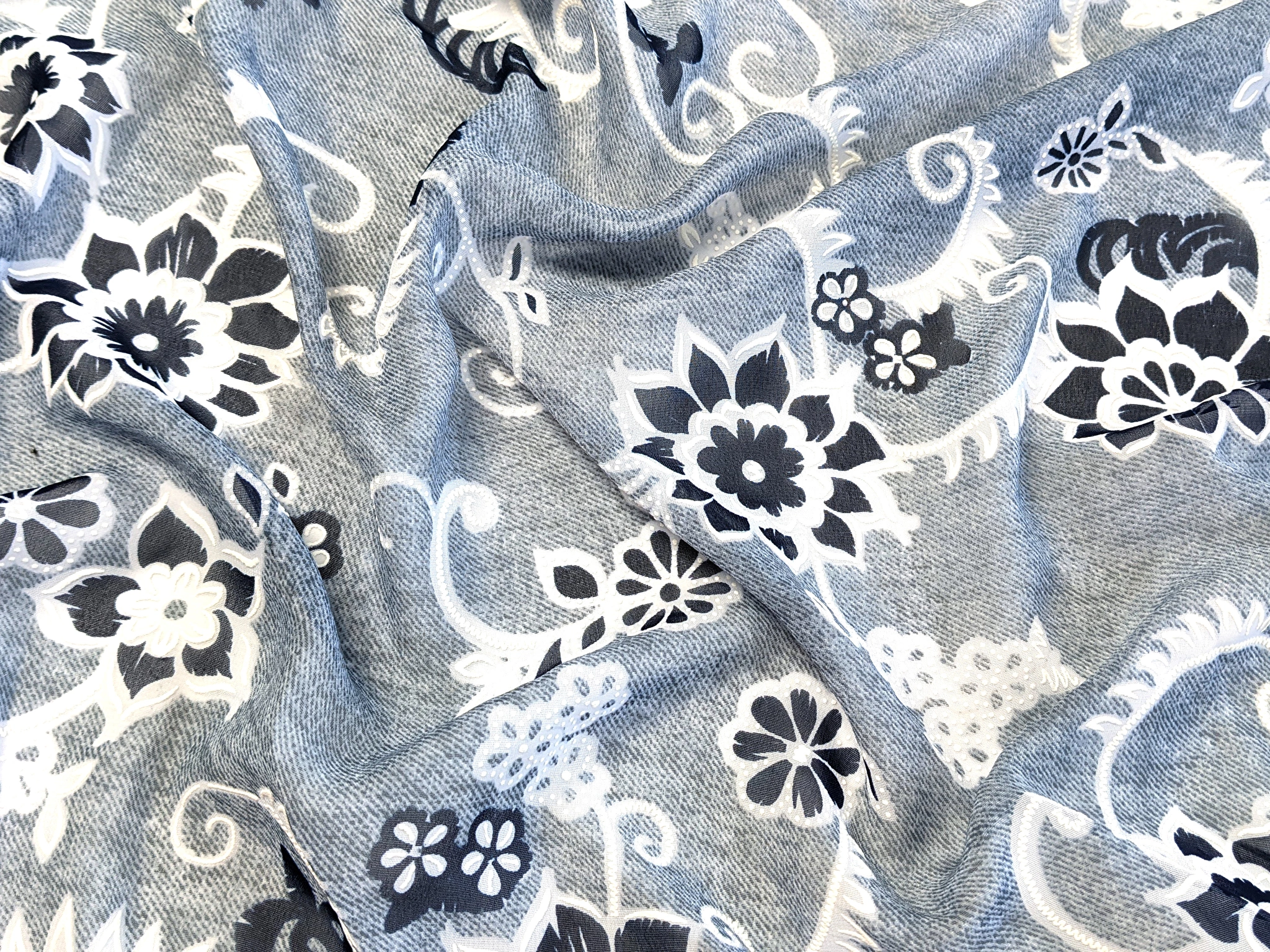 Шифон Бальпо квітковий візерунок, сірий