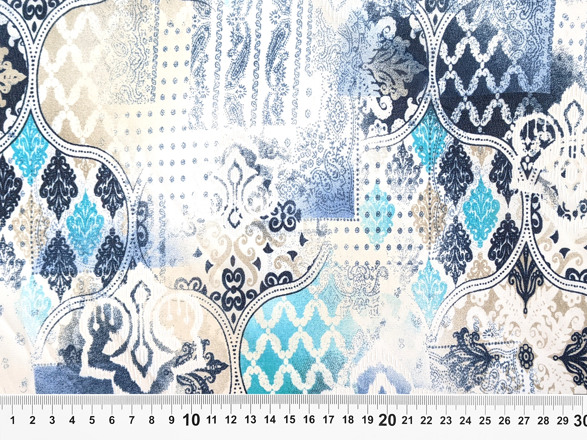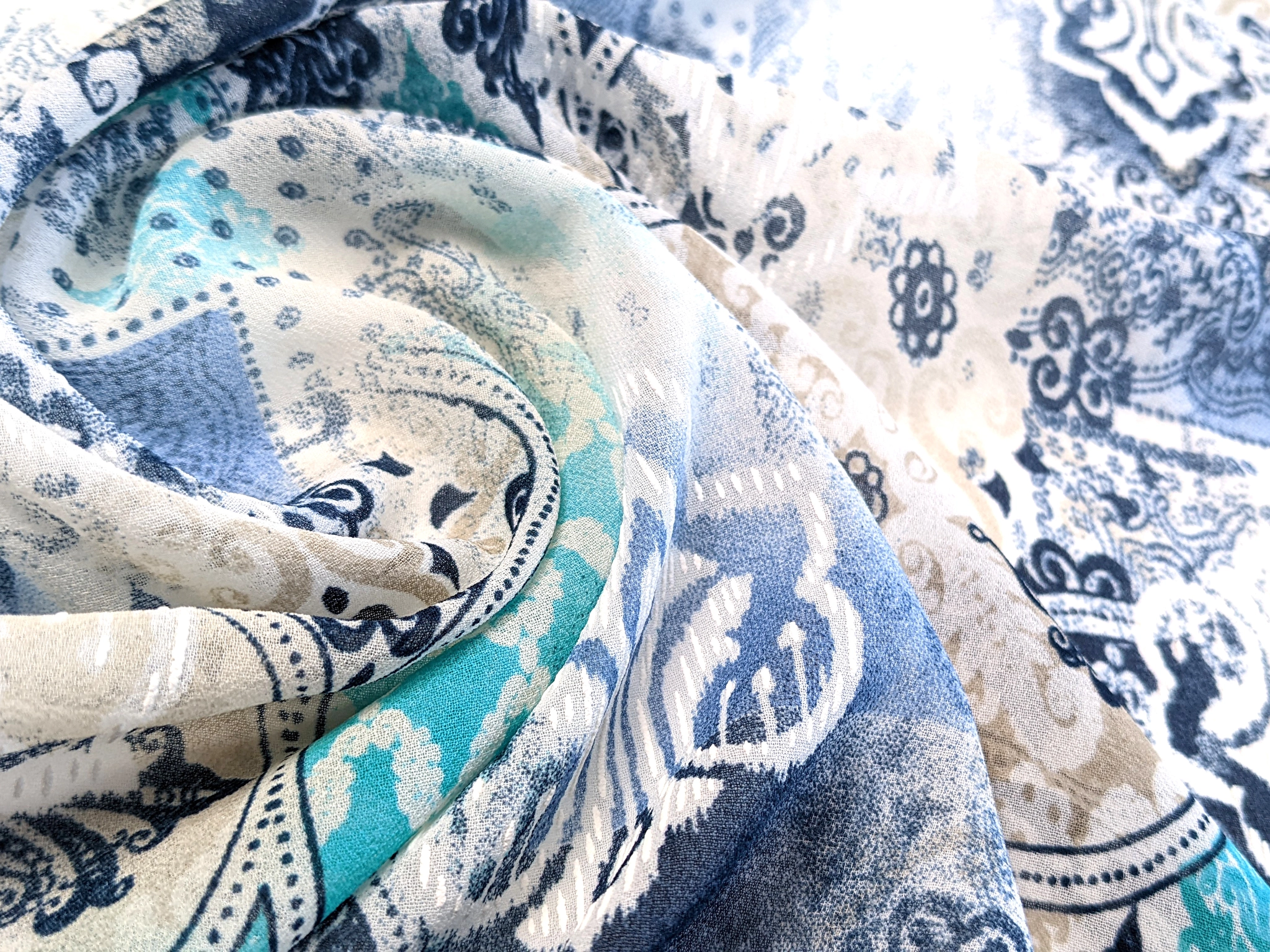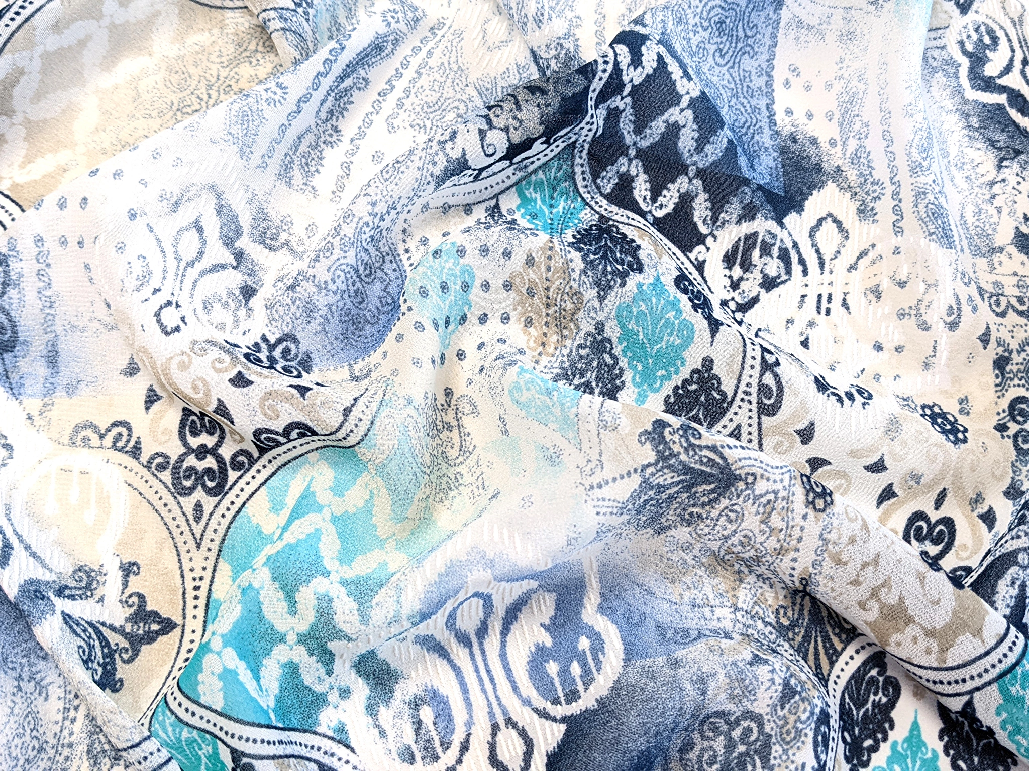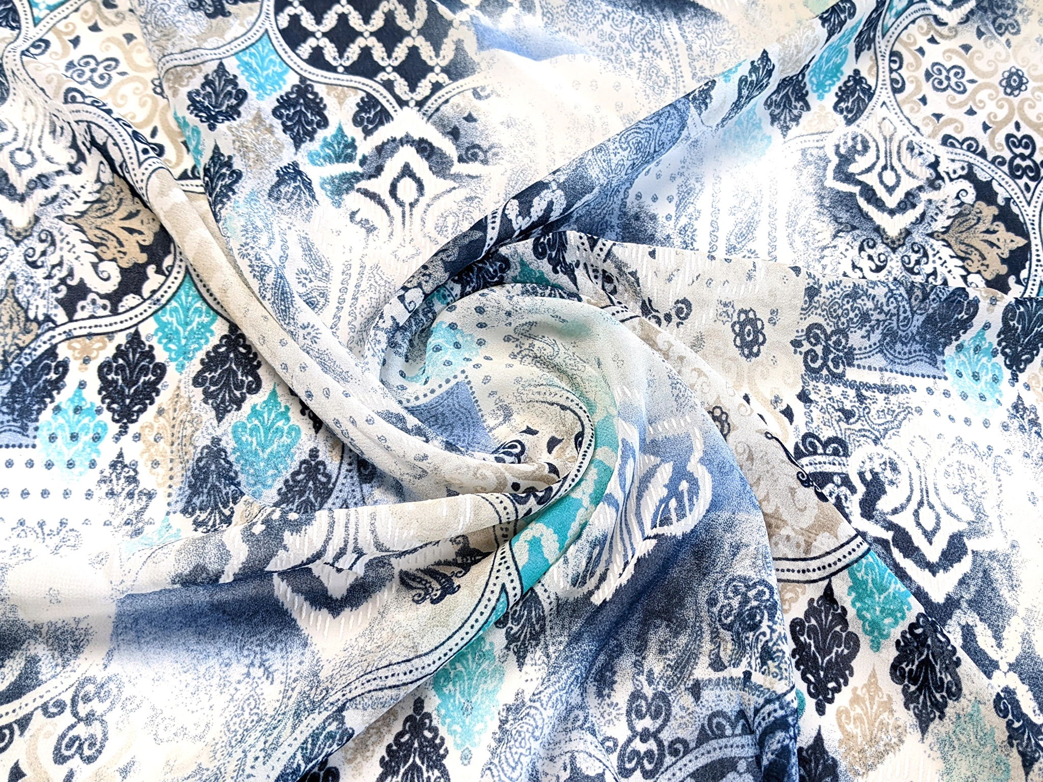 Шифон Бальпо мікс орнаментів, сіро-бірюзовий