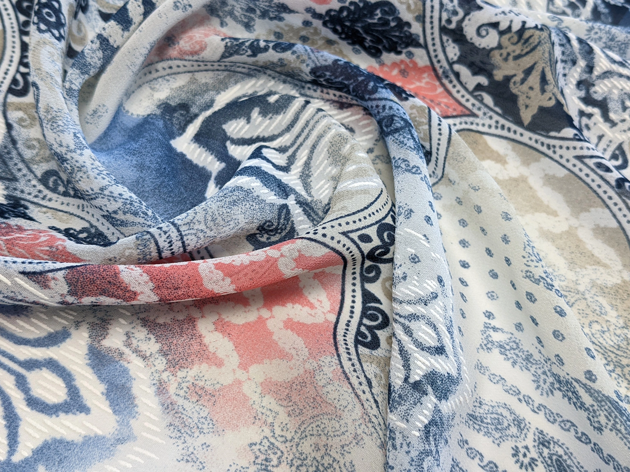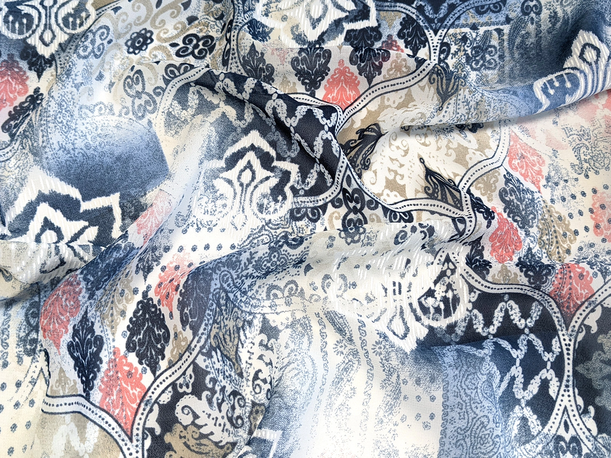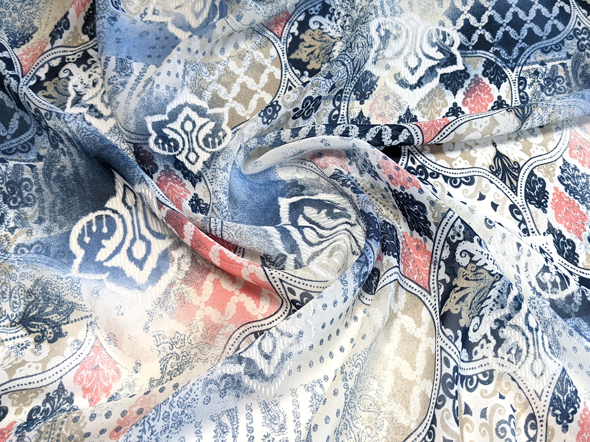 Шифон Бальпо мікс орнаментів, сіро-кораловий