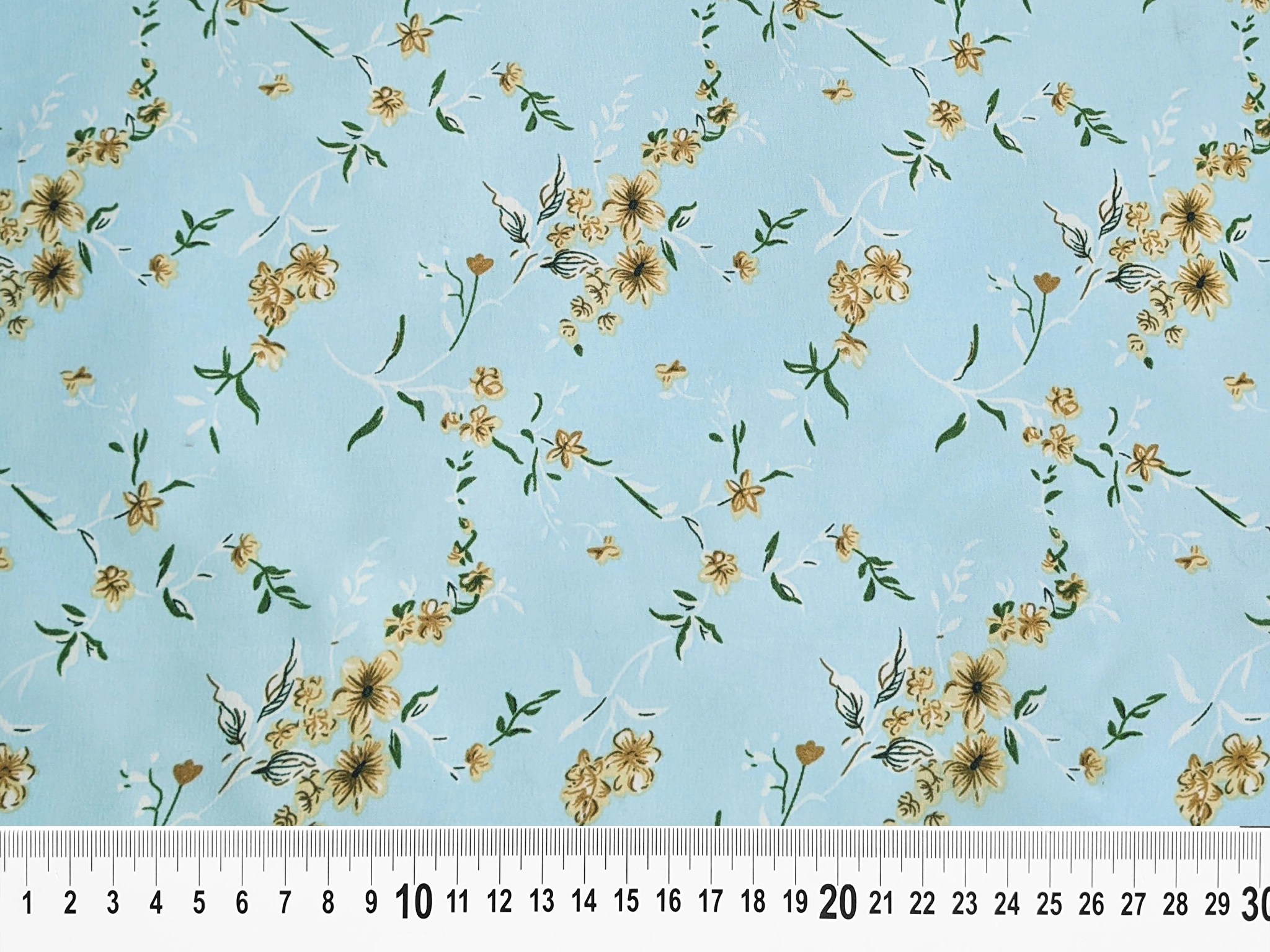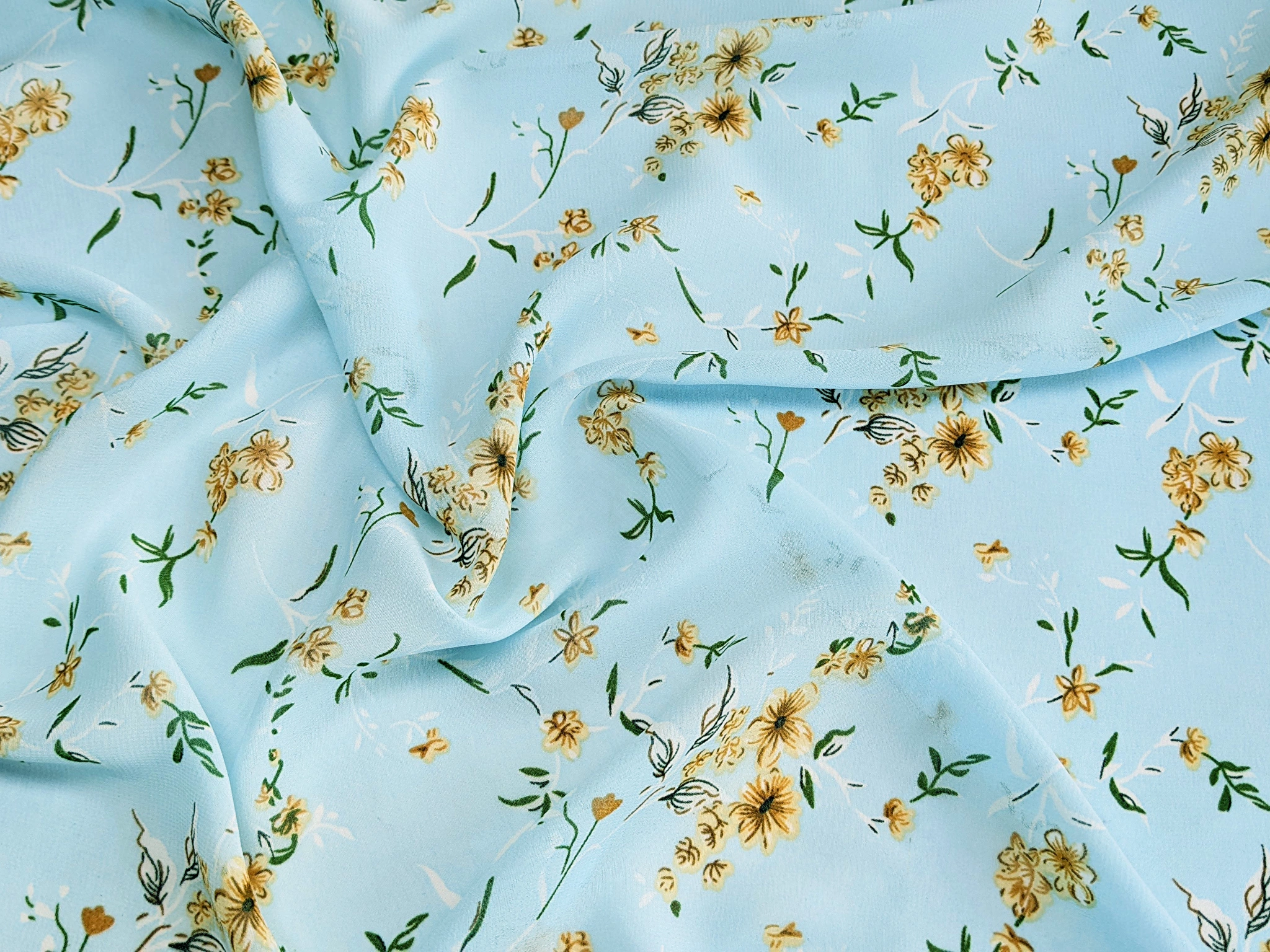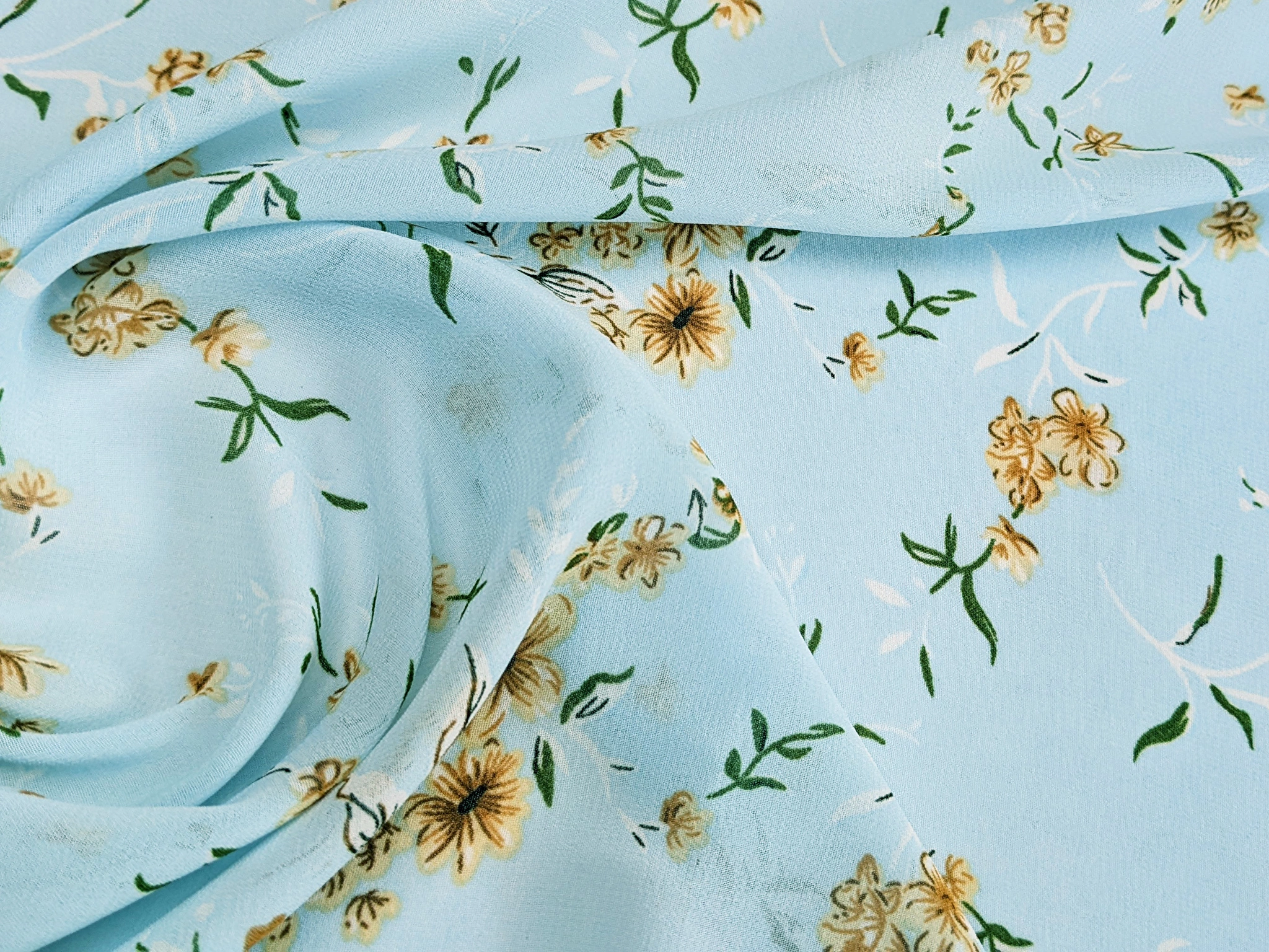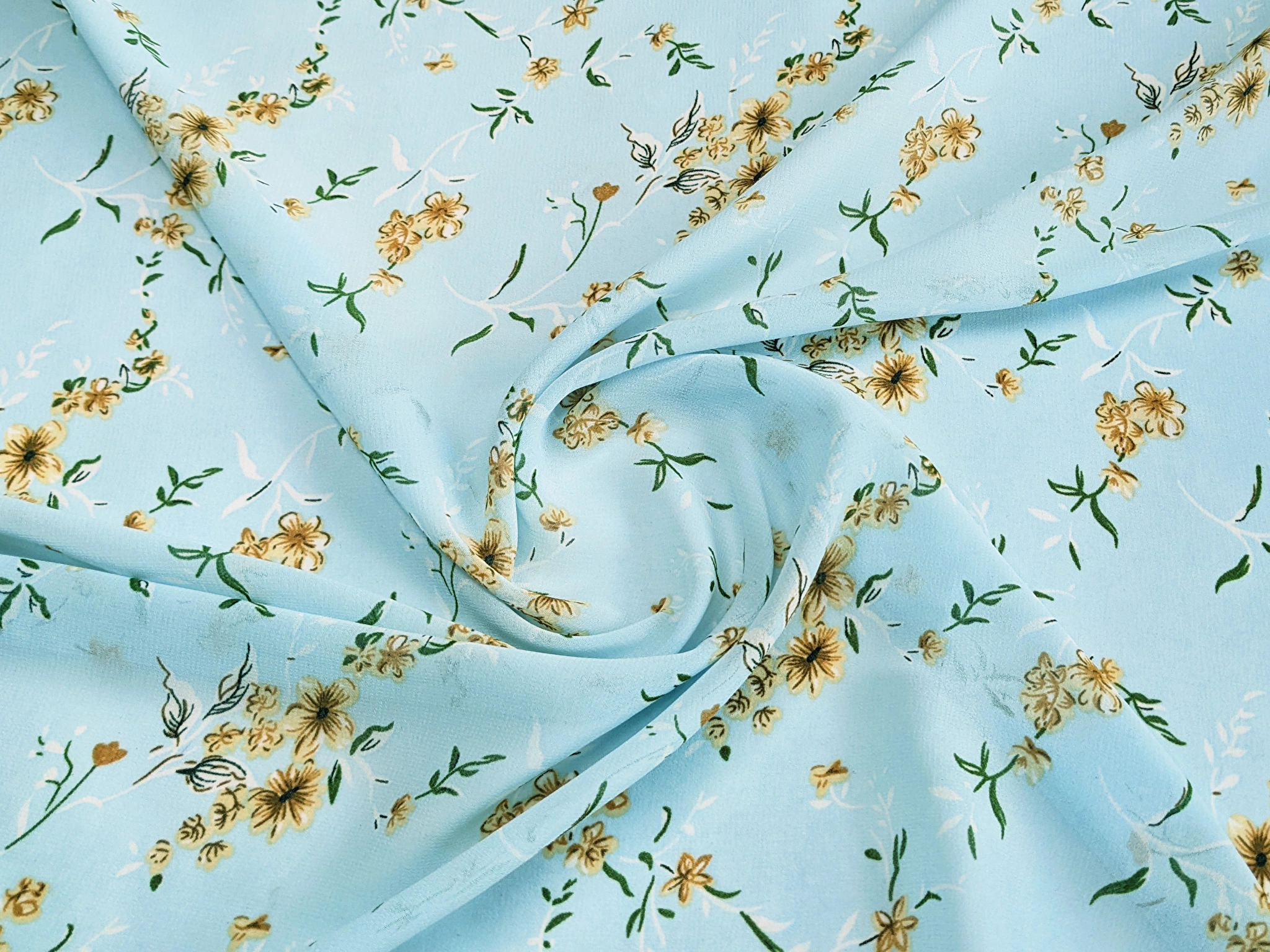 Шифон креповий квіткові візерунки, ніжно-голубий