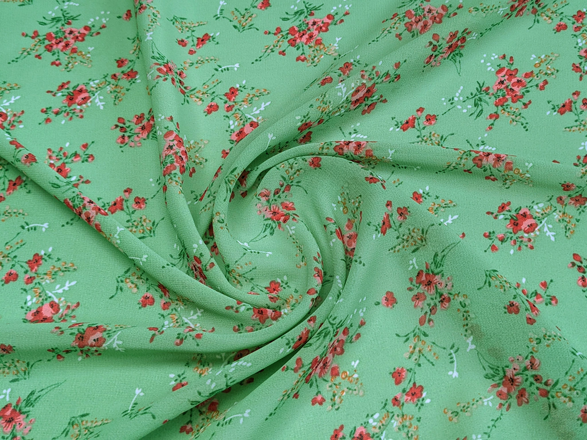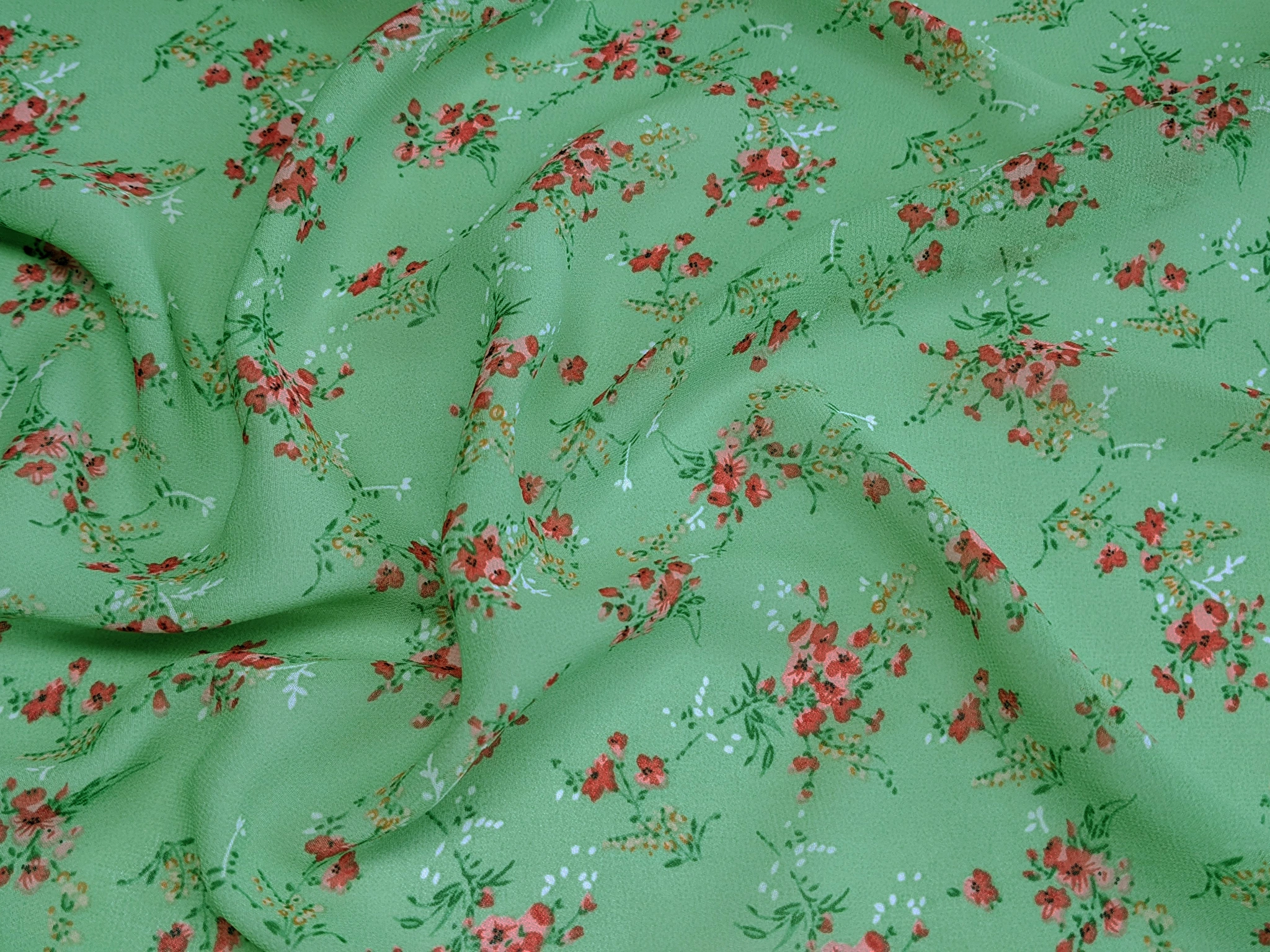 Шифон креповий ніжні букети, темно-салатовий