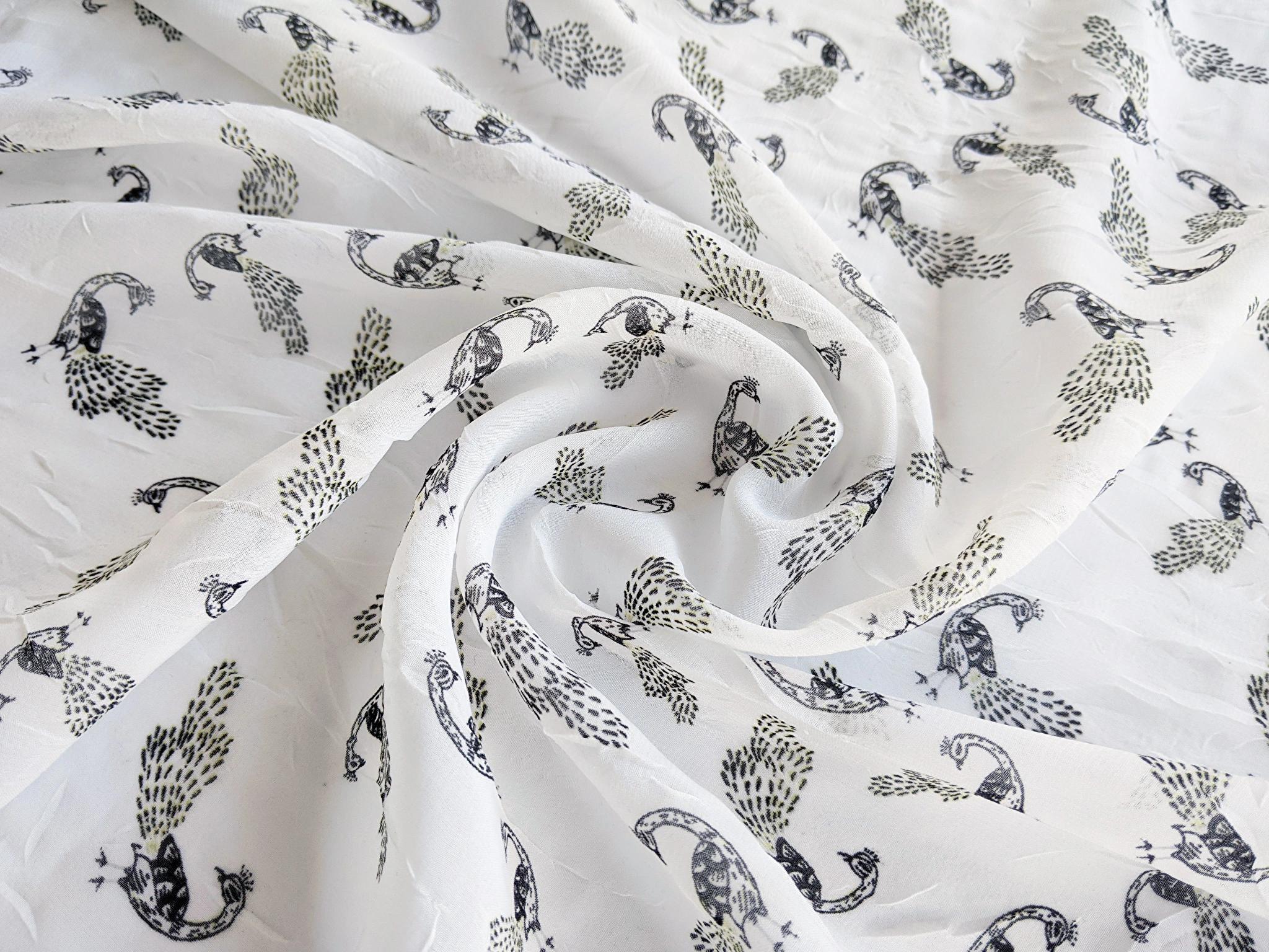 Шифон креш павич, білий (відріз 2 м)