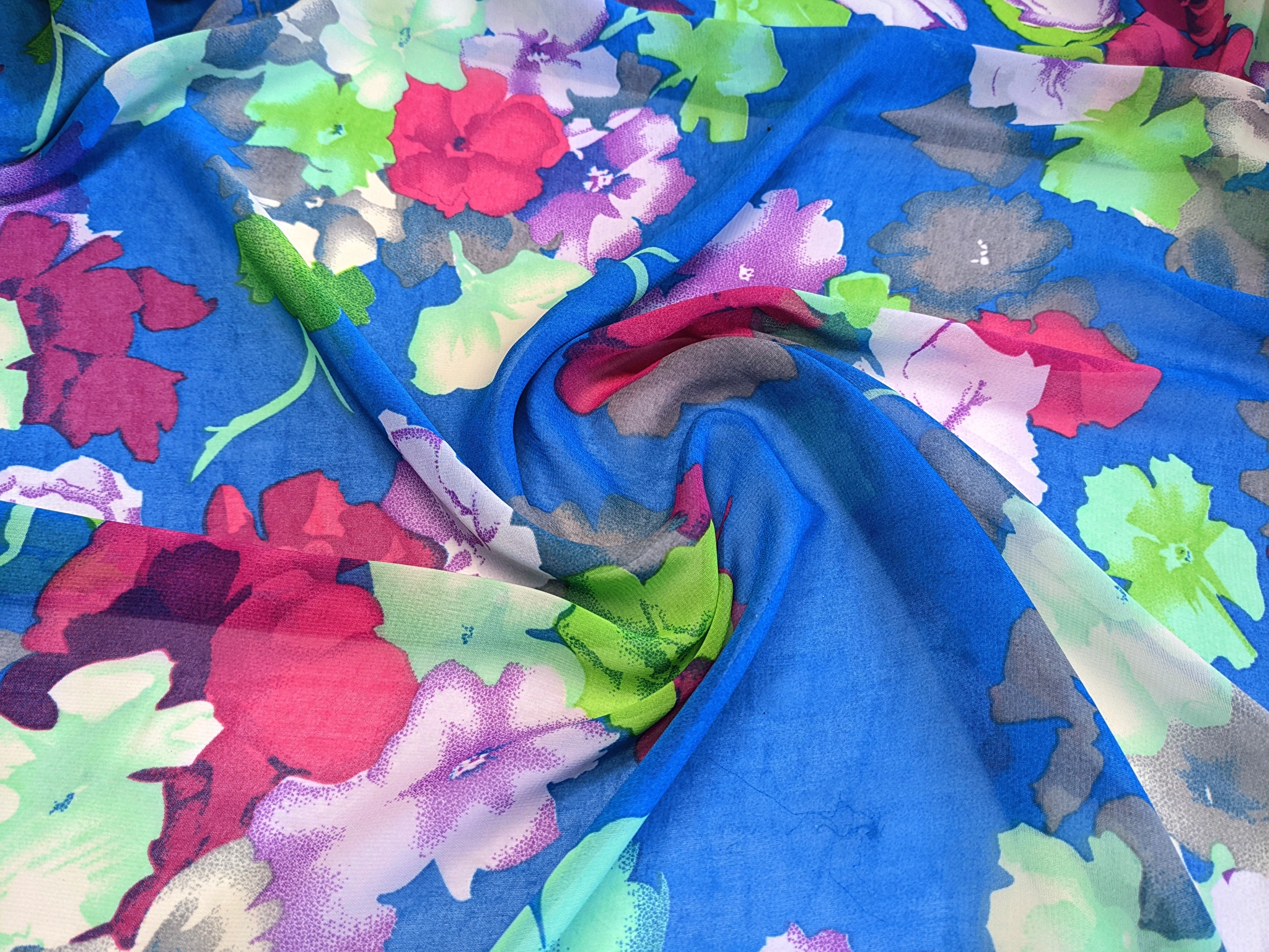 Шифон малюнок квітковий, багатокольоровий (ш1601, б/а, цветы)