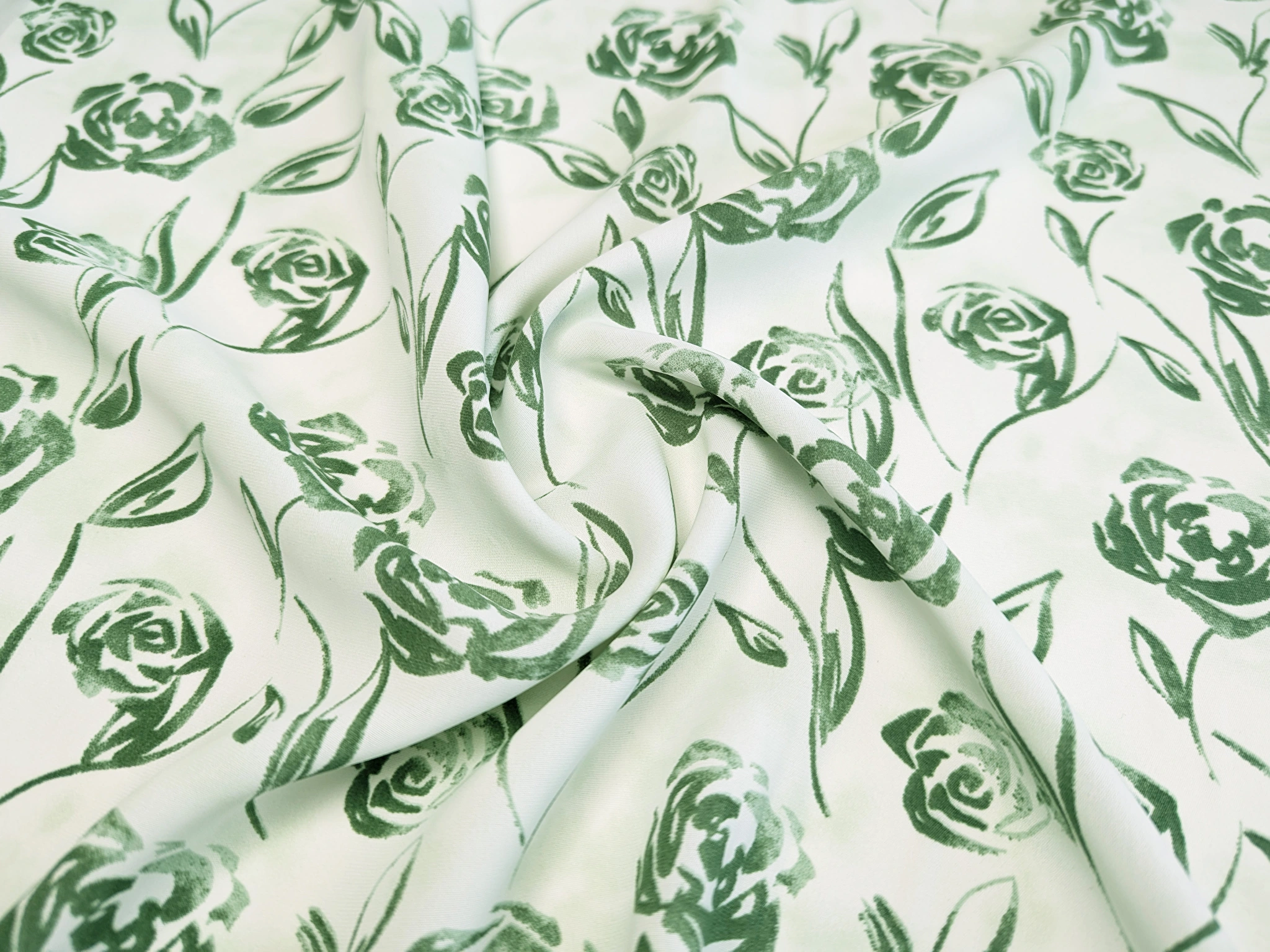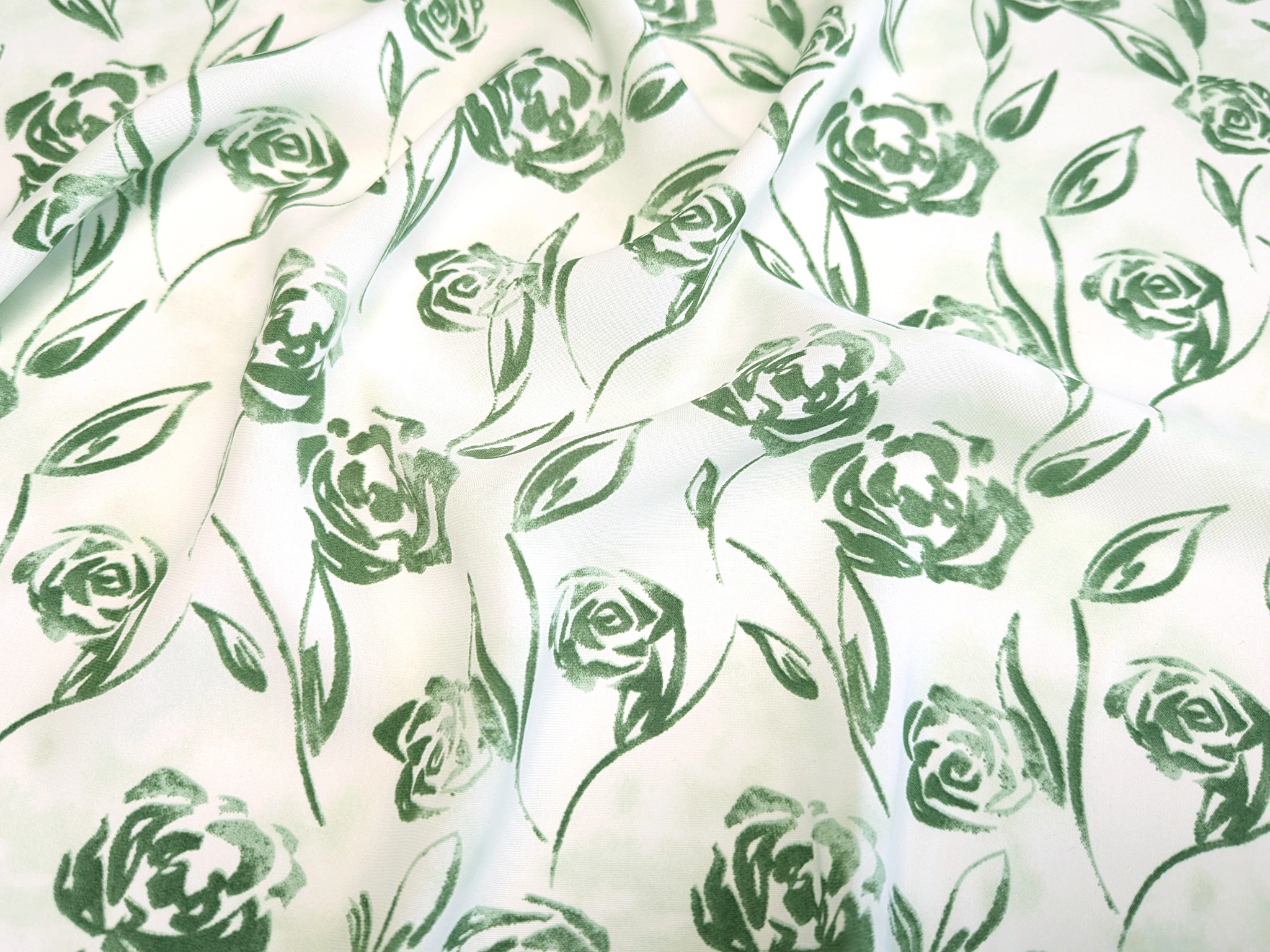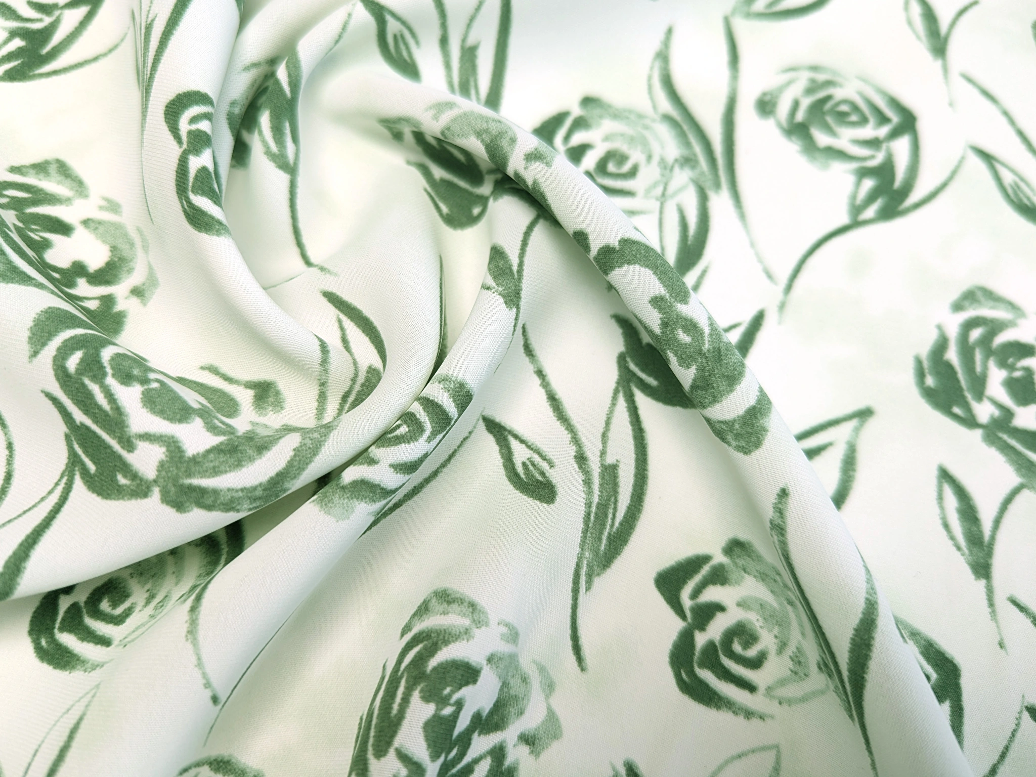 Шифон софт Грейс квітковий візерунок, олива