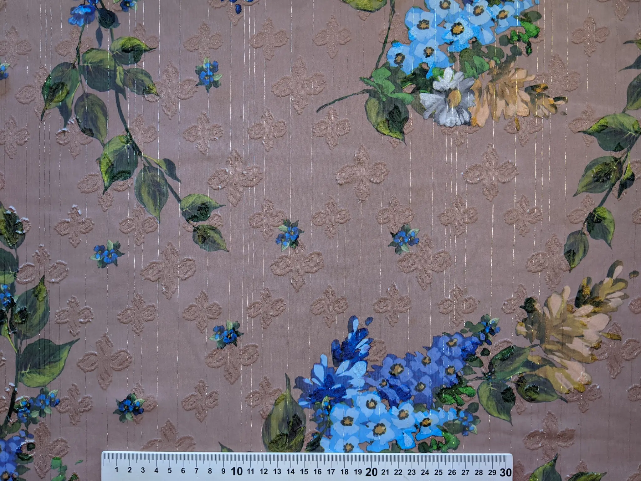Шифон жакард з люрексом яскраві квіти, синій на коричневому (відріз 2,5 м)