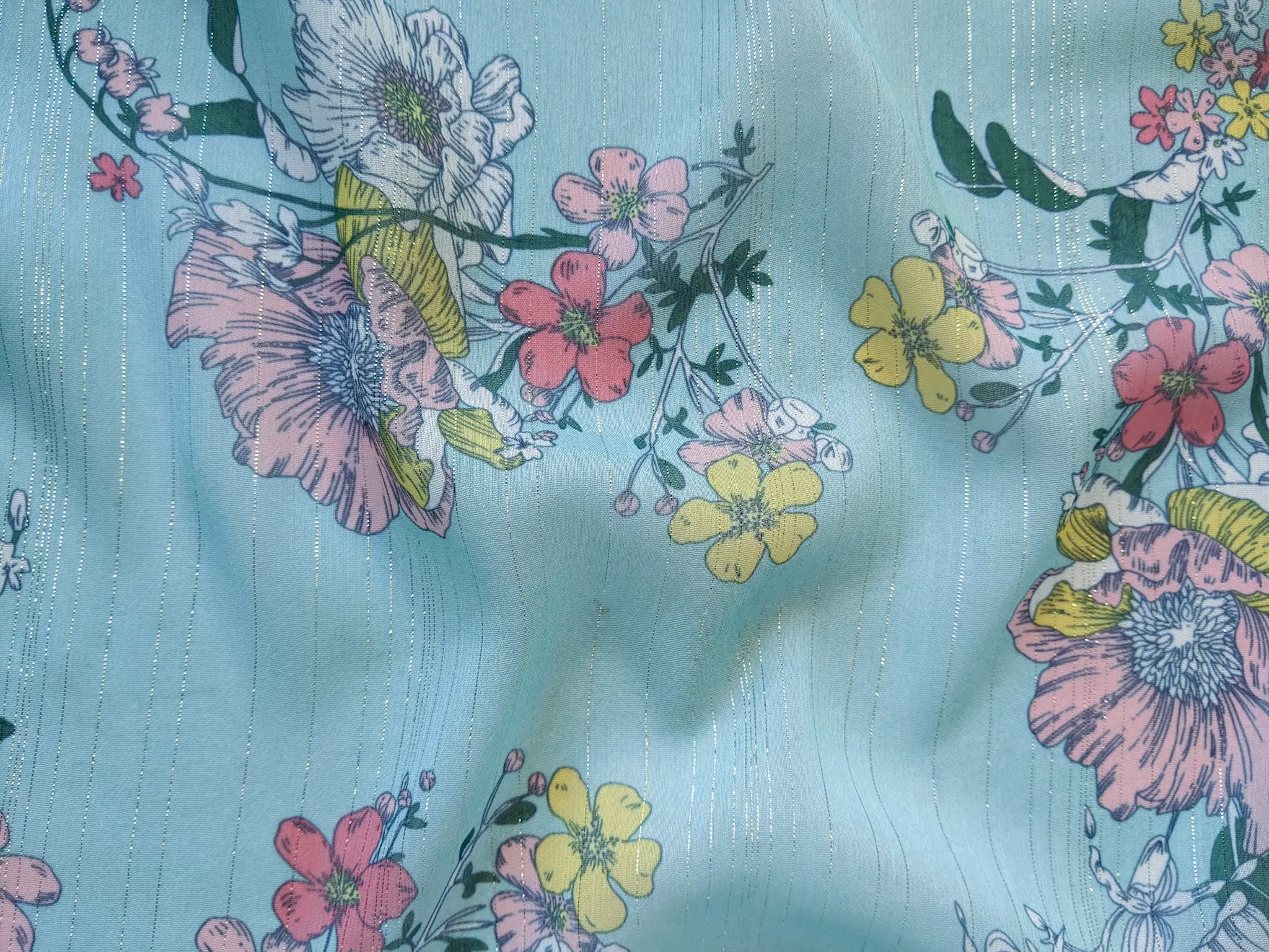 Шифон жакард з люрексовою ниткою травневий букет, рожевий на ментолі (відріз 2,8 м) (ш19, 1911068B, д2 цв2)