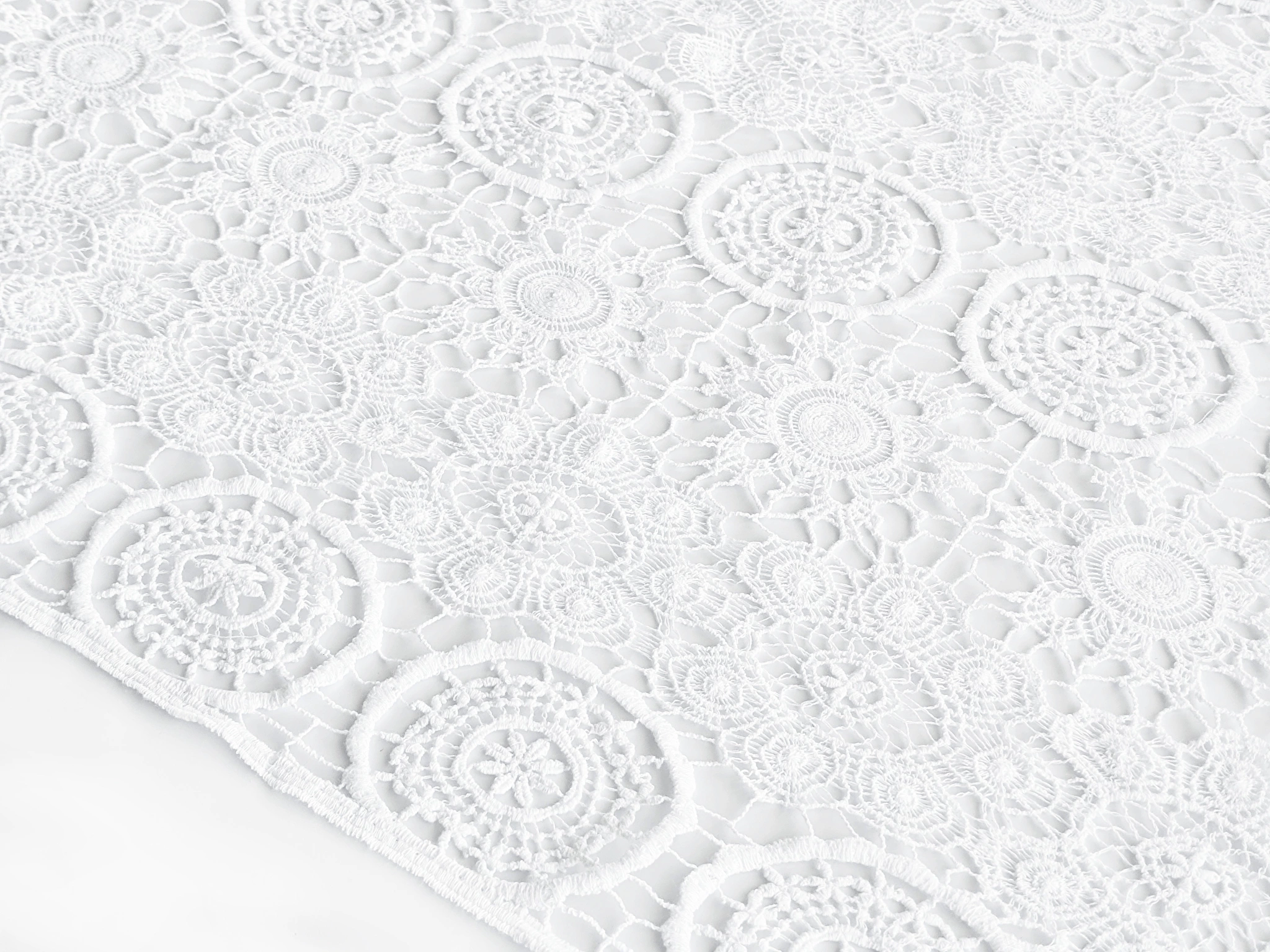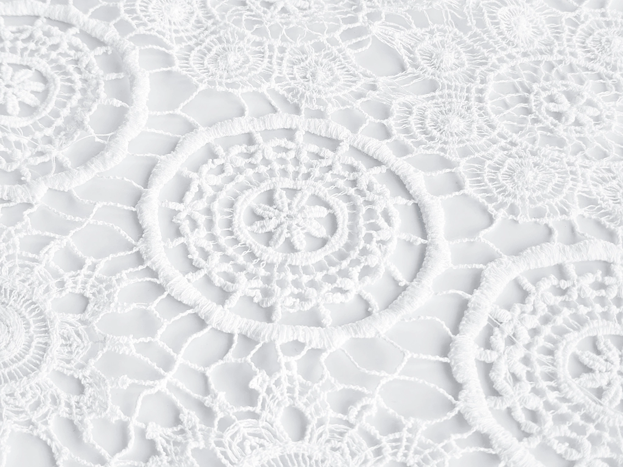 Структура тканини виконана у вигляді ажурного квіткового плетіння з ниток котону і поліестеру, за рахунок чого полотно приємне до тіла, але не втрачає форму, не витягується і не втрачає первинного вигляду.