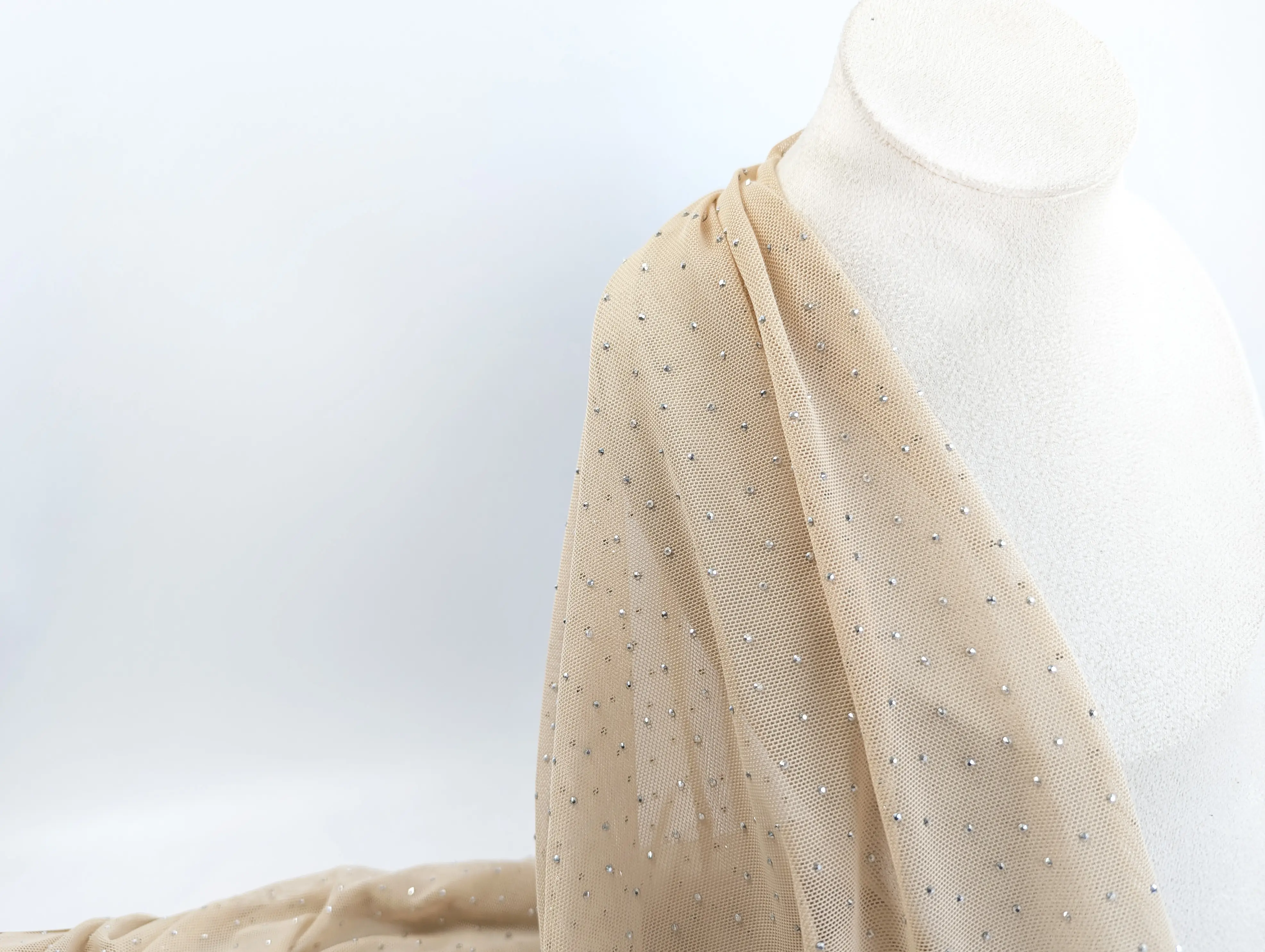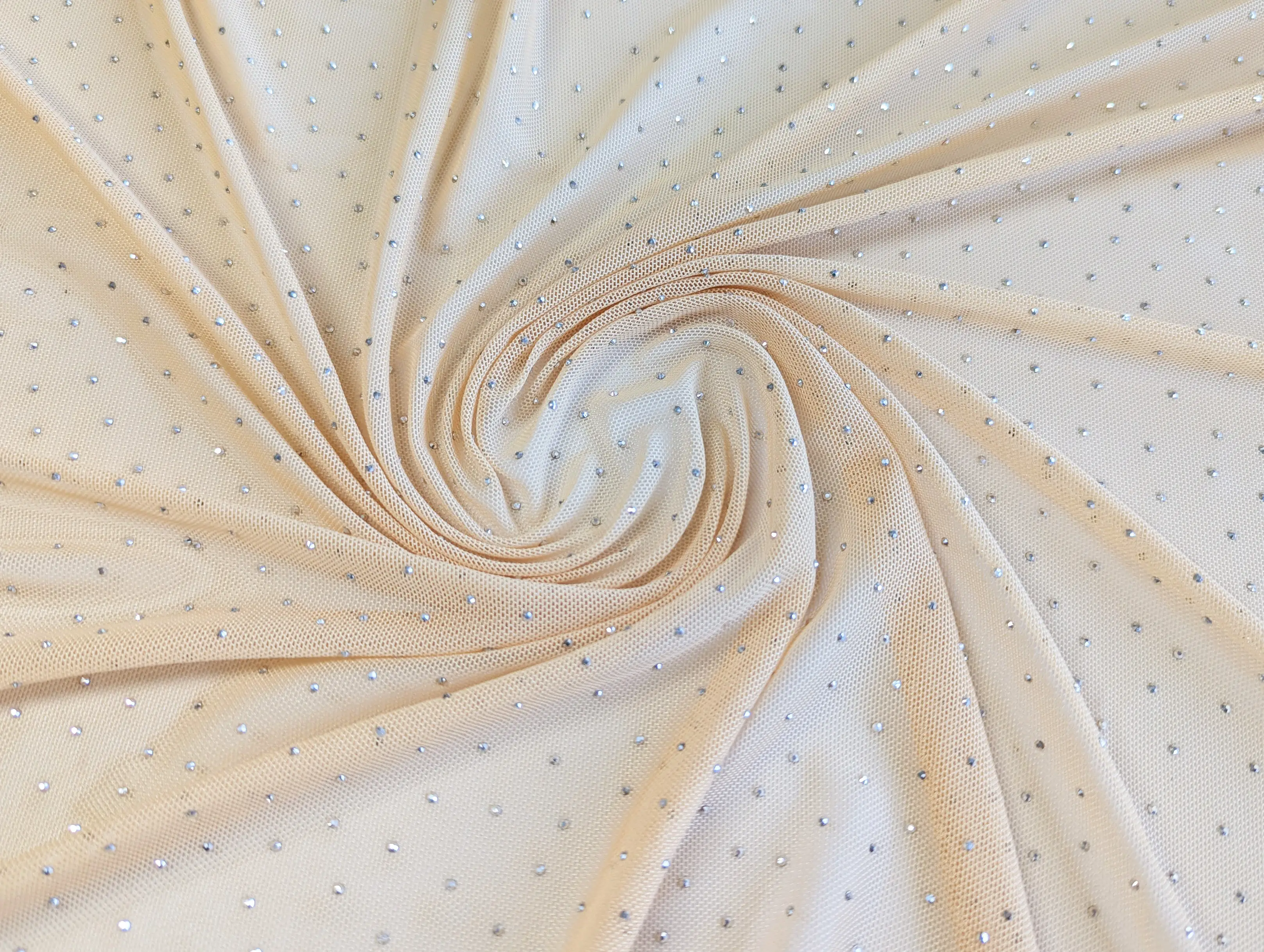 Сітка стрейч зі стразами бежево-персиковий (відріз 1,7 м)
