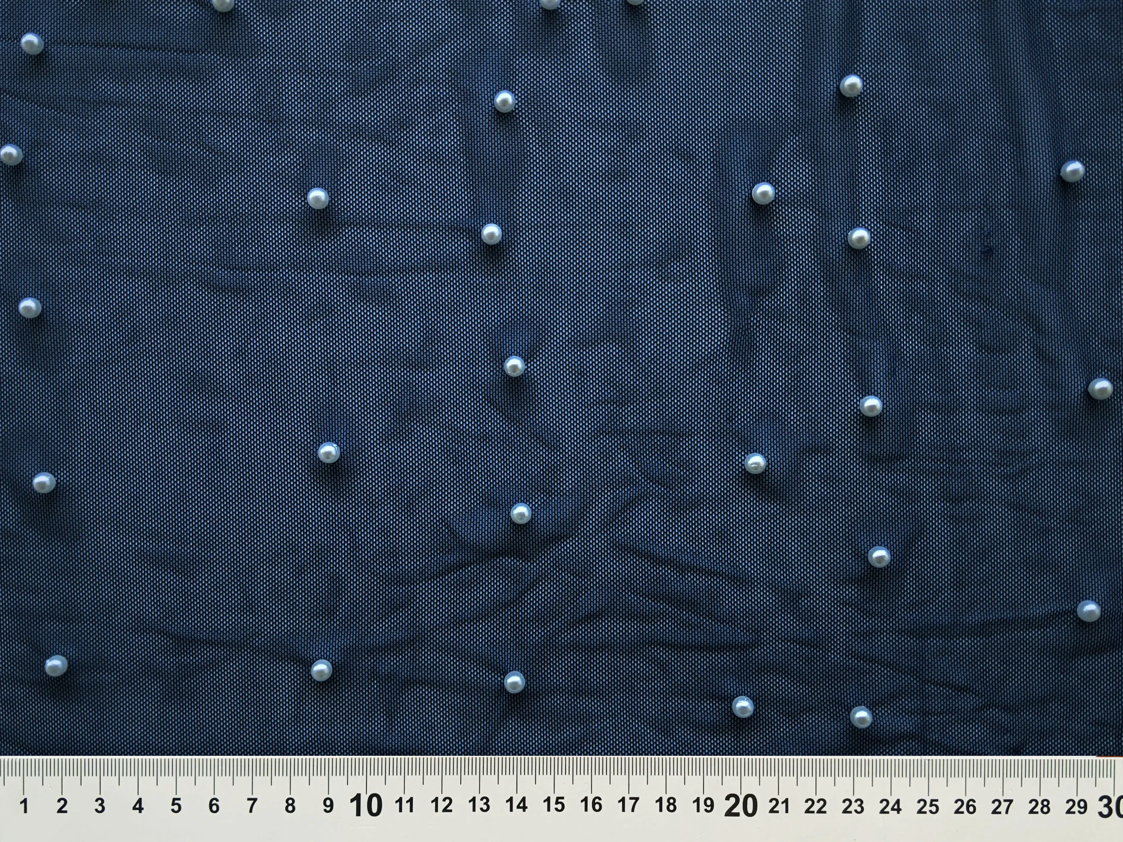 Сітка стрейчева з перлинами, темно-синій (відріз 2,6 м)