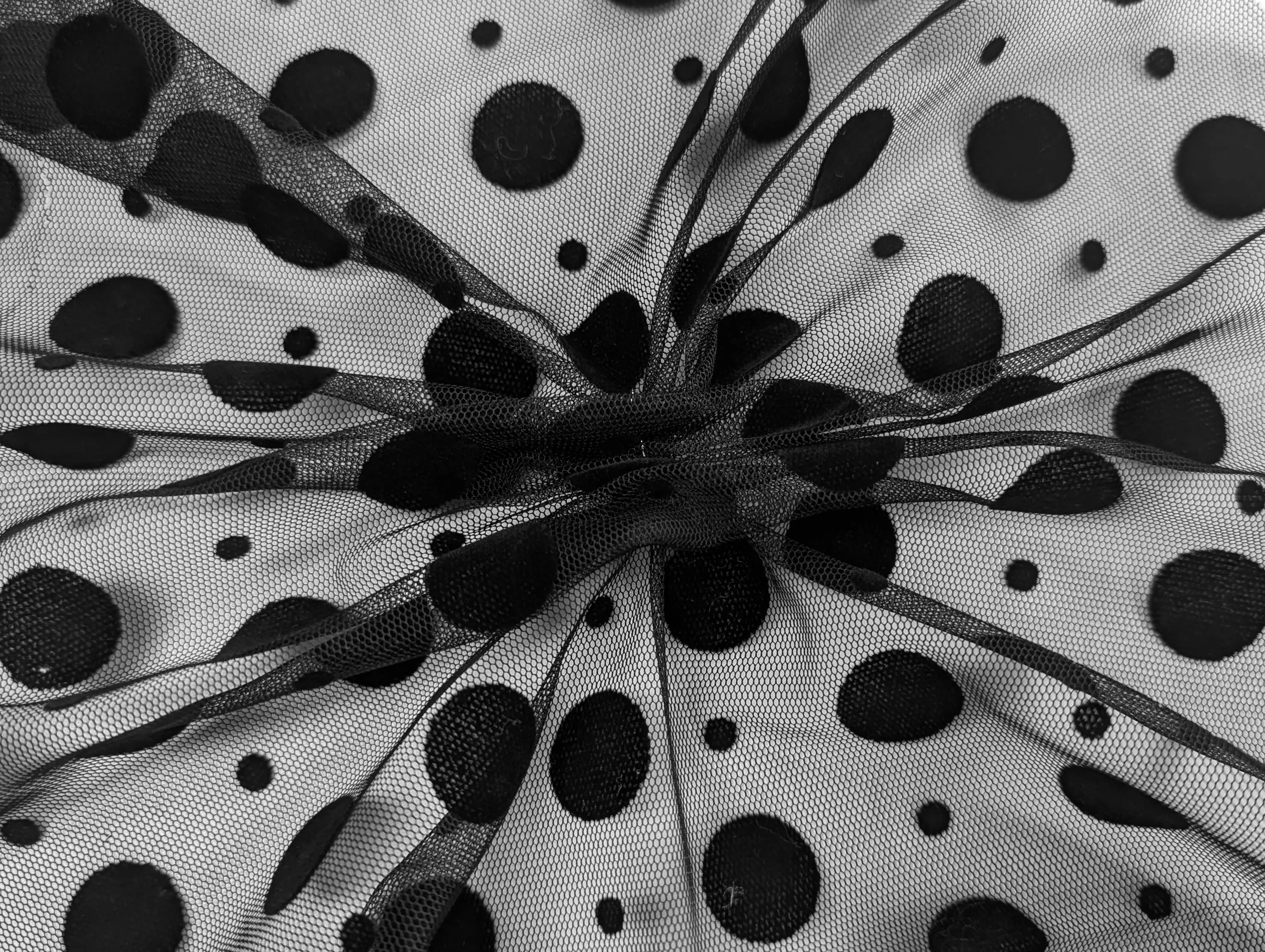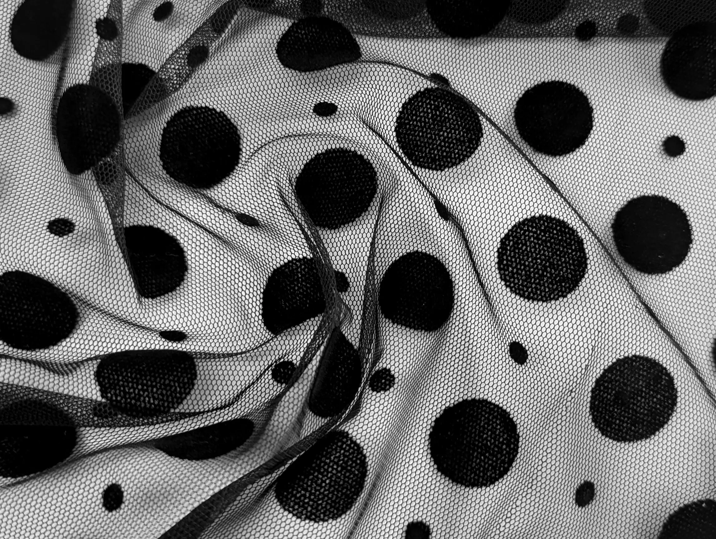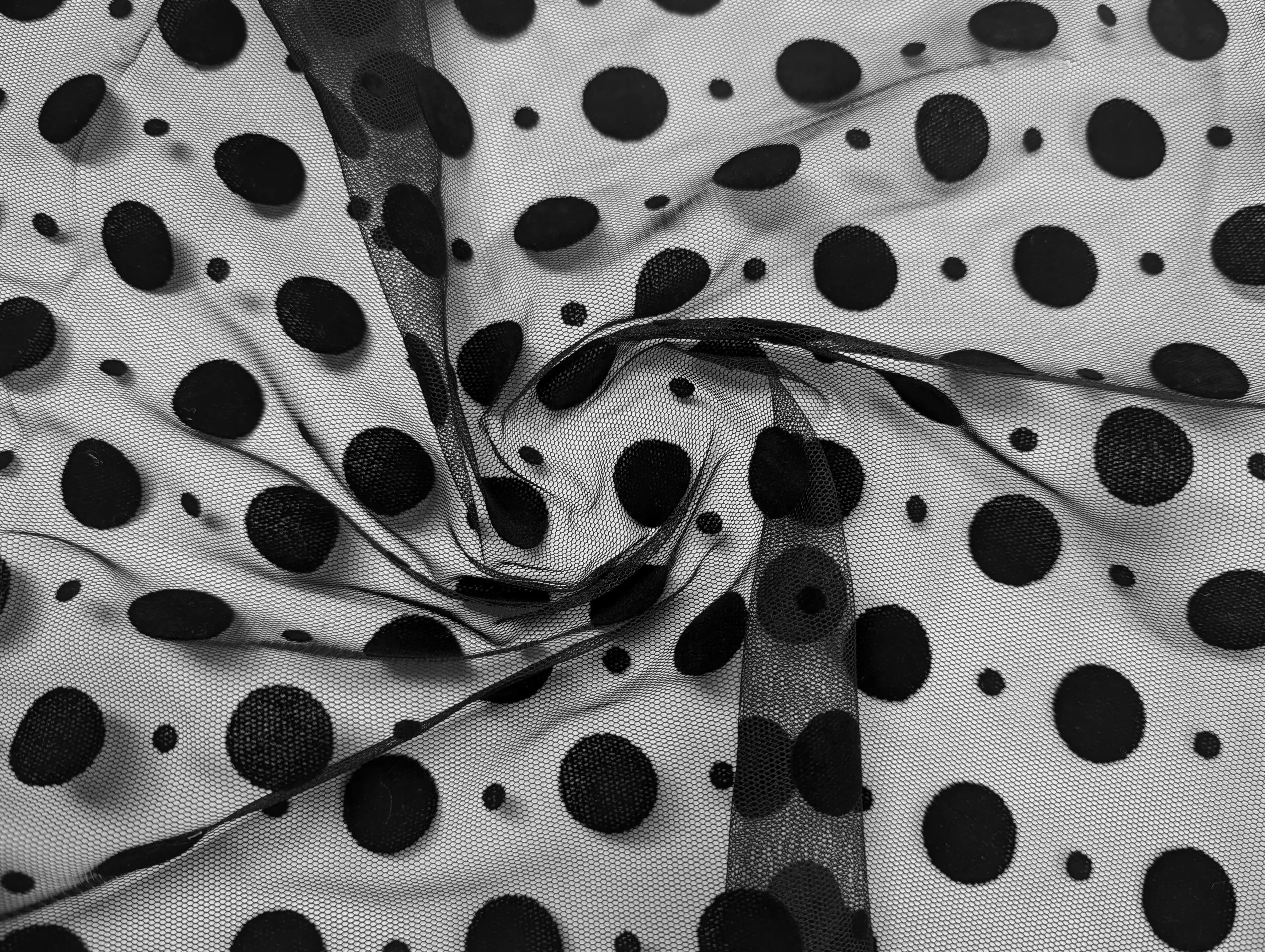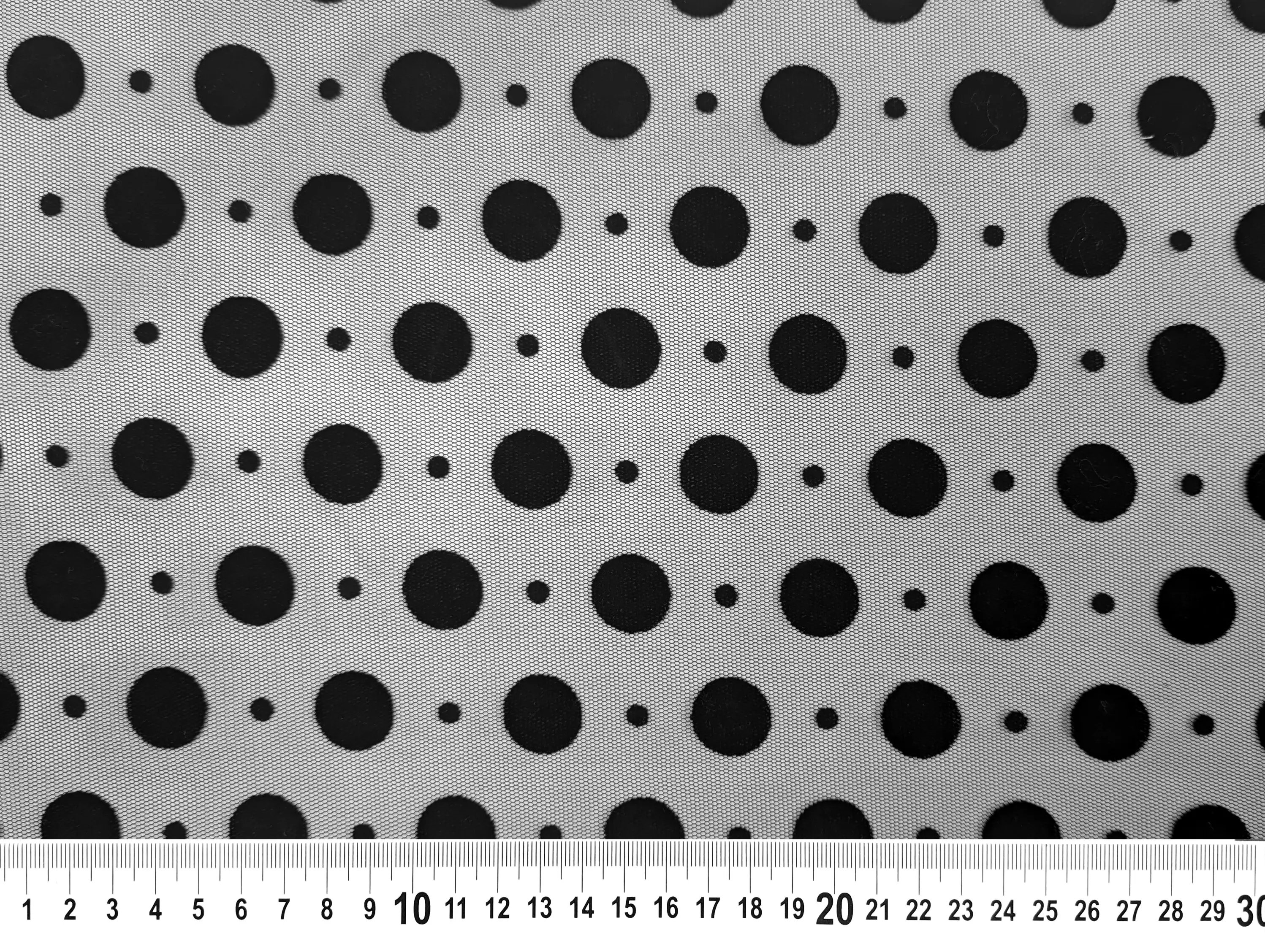 Сетка с флоком микс горошков, черный