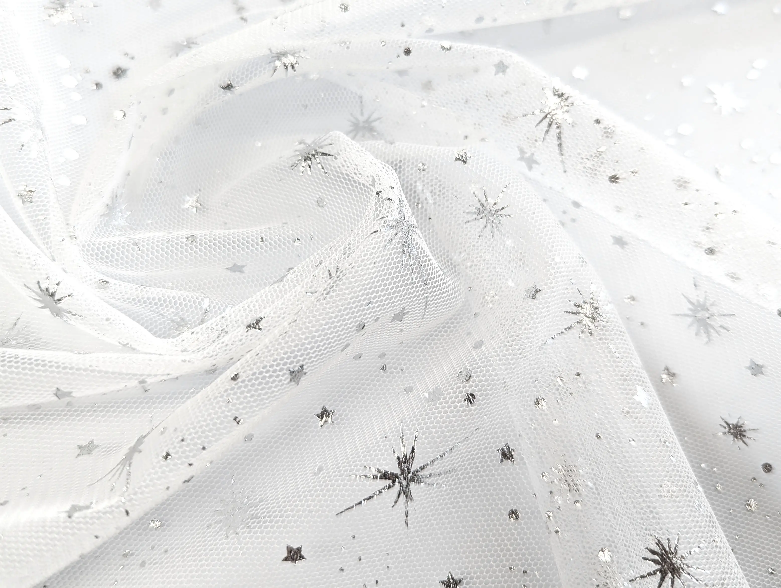 Сітка зоряна вуаль, срібло на білому