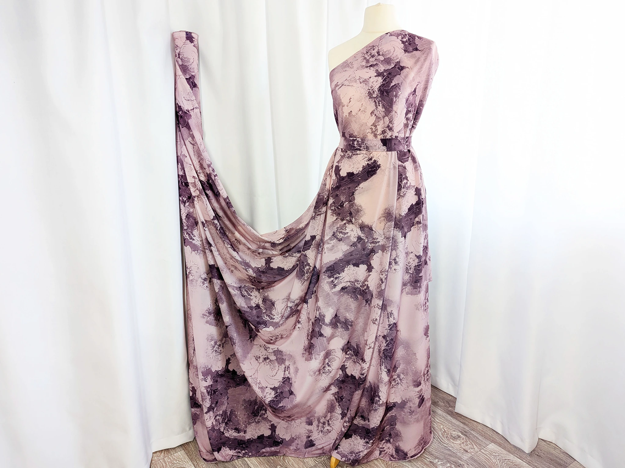 Софт принт – це гладке, легке і приємне на дотик полотно. У складі присутній спандекс, завдяки якому софт трохи тягнеться по одній стороні. Тканина злегка просвічуються на світлі, вона не примхлива у догляді, практично не мнеться. Полотно гарно драпірується.