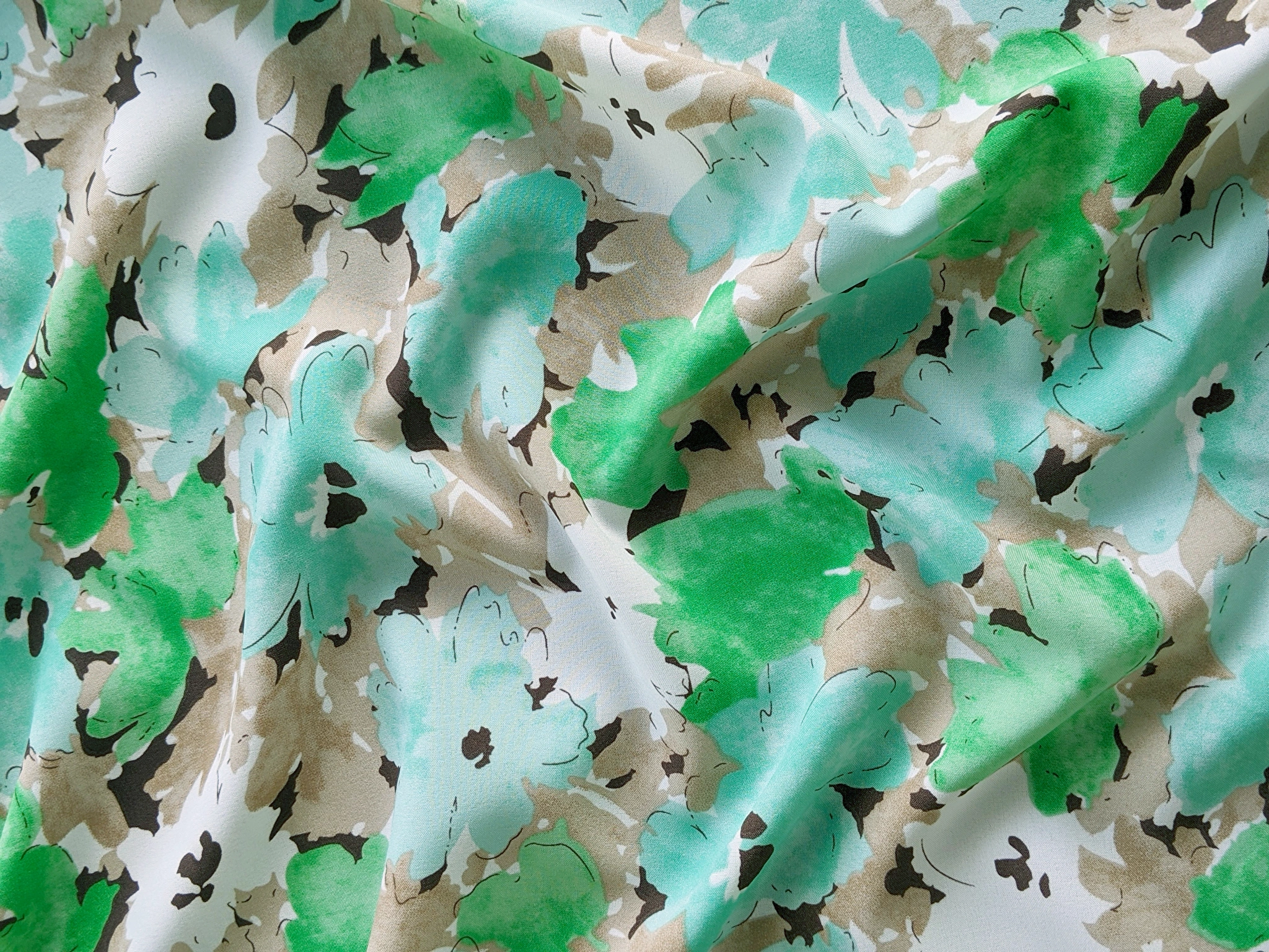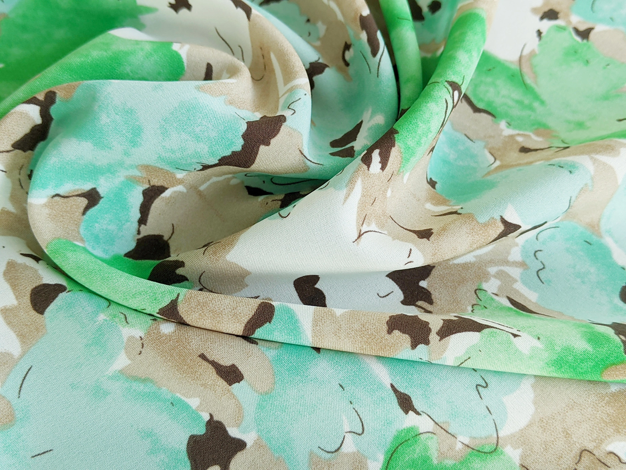 Софт принт – це гладке, легке і приємне на дотик полотно. У складі присутній спандекс, завдяки якому софт трохи тягнеться по одній стороні. Тканина злегка просвічуються на світлі, вона не примхлива у догляді, практично не мнеться. Полотно гарно драпірується.
