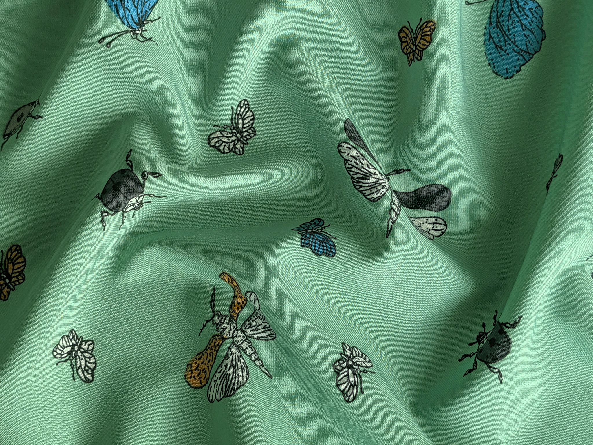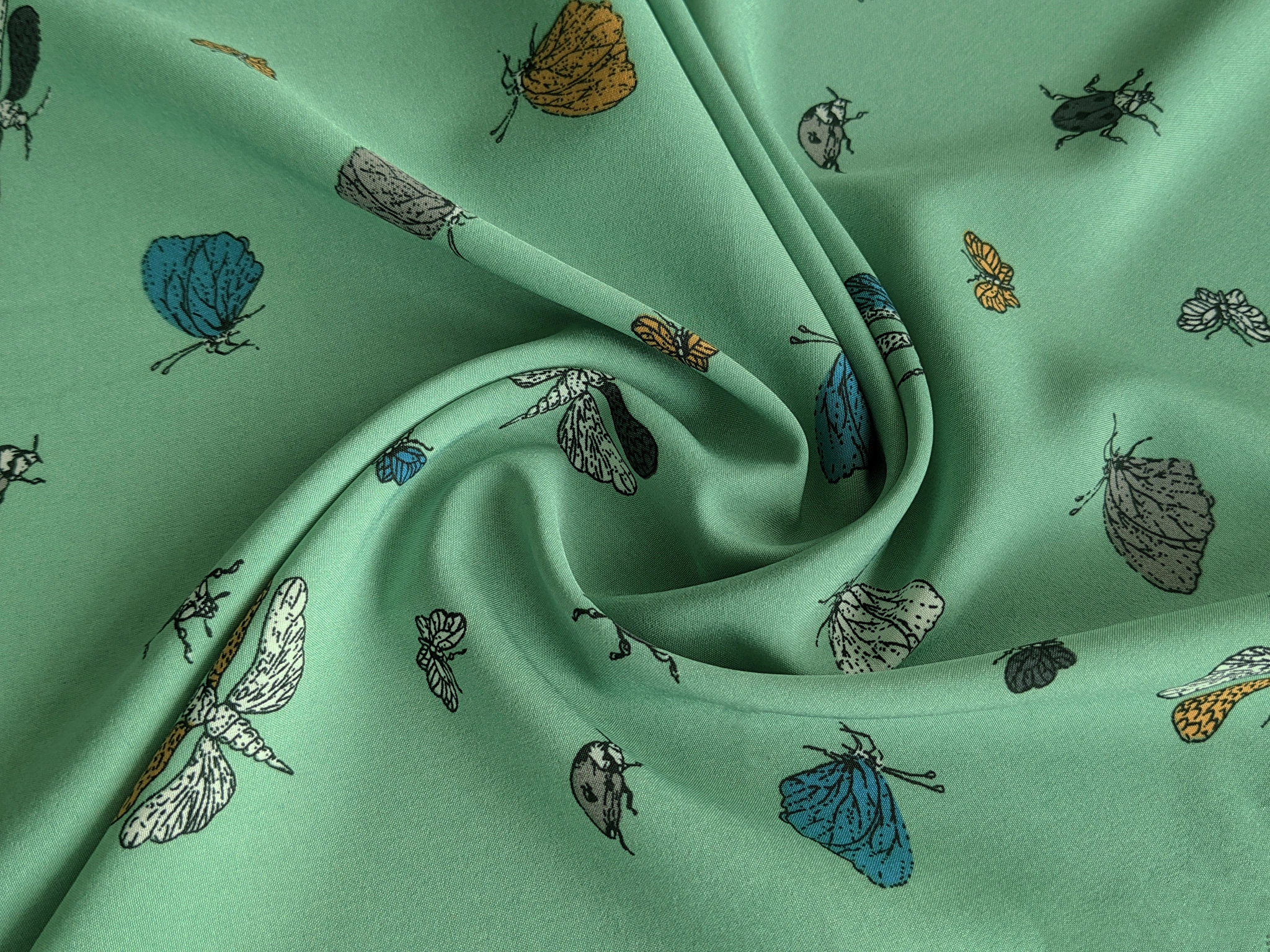 Софт принт – це гладке, легке і приємне на дотик полотно. У складі присутній спандекс, завдяки якому софт трохи тягнеться по одній стороні. Тканина злегка просвічуються на світлі, вона не примхлива у догляді, практично не мнеться. Полотно гарно драпірується.