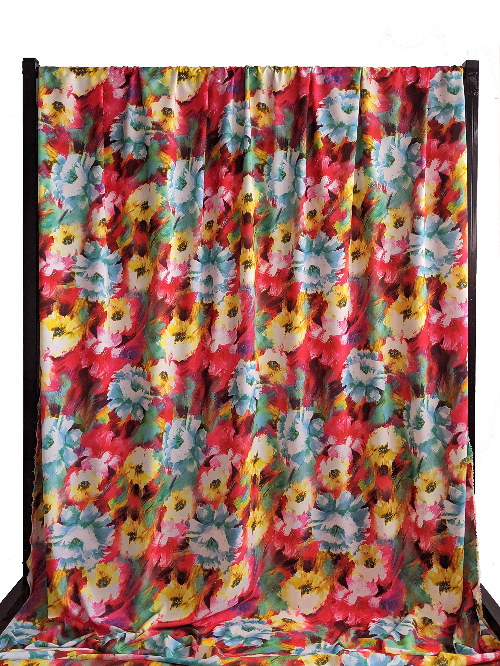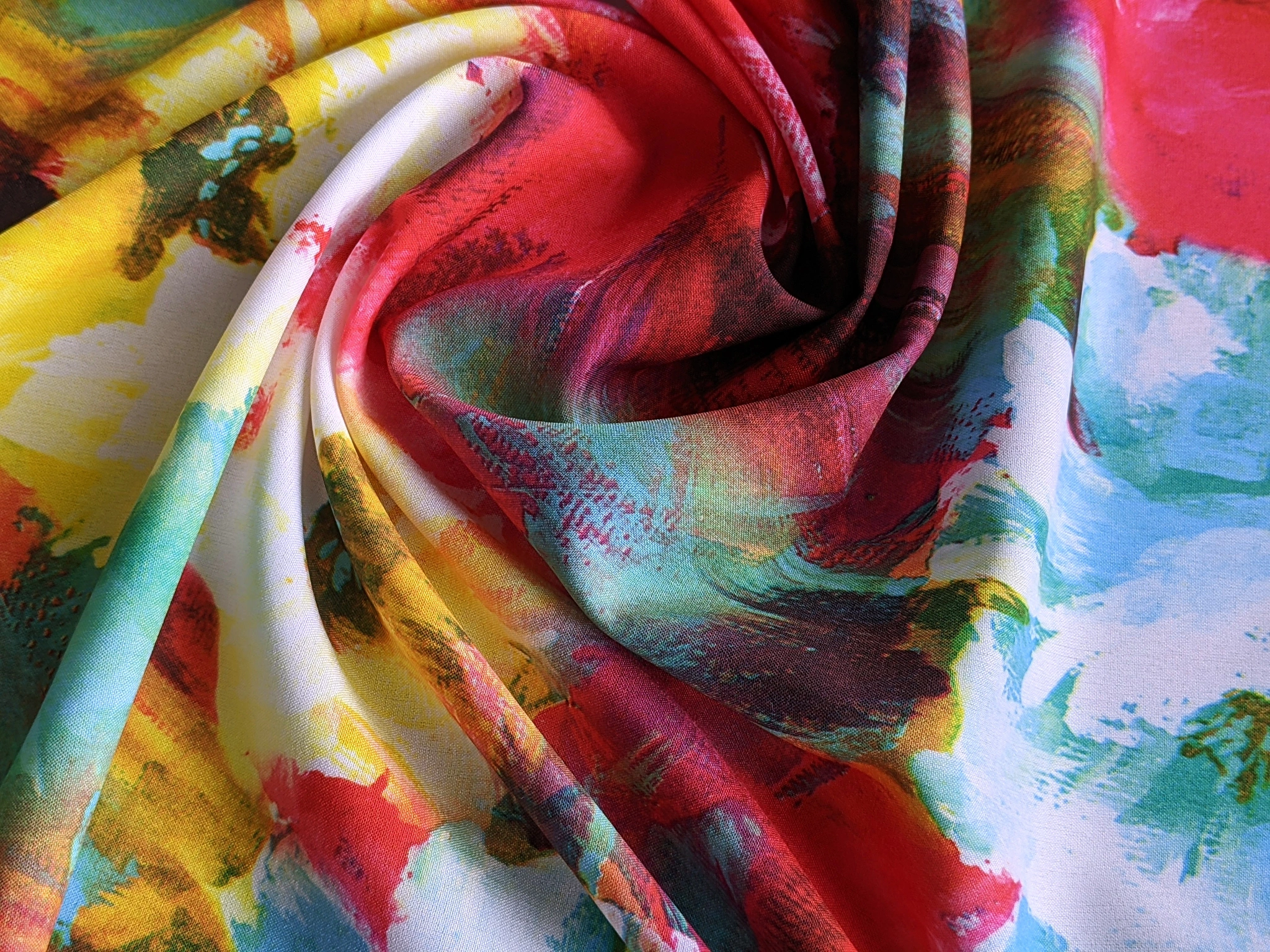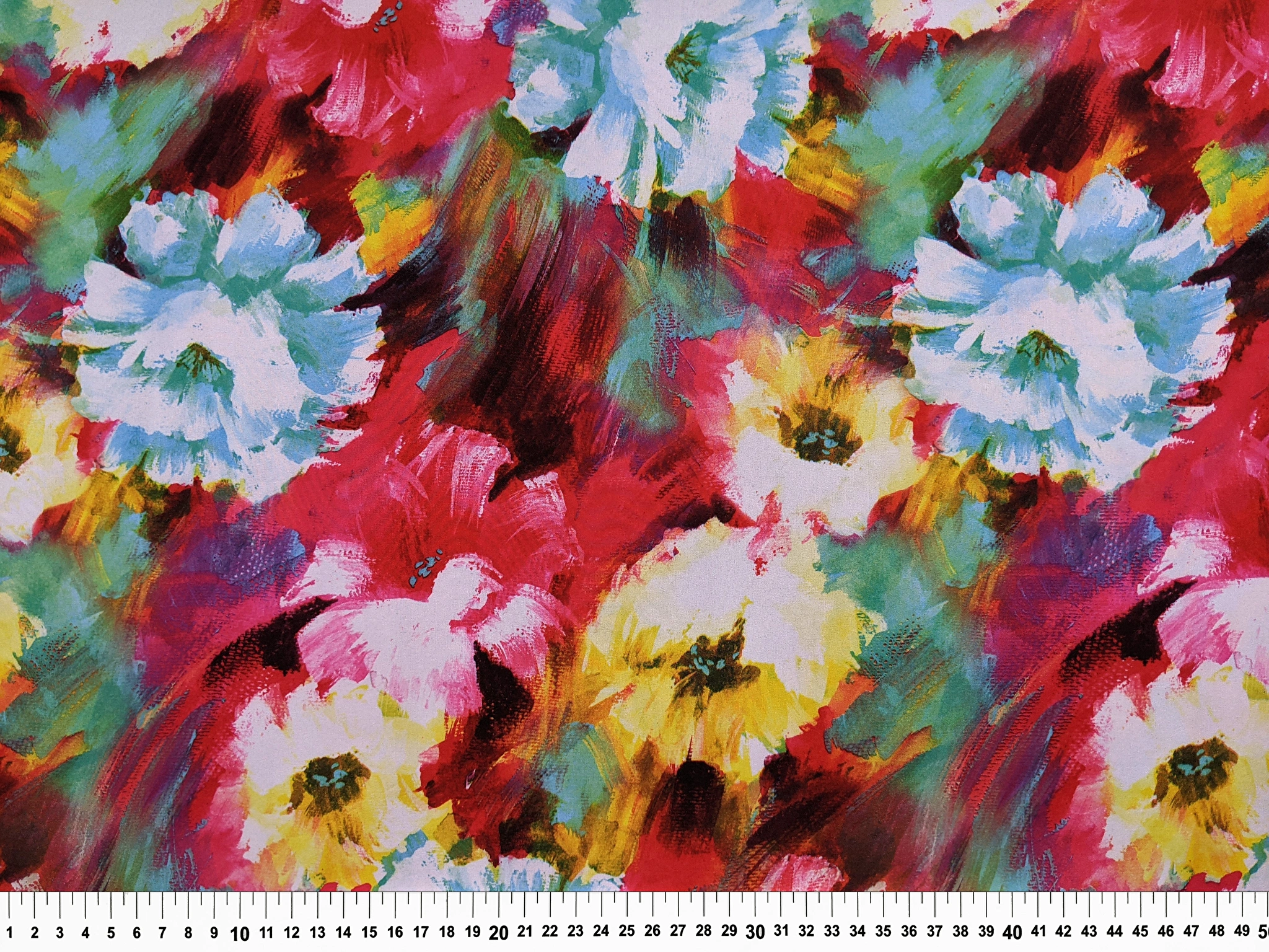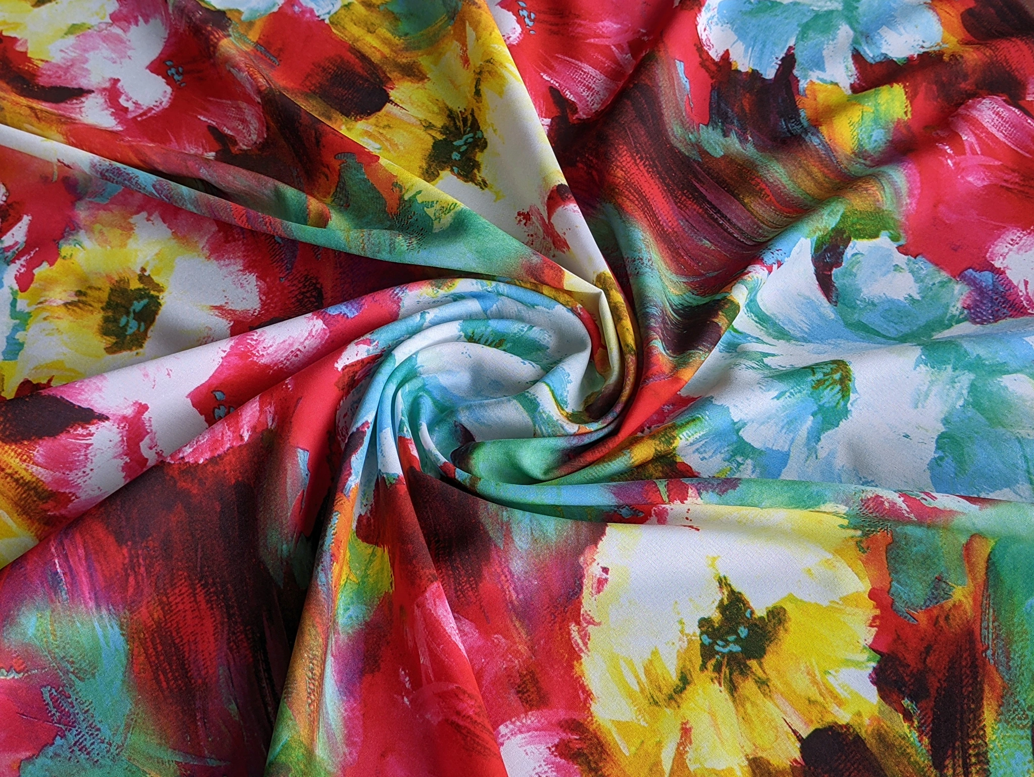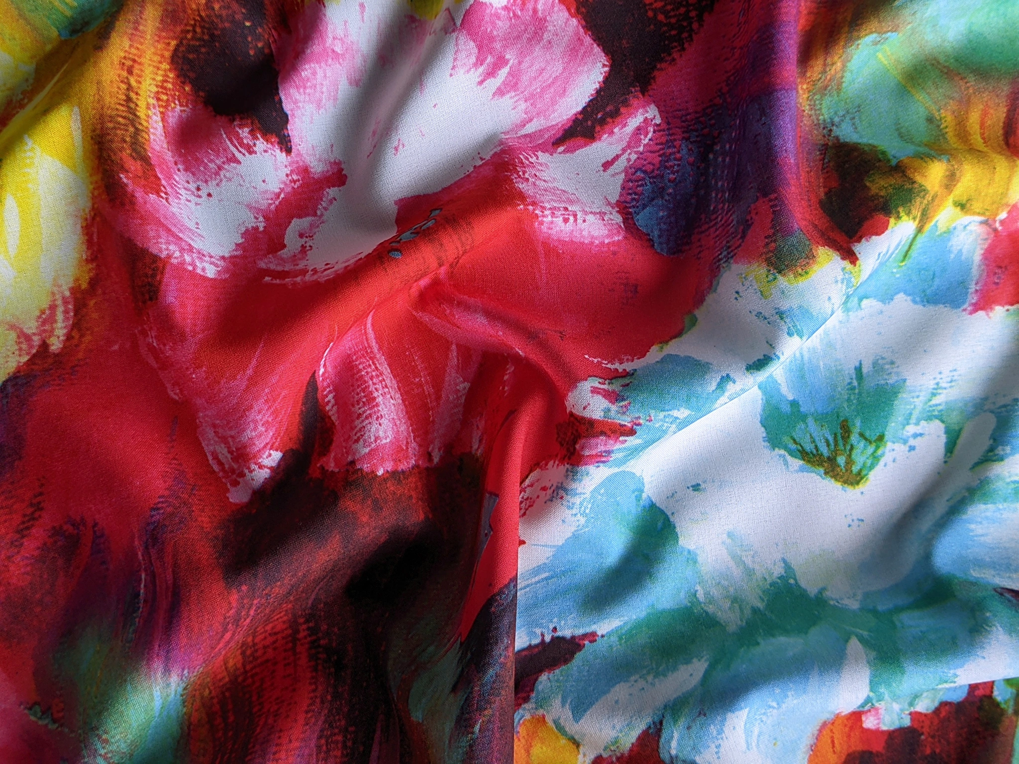 Софт принт квіткова акварель, червоний з блакитним