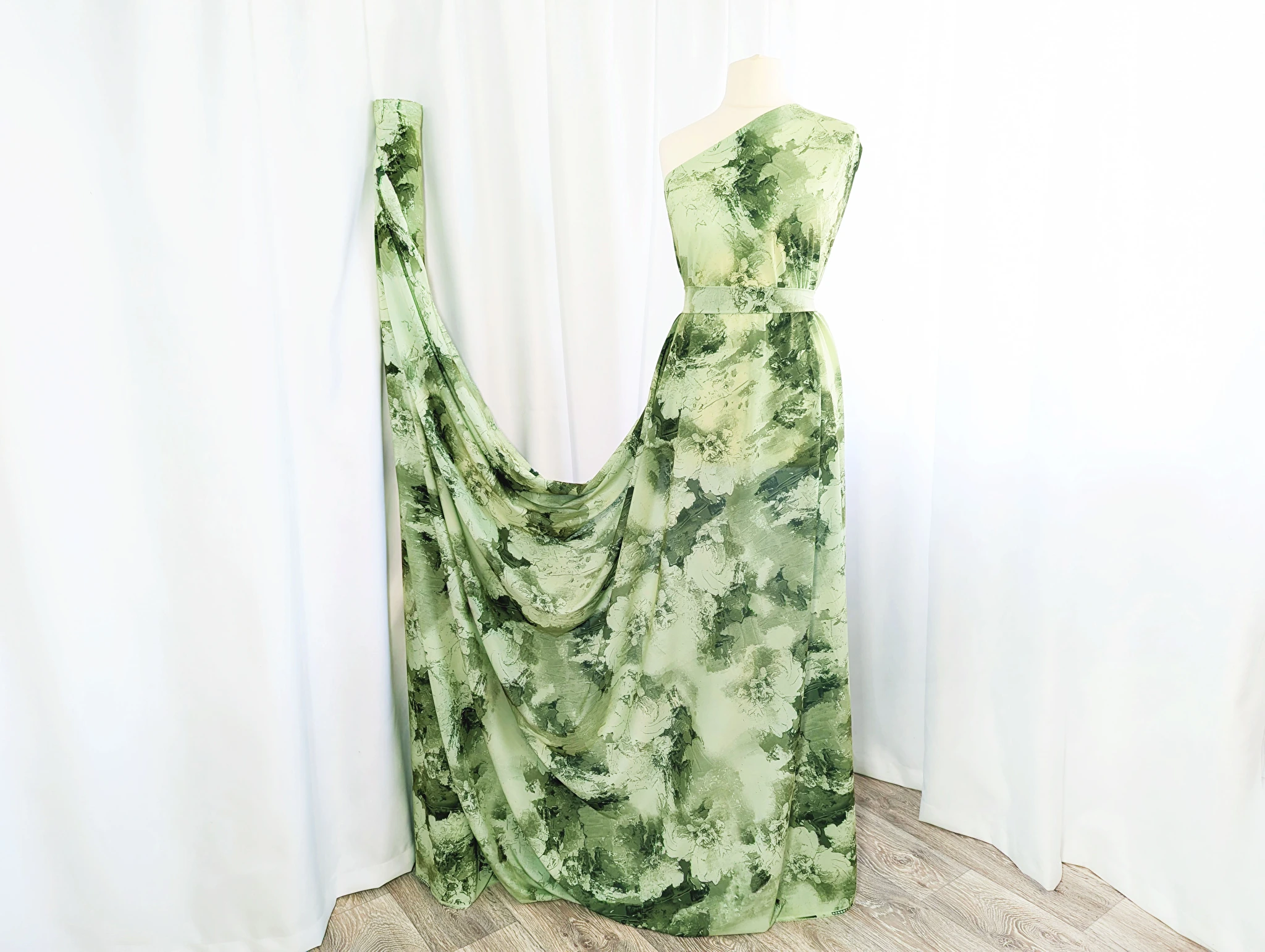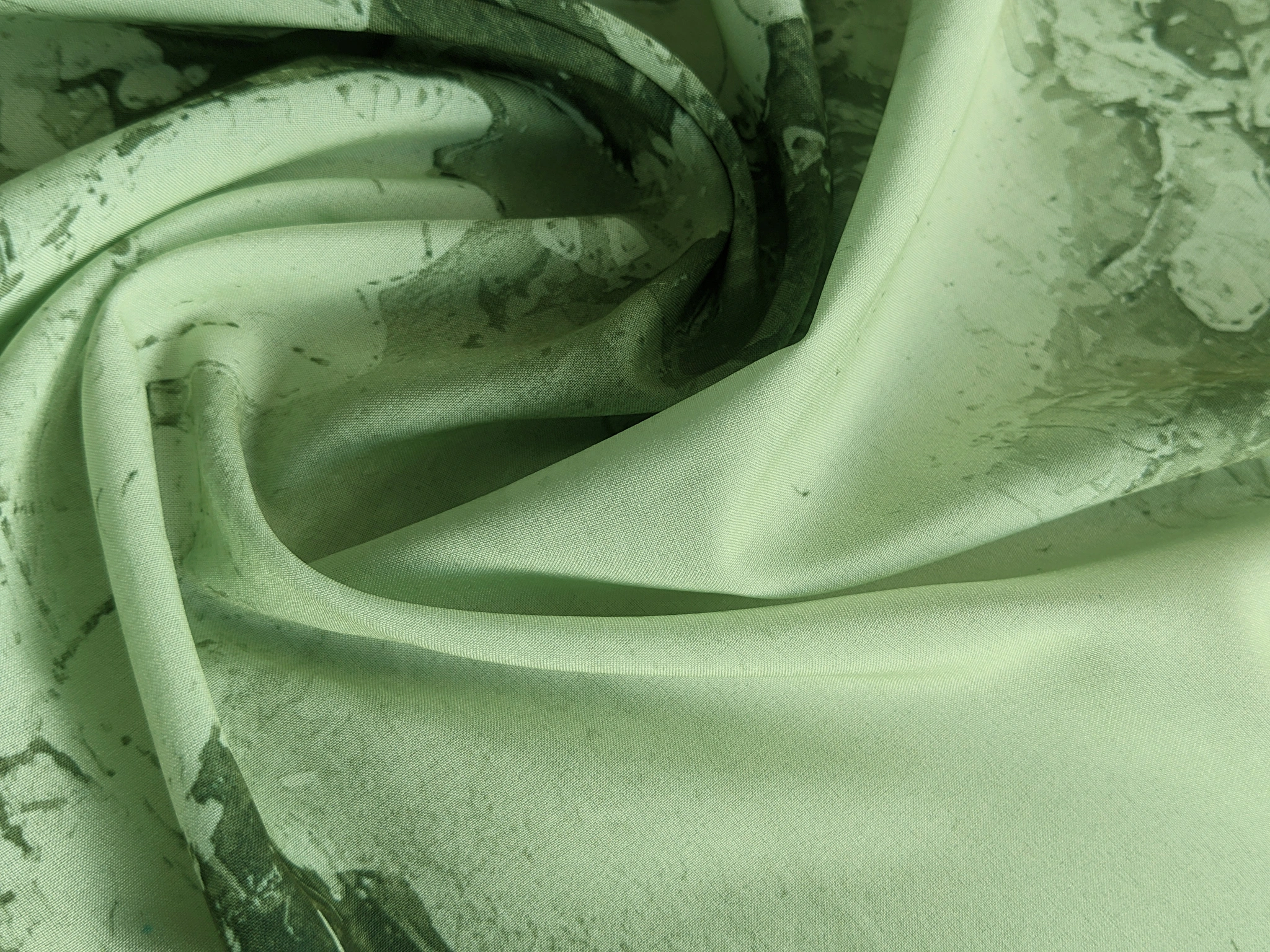 Софт принт – це гладке, легке і приємне на дотик полотно. У складі присутній спандекс, завдяки якому софт трохи тягнеться по одній стороні. Тканина злегка просвічуються на світлі, вона не примхлива у догляді, практично не мнеться. Полотно гарно драпірується.