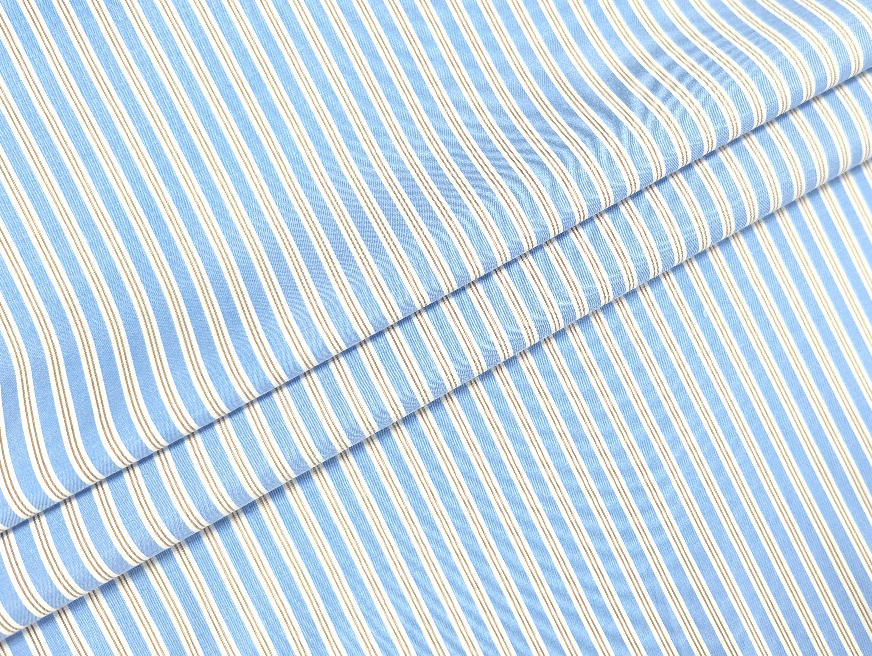 Сорочковий поплін смужка 9 мм, голубий з коричневим (відріз 2,8 м) (п68, 2505099B, к4)