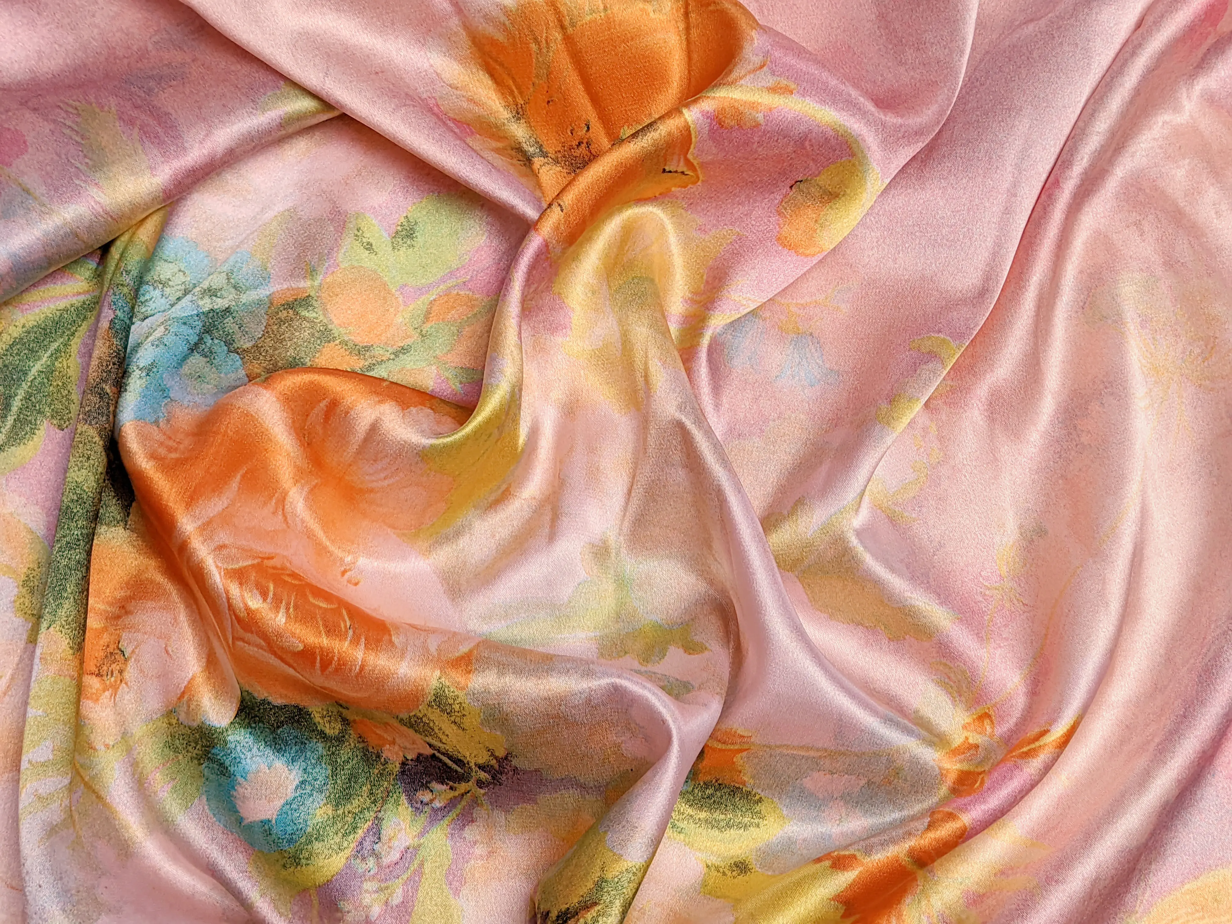 Стрейчеве атласне полотно з великим малюнком підійде для пошиття одягу для дому та в якості підкладки для верхнього одягу.