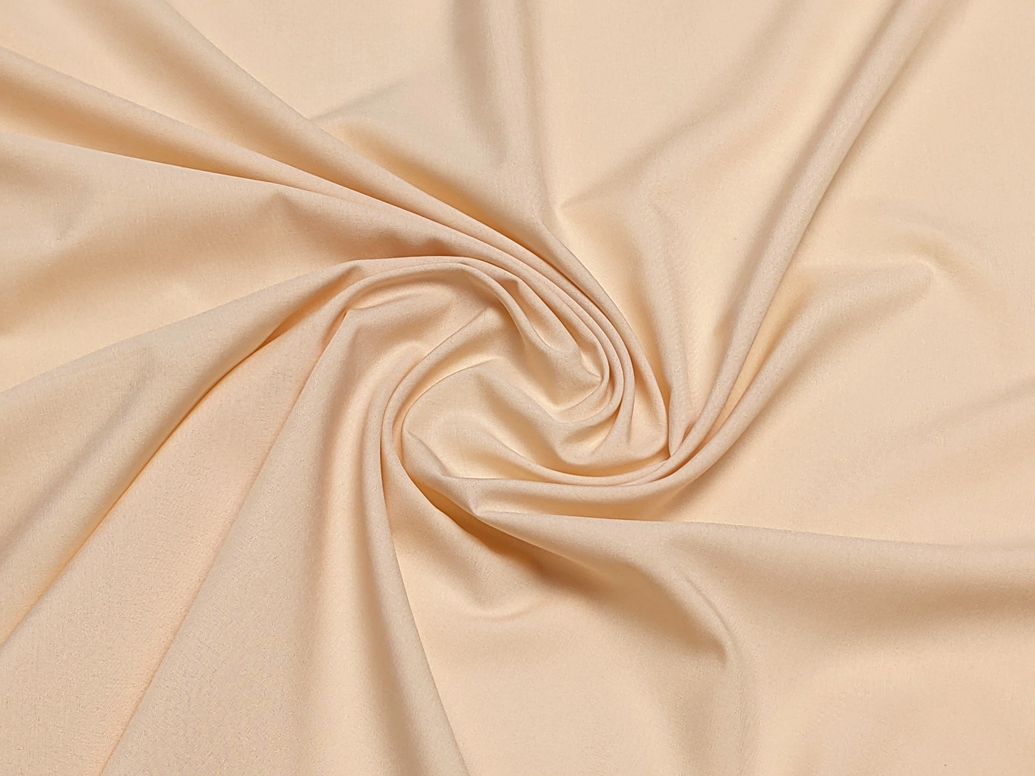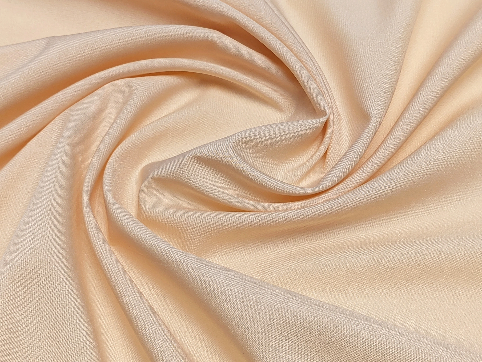 Однотонна віскоза софт легка, приємна до тіла, легко розгладжується, майже не мнеться. Структура тканини гладка, щільна. Світлі тони злегка просвічуються на світлі. Трохи тягнеться по одній стороні. Полотно гарно драпірується. Застосовується при пошитті блуз і літніх суконь.