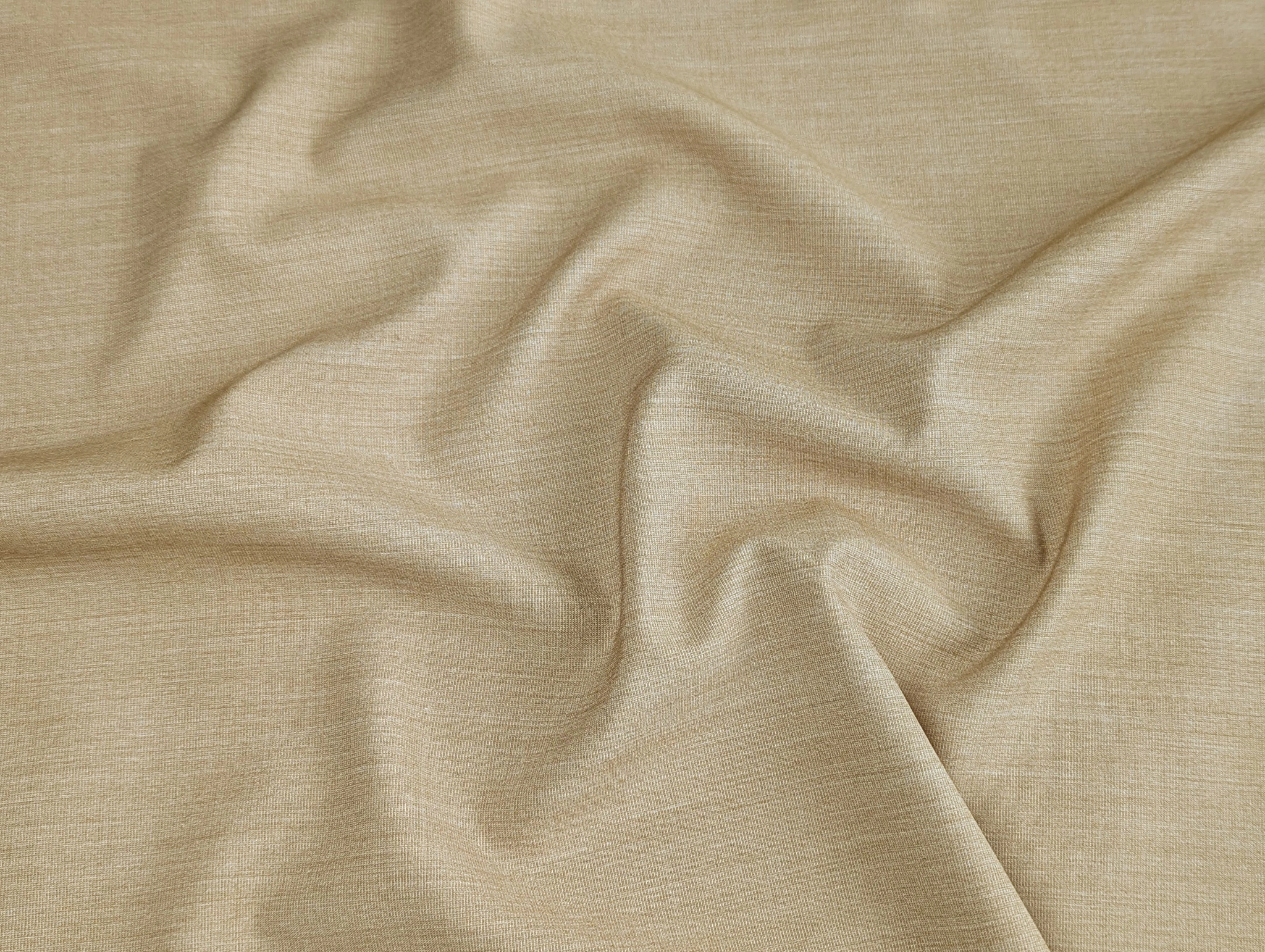 Тканина легка, трішки ковзна, але міцна і практична. Має поздовжню і поперечну розтяжність, не сковує рухів, злегка мнеться, добре драпірується, утворюючи м'які складки.