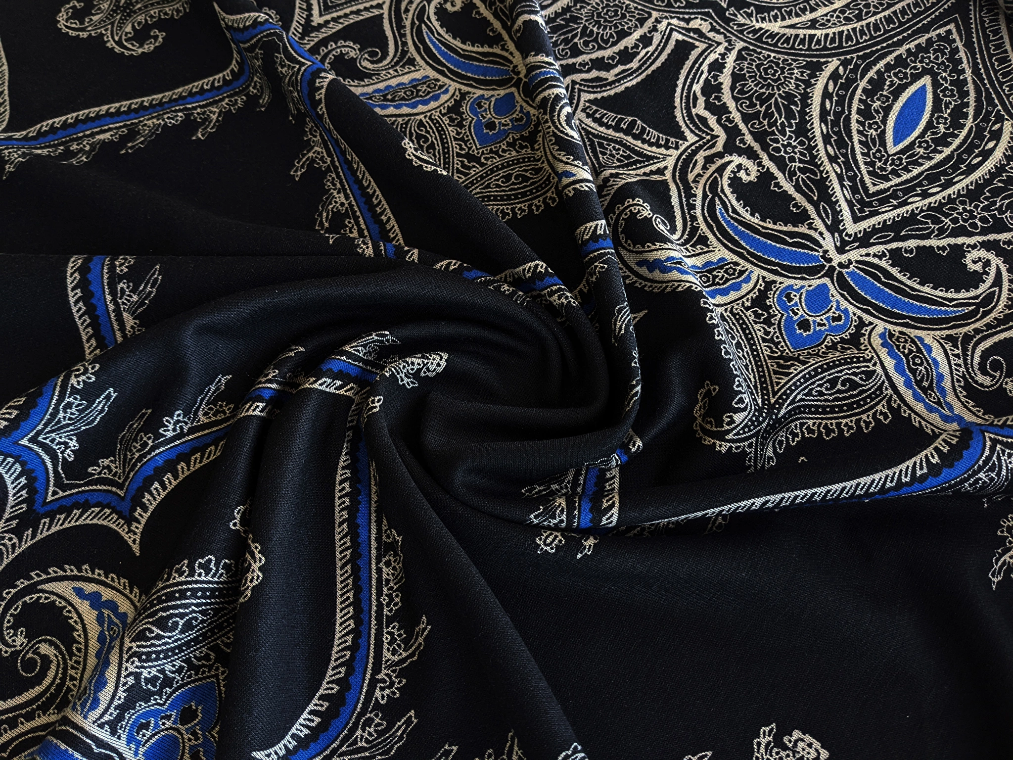 Трикотаж Амелія - це двосторонній трикотаж з віскозою, м'який і приємний на дотик, виворіт якого чорний, а на лицьовій стороні нанесений малюнок.