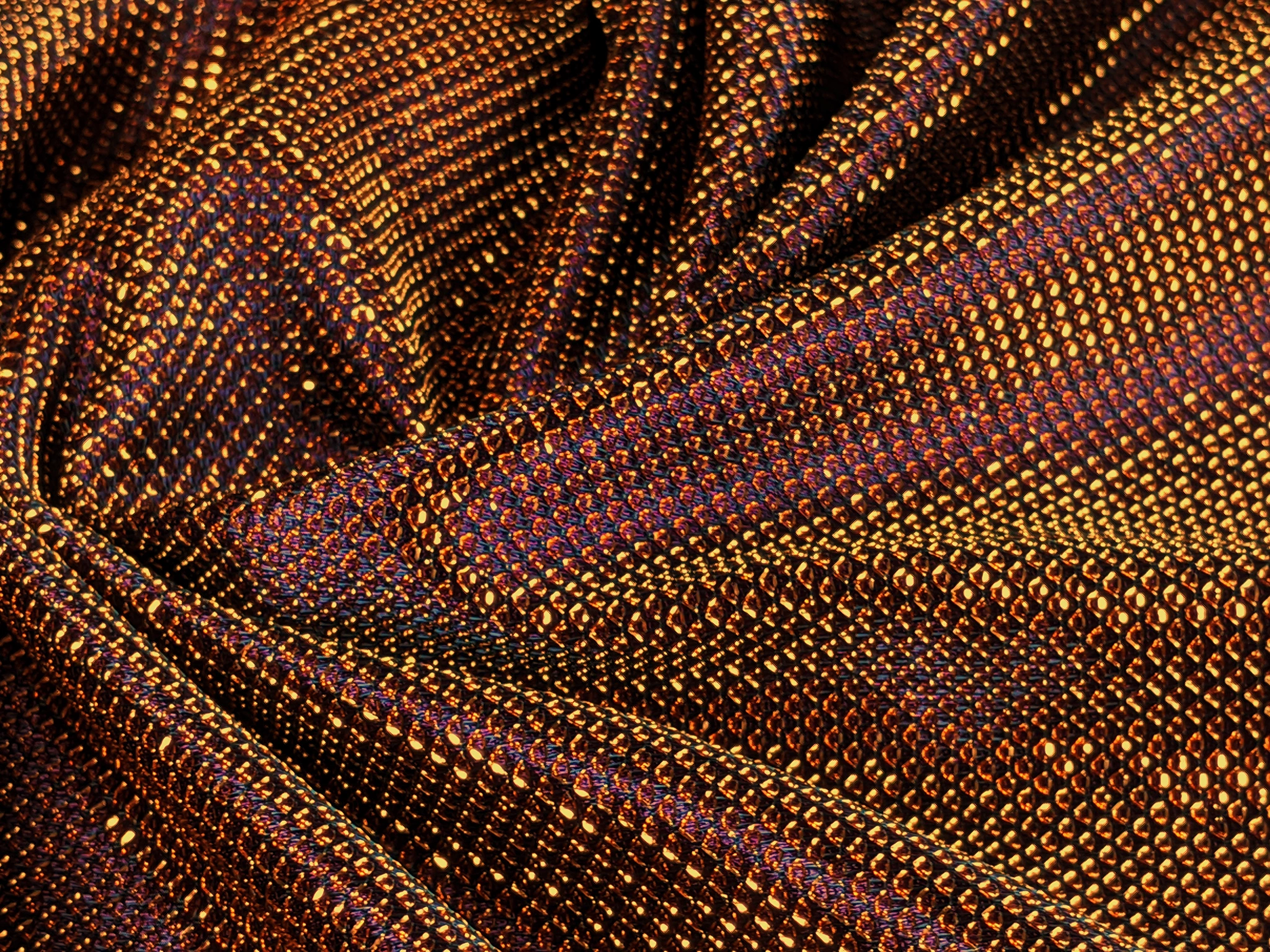 Тканина диско має структуру луски з гарним блиском, що грає під різним кутом. Виворіт тканини - приємний на дотик, гладкий трикотаж з атласним ефектом.