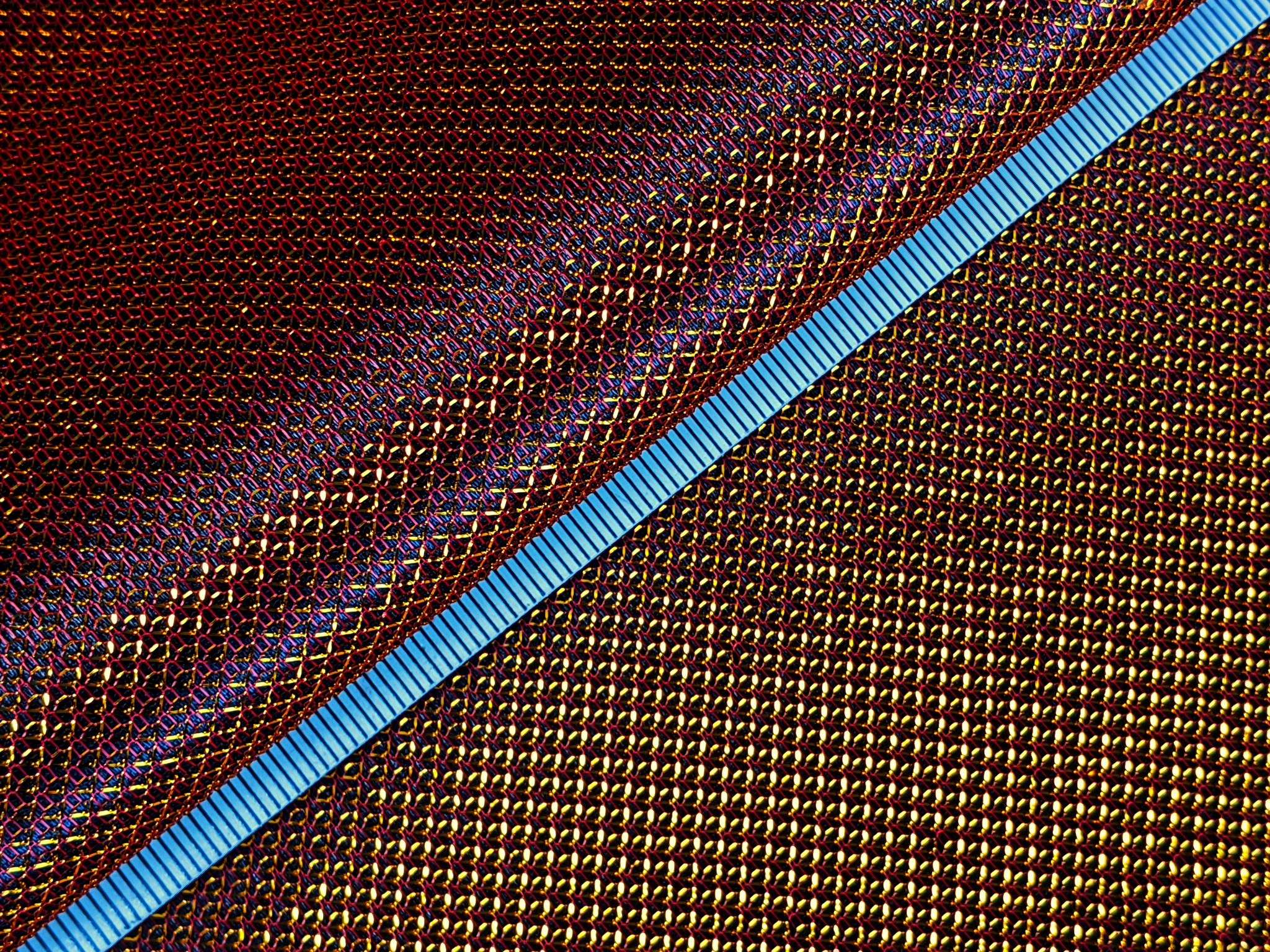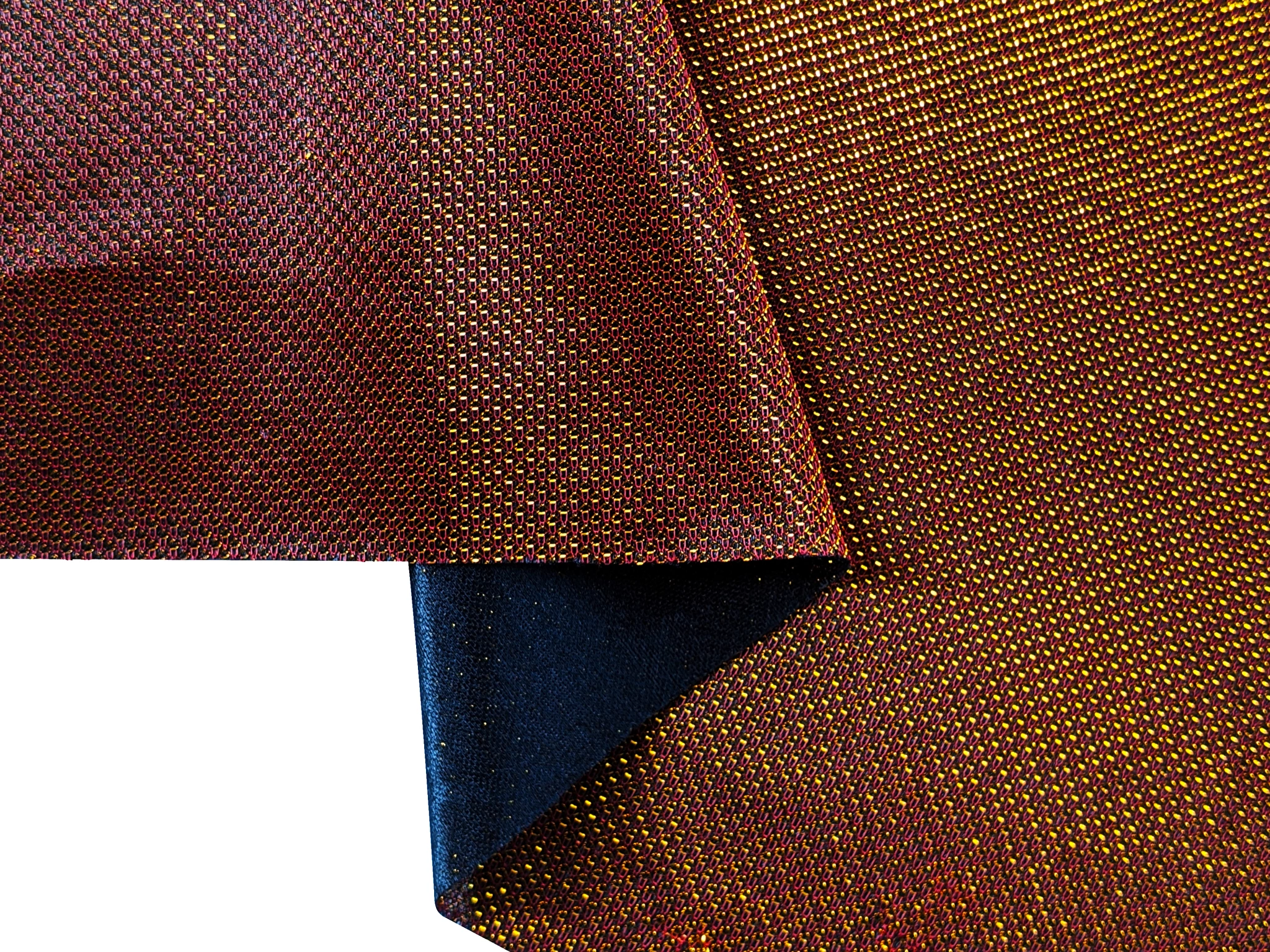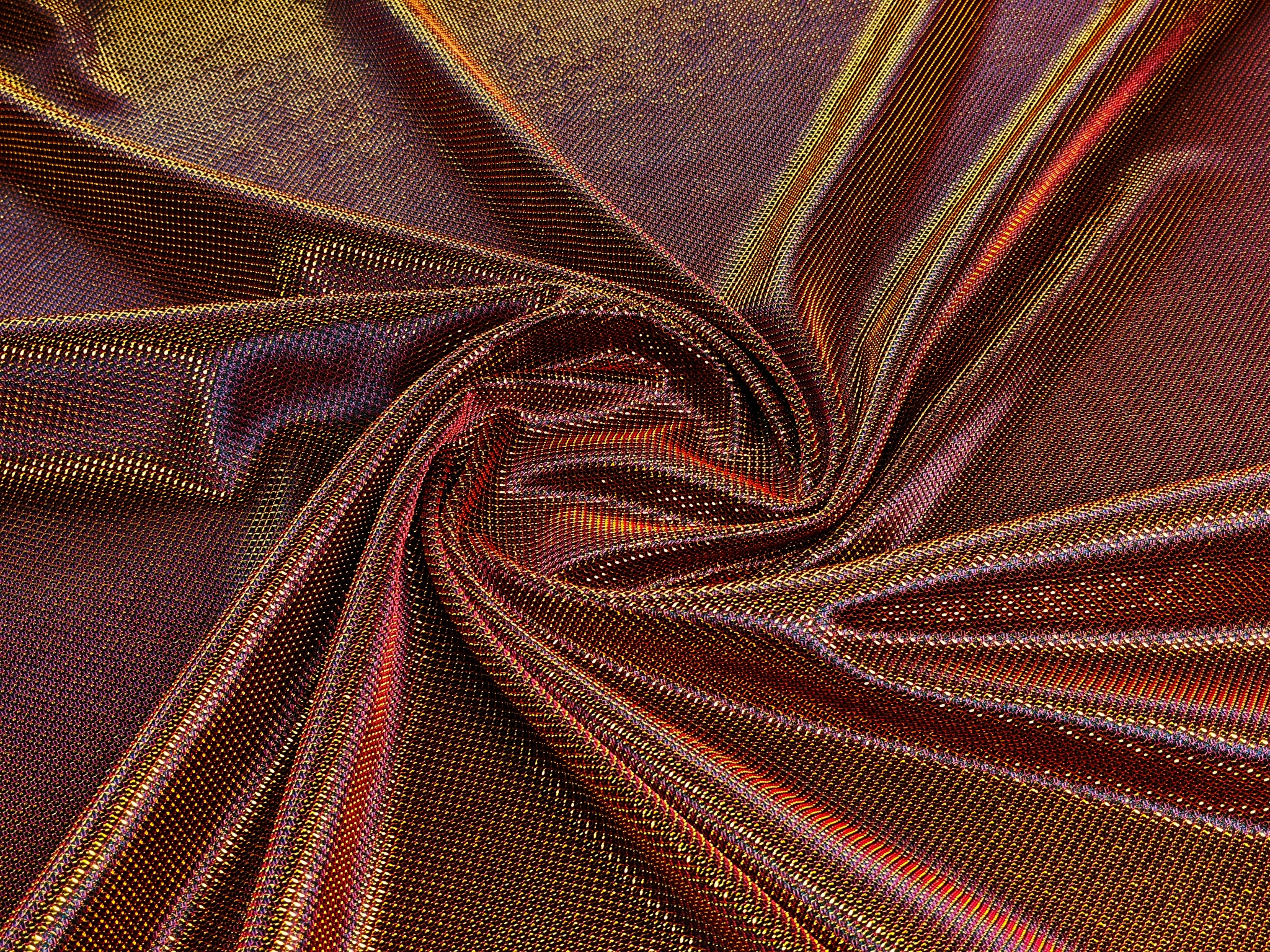Тканина диско має структуру луски з гарним блиском, що грає під різним кутом. Виворіт тканини - приємний на дотик, гладкий трикотаж з атласним ефектом.