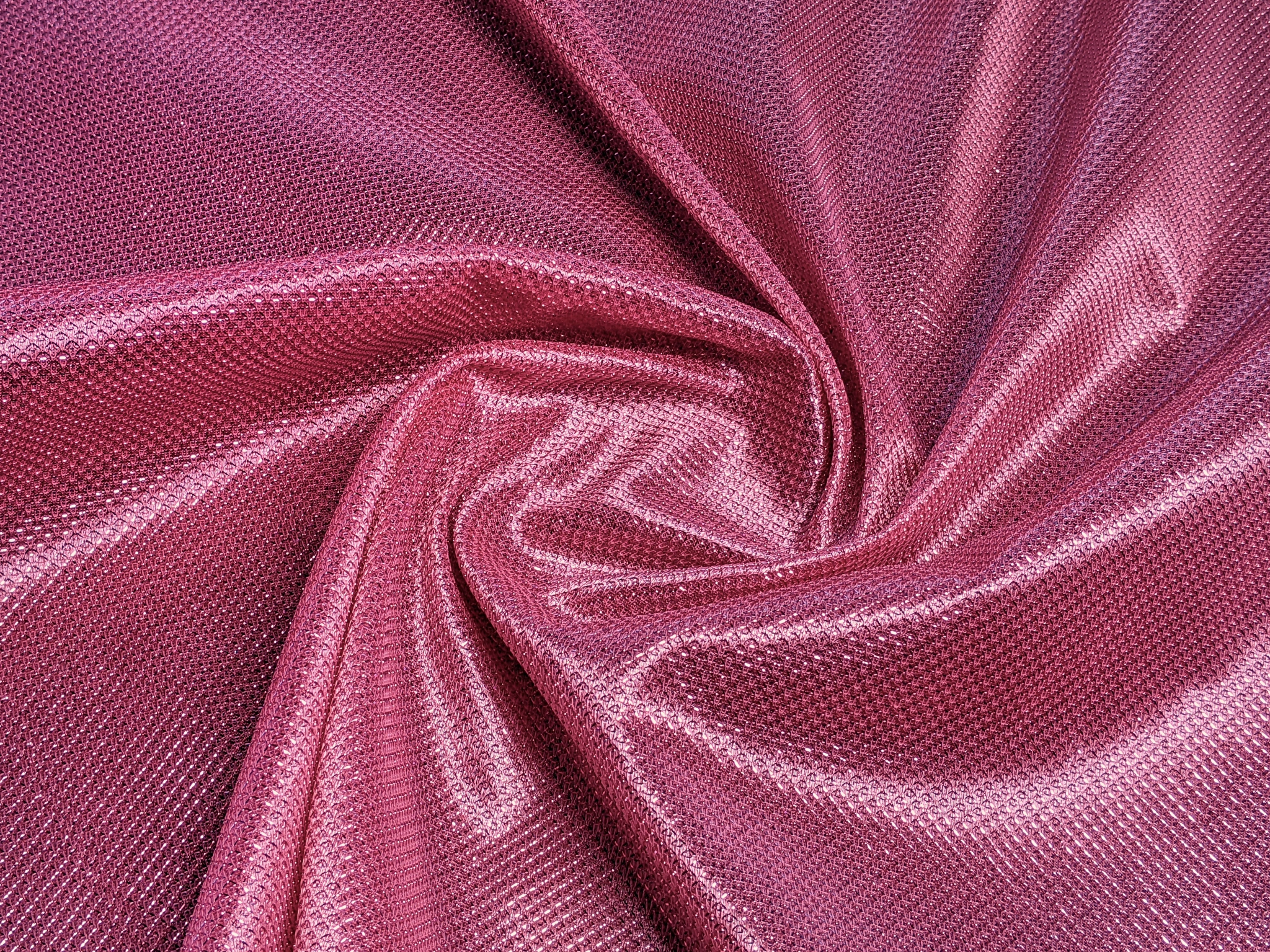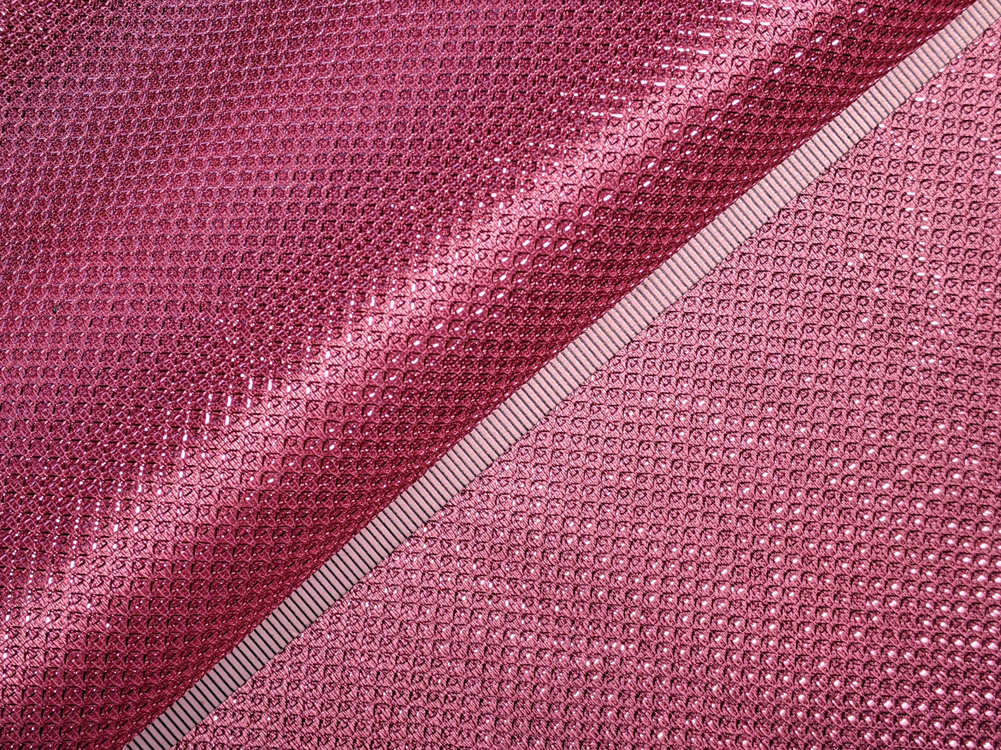 Тканина диско має структуру луски з гарним блиском, що грає під різним кутом. Виворіт тканини - приємний на дотик, гладкий трикотаж з атласним ефектом.