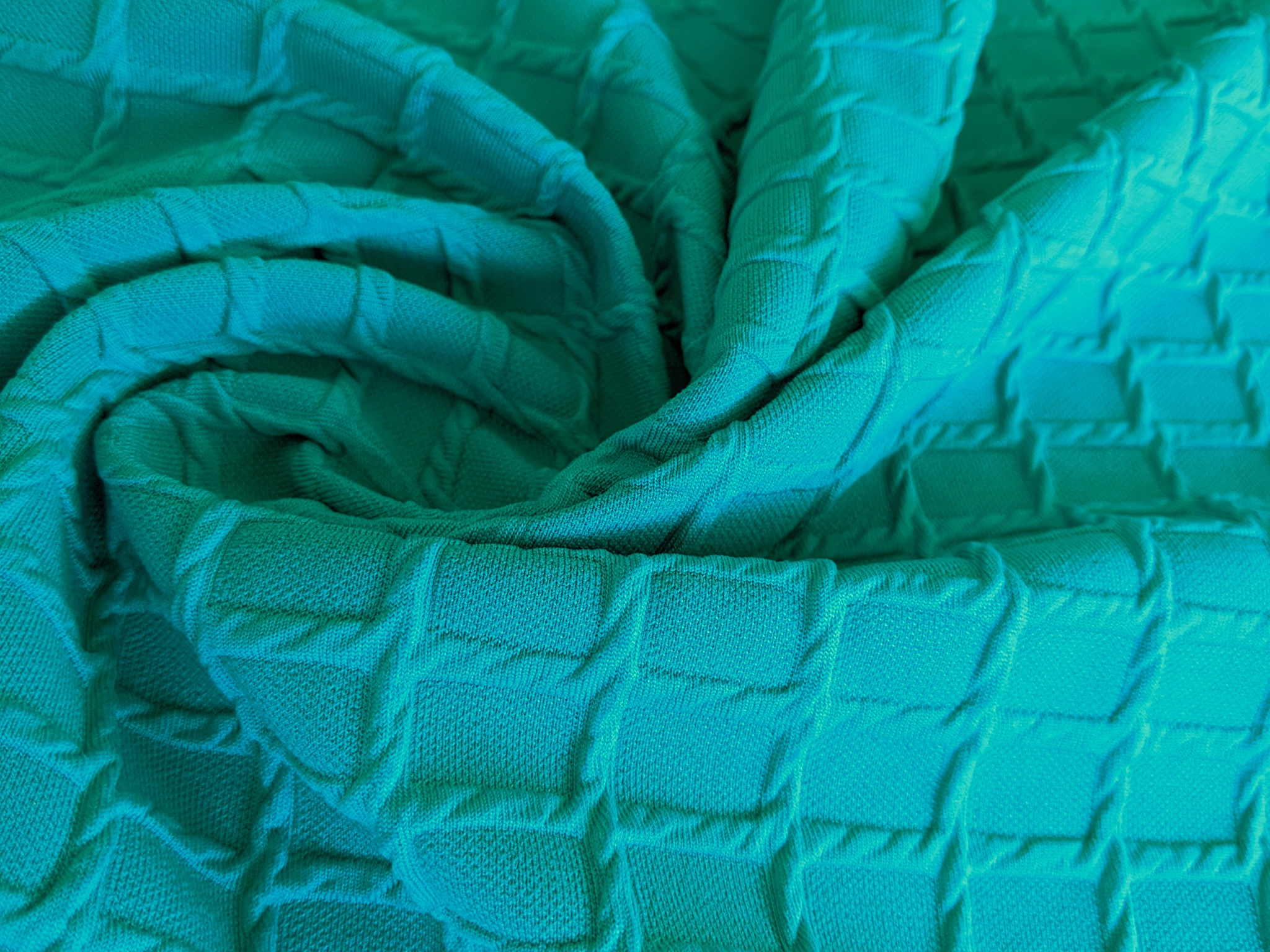 Трикотаж фігурна клітинка, бірюзовий