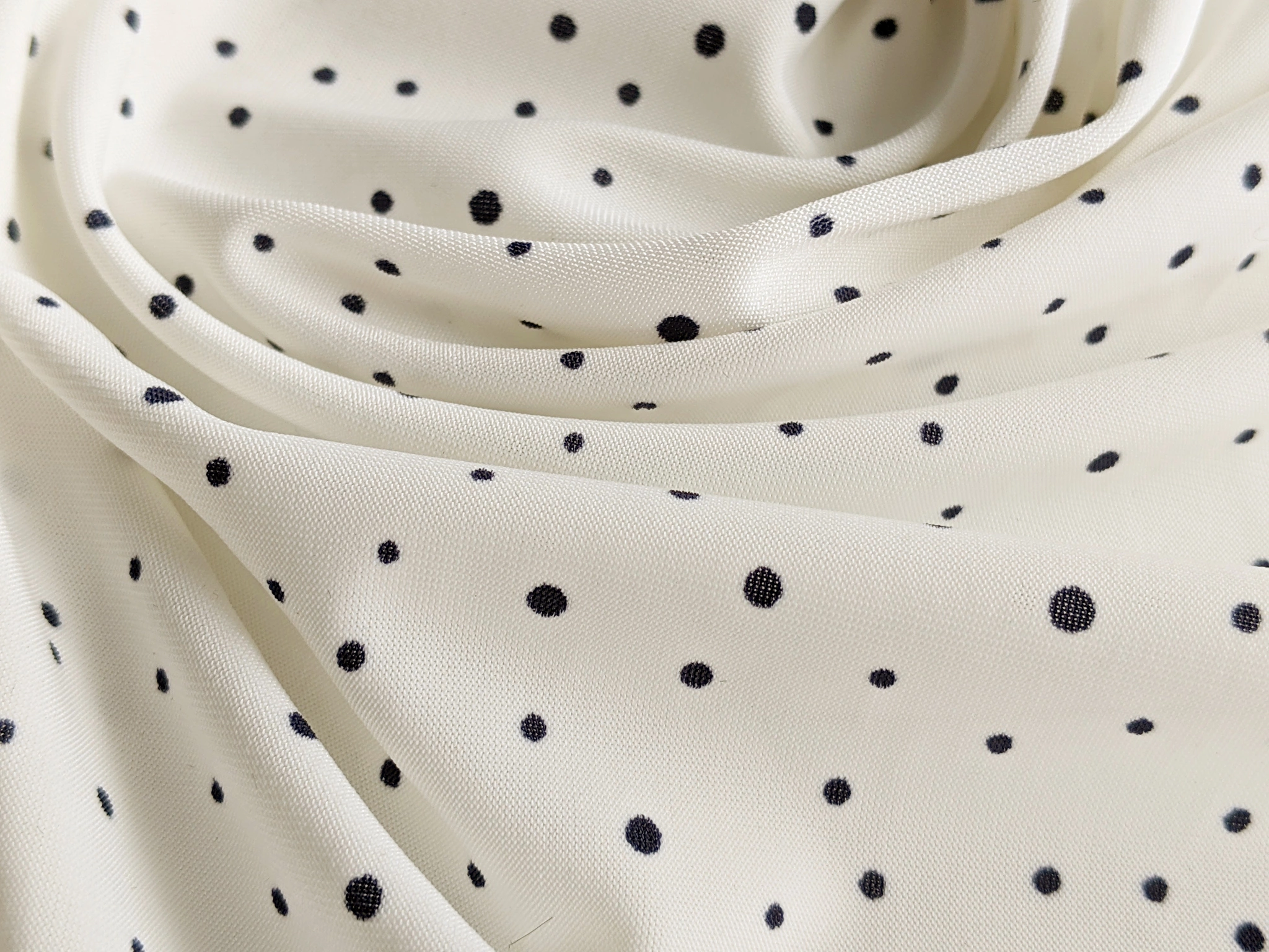 Трикотаж масло розсип горошків, чорний на молочному