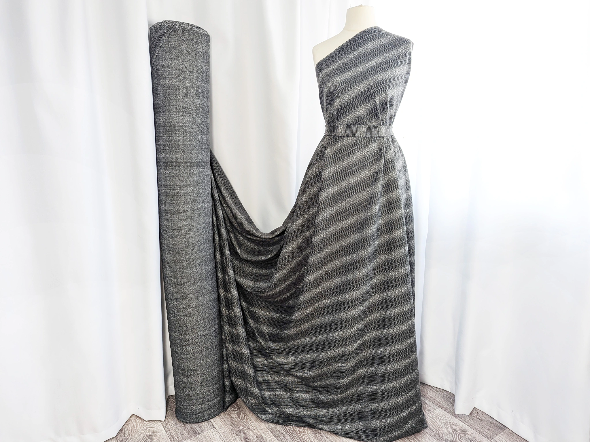 Трикотаж теплий Камилла смуги, сірий