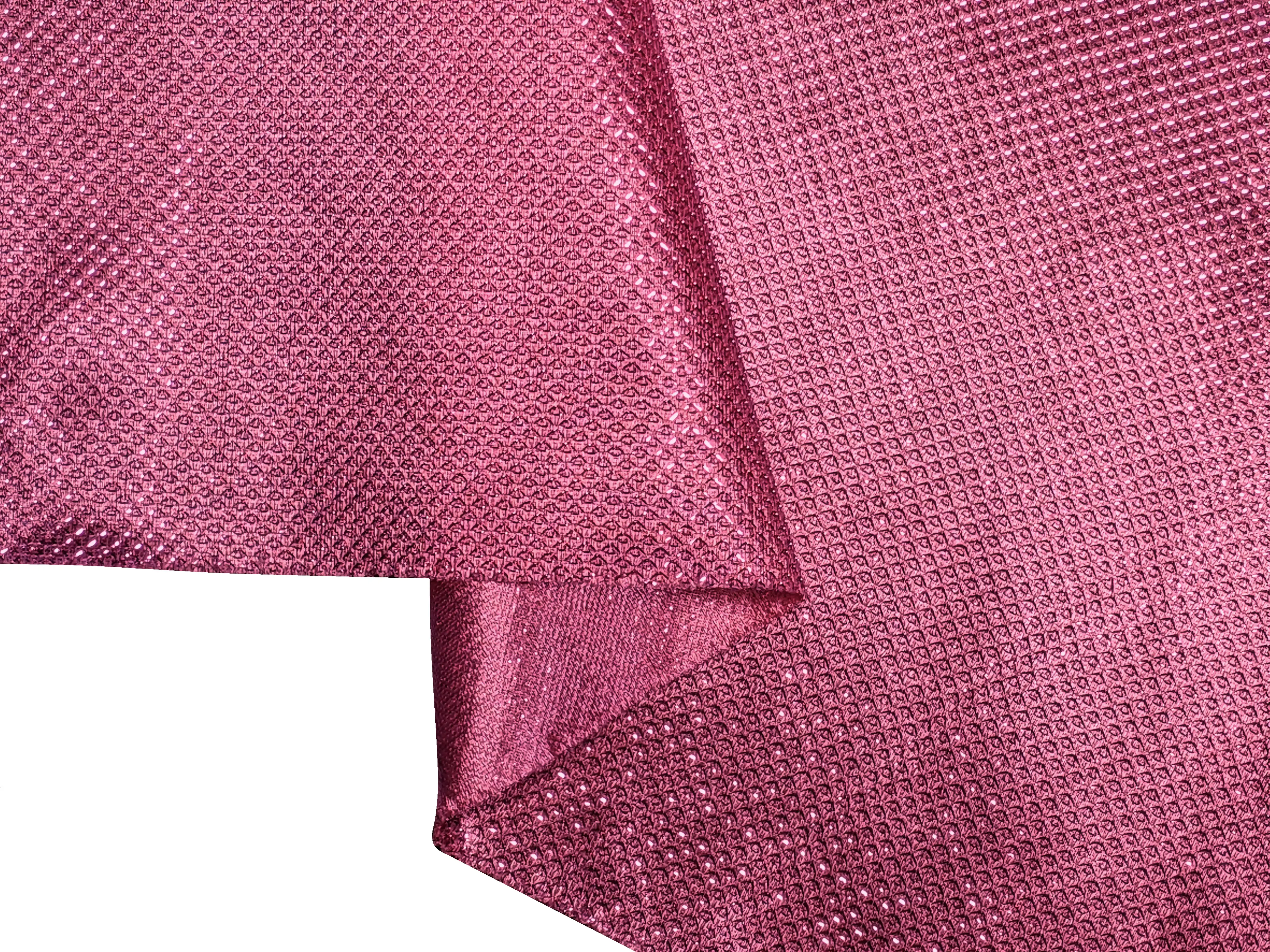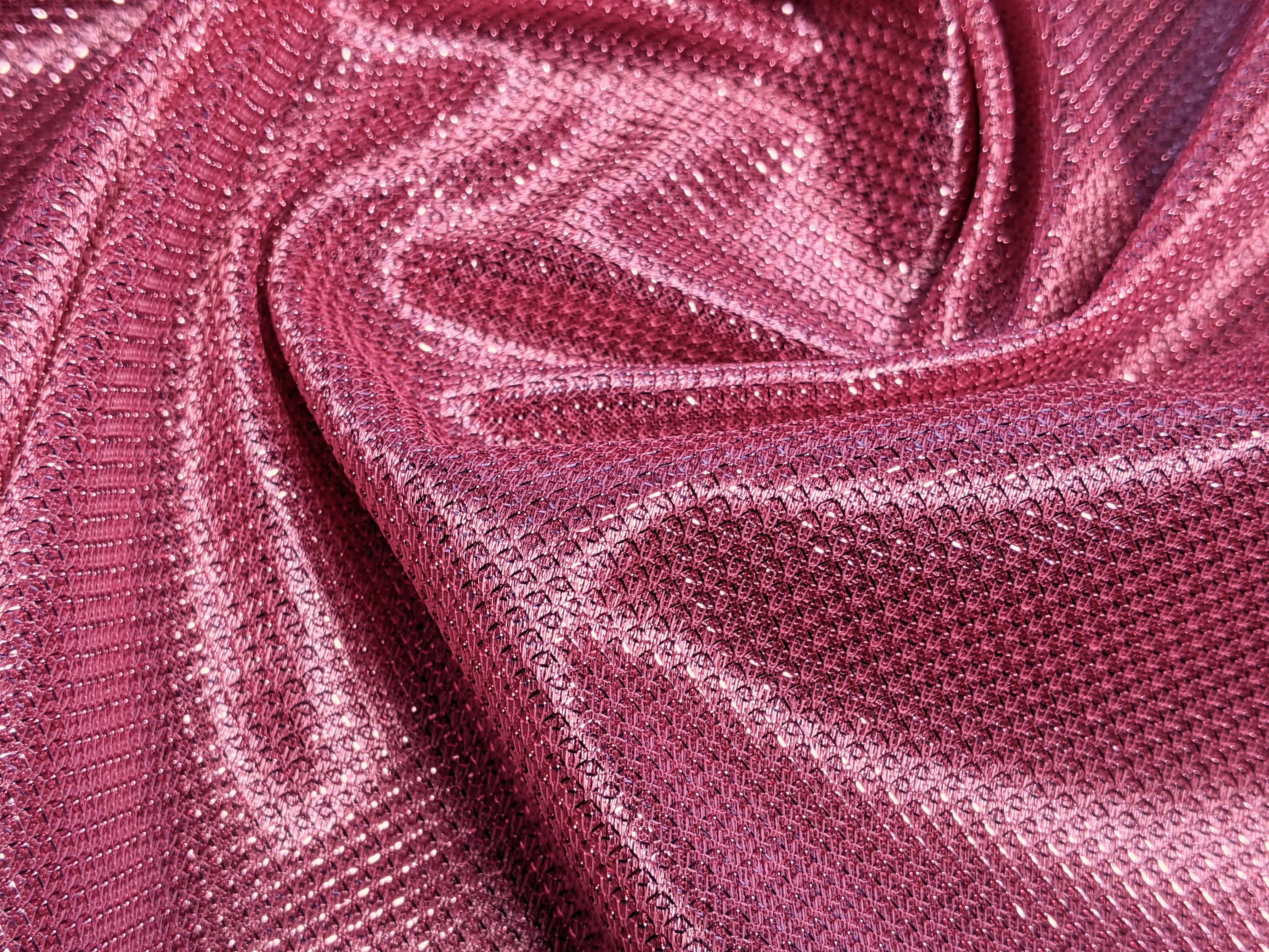 Тканина диско має структуру луски з гарним блиском, що грає під різним кутом. Виворіт тканини - приємний на дотик, гладкий трикотаж з атласним ефектом.