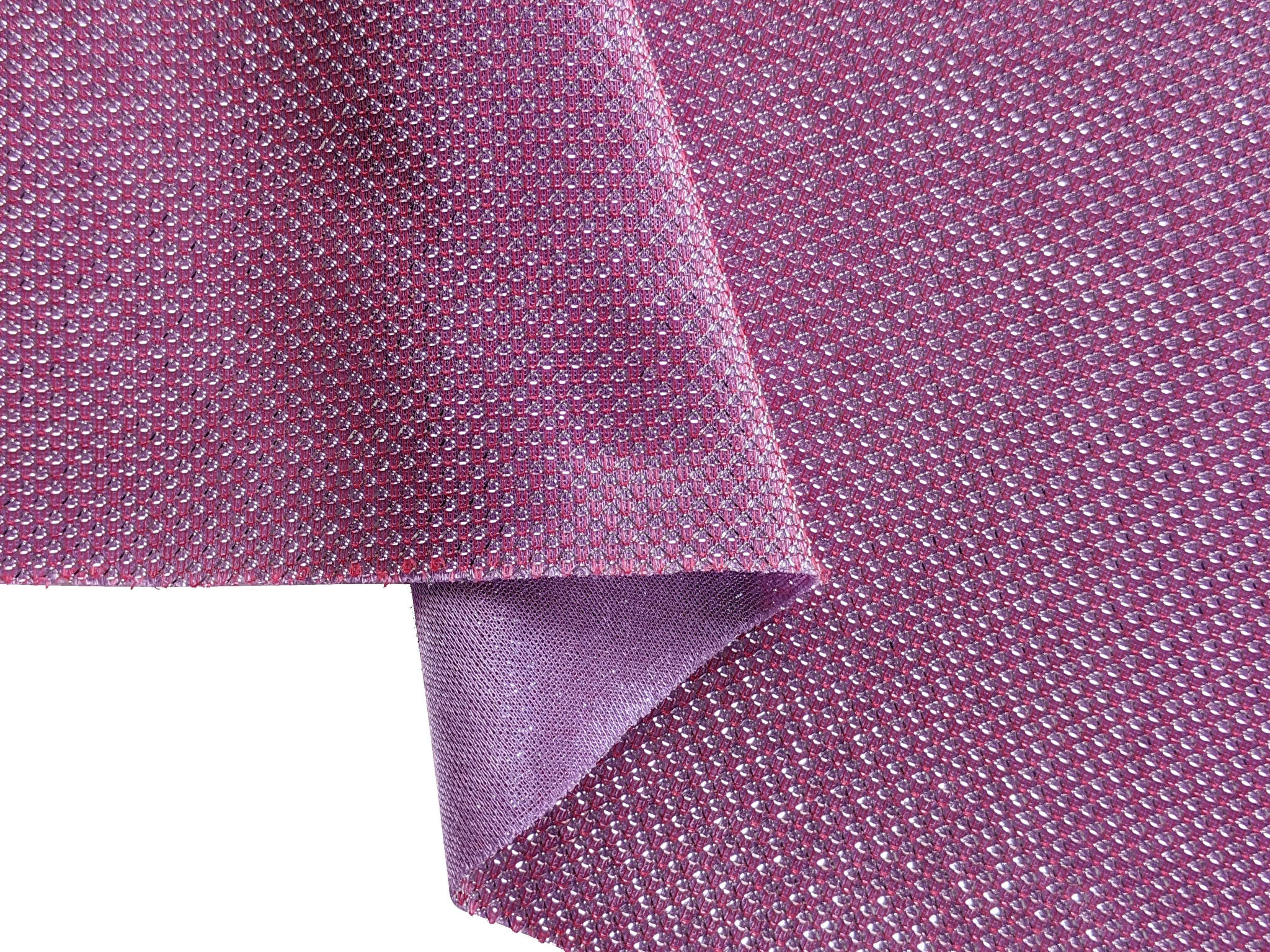Тканина диско має структуру луски з гарним блиском, що грає під різним кутом. Виворіт тканини - приємний на дотик, гладкий трикотаж з атласним ефектом.