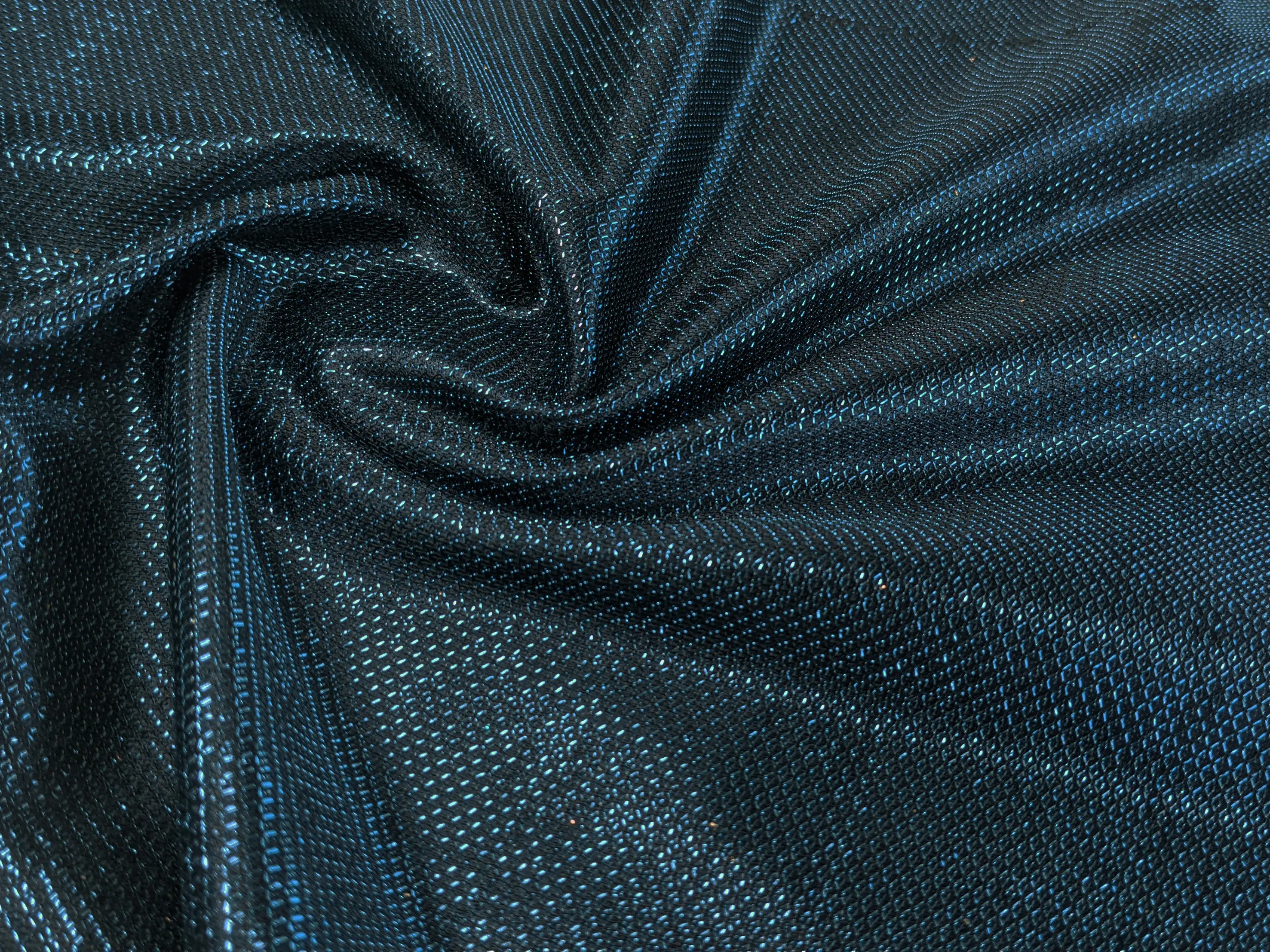 Тканина диско має структуру луски з гарним блиском, що грає під різним кутом. Виворіт тканини - приємний на дотик, гладкий трикотаж з атласним ефектом.