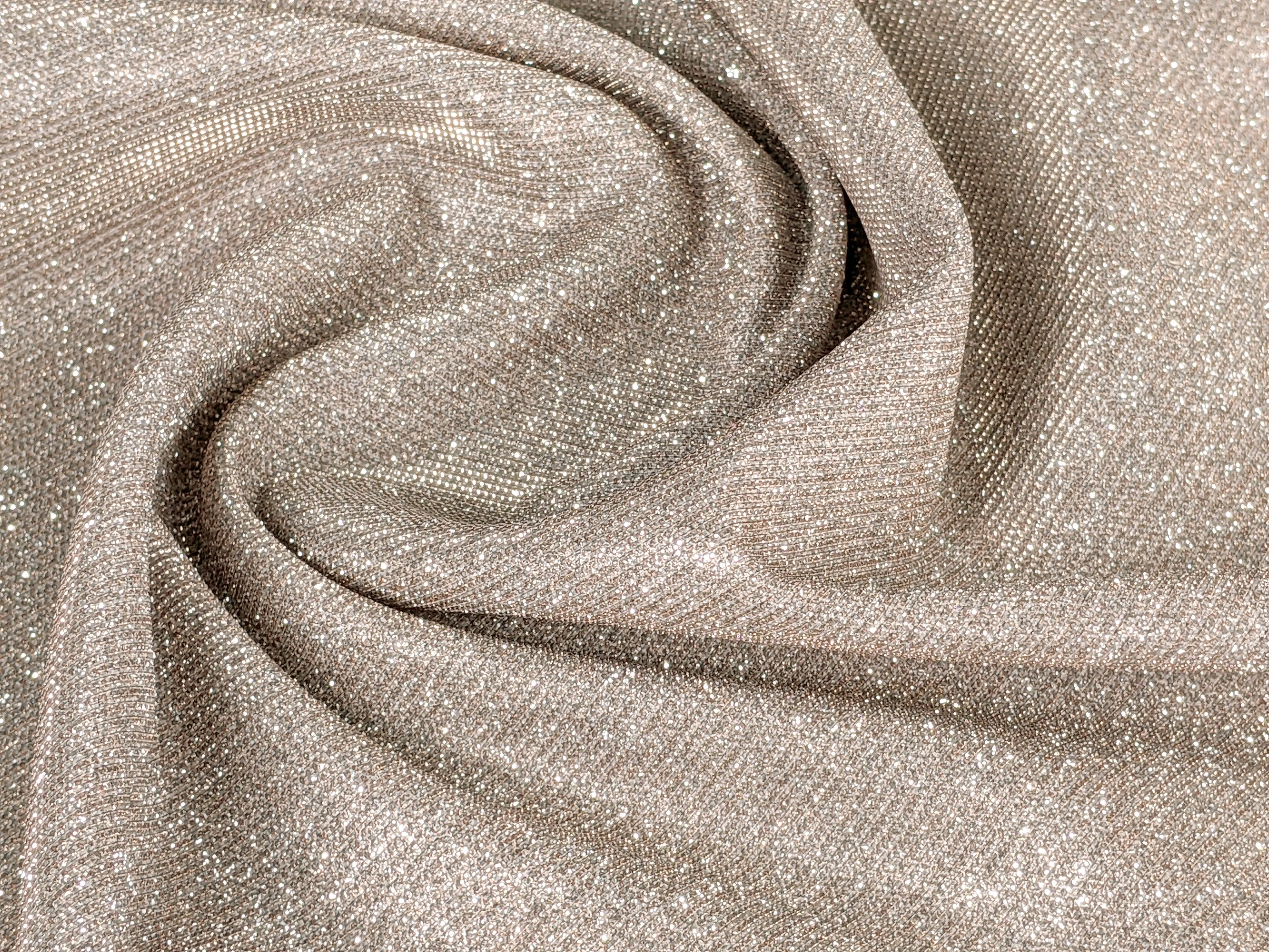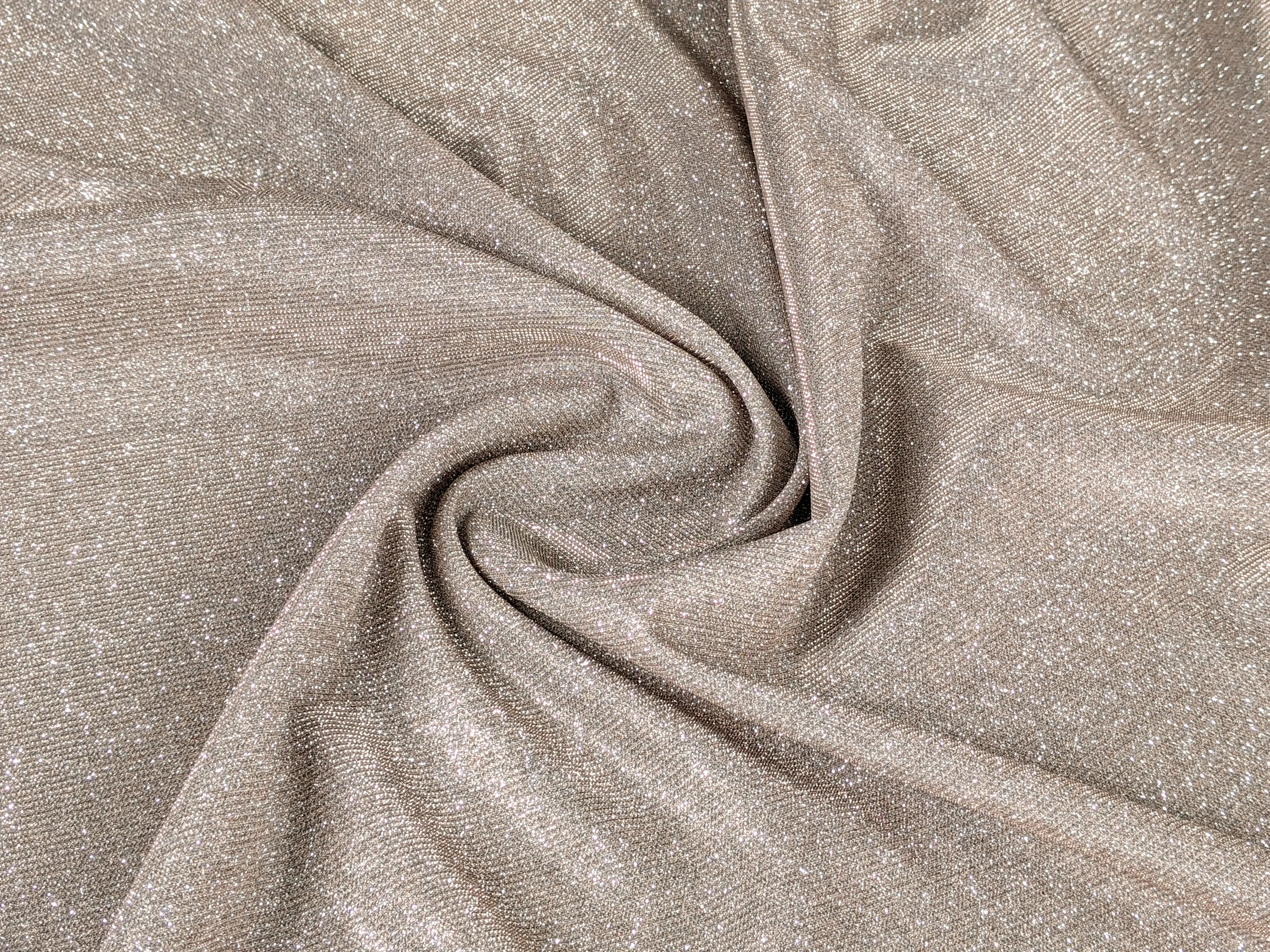 Трикотажне полотно з блиском стане ідеальним варіантом для пошиття карнавальних, танцювальних, вечірніх та випускних суконь. Тканина переливається, створюючи мокрий ефект, трохи тягнеться, має гладку основу, добре лягає складками. В наявності є велика кольорова палітра, для того щоб ви могли фантазувати і комбінувати тканини для створення святкових образів.